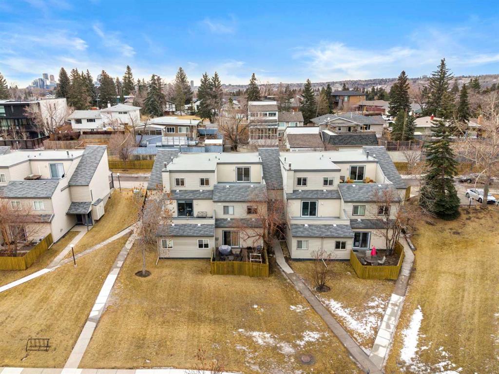 Spanning a spacious single level, this immaculate top-floor end unit offers a rare combination of bungalow-style living and urban convenience, making it a standout choice for young professionals, downsizers, and savvy investors alike. The interior features a bright, open-concept kitchen and a sun-drenched breakfast nook that flows into a massive living area, all complemented by upgraded windows, lighting, and paint. The versatile layout includes a good-sized primary retreat, two additional queen bedrooms, and a convenient den, perfect for a home office. Outdoor living is elevated by a massive west-facing private deck, and you get 2 covered side-by-side stalls right outside your front door, which is a rare luxury in this complex. Strategically positioned in Calgary’s premier medical and education hub, you are just steps from the Foothills Hospital, the new Cancer Centre, the Children’s Hospital, and the University of Calgary, with immediate access to the river path system and a quick commute to both downtown and the mountains. This prime location has made the property a great investment asset with a proven track record, having been consistently rented with zero vacancy for years, offering exceptional income potential for the next owner. Ready for a quick possession, book your showing today!