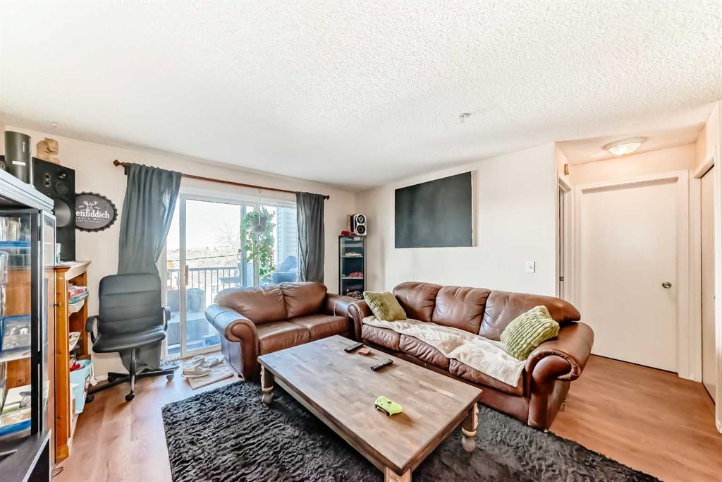 Welcome to this well-maintained 1 bedroom, 1 bathroom apartment in Red Carpet, offering incredible value and potential for both first-time buyers and savvy investors. Located in a well-managed complex across from Elliston Park—famous for its beautiful pathways and lake. This home combines comfort, convenience, and opportunity. As you step inside, you’ll find a spacious foyer with double closets leading to a bright, open layout. The unit features durable Vinyl Plank throughout (no carpet!) for easy upkeep. The galley kitchen provides plenty of counter space and functionality, making it ideal for everyday living. The generously sized bedroom ensures comfort and flexibility. This home offers an in-suite laundry and large storage room that could be used as Den/Office. Step outside to your private covered balcony offering a peaceful retreat. This pet-friendly complex features LOW CONDO FEES that include electricity, water, and heating. Located with quick access to Stoney Trail, East Hills Shopping Centre, Elliston Park, Chestermere Lake, Calgary Transit’s Max Purple line, and downtown transit options.