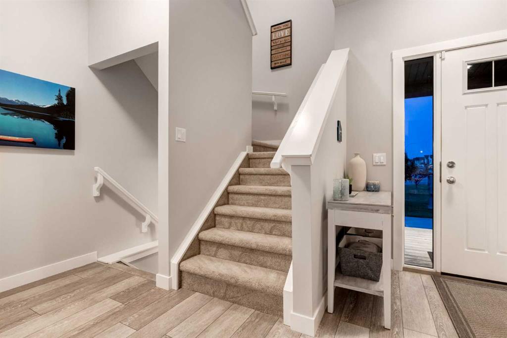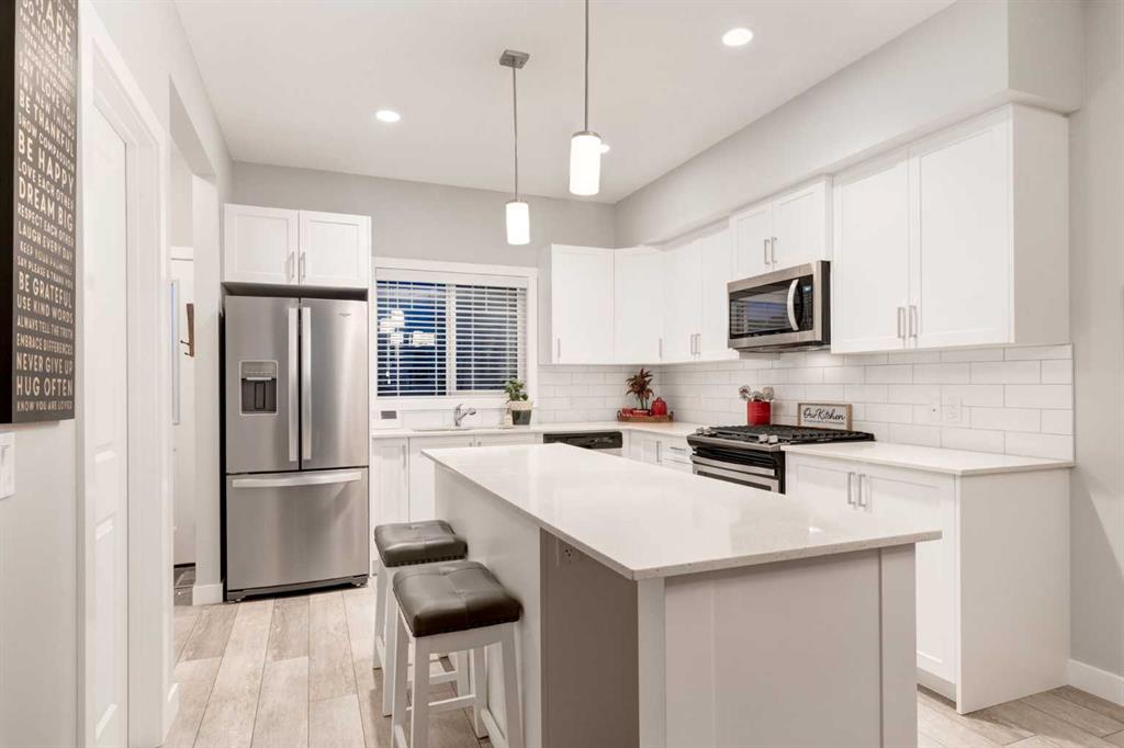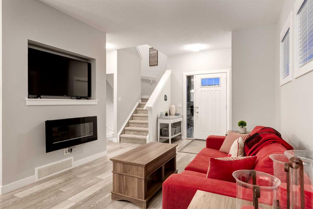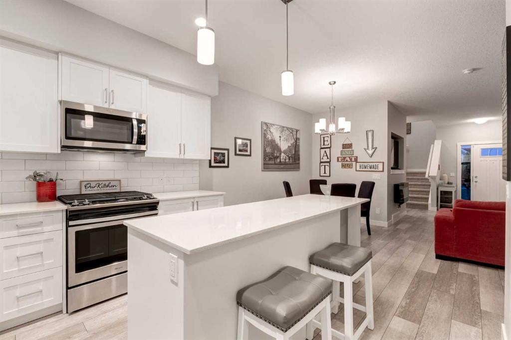 NO CONDO FEES | MODERN END UNIT | FULLY DEVELOPED | COMPLETELY TURNKEY! This IMMACULATE 4-BEDROOM, 3.5 BATH home boasts over 2000 SQ FT of living space highlighted by a charming FRONT VERANDA, a thoughtfully designed BACKYARD and an INSULATED DOUBLE CAR garage. MODERN and STYLISH, this BRIGHT and INVITING home features 9’ CEILINGS, a NEUTRAL COLOR pallet and an OPEN CONCEPT. From the welcoming front entry, the inviting living room with FIREPLACE flows seamlessly into the dining room and CHEF’S KITCHEN, which features AMPLE cabinetry, stunning QUARTZ countertops, UPGRADED S/S APPLIANCES including a gas stove, a large ISLAND with breakfast bar and beverage fridge, and an OVERSIZED PANTRY. The main level includes a 2pc Bath and well-designed Mud Room offering direct backyard access. The upper level is BRIGHT and AIRY with AMPLE NATURAL LIGHT, offering Two Generously Sized bedrooms, a Full 4pc Bathroom, convenient UPPER-FLOOR LAUNDRY and the PRIMARY BEDROOM with Private 3pc.ENSUITE and a Very Sizeable WALK-IN closet. The FULLY FINISHED BASEMENT provides a spacious FAMILY ROOM, a Full 4pc Bathroom and 4th BEDROOM complete with a large WALK-IN closet. Additional STORAGE can be accommodated in the utility room and under the stairs. Outside you will find that this home is SET BACK FROM THE STREET and fronts onto a GREENSPACE creating a sense of OPENNESS and PRIVACY with views from the front veranda. The THOUGHTFULLY LANDSCAPED backyard is FULLY FENCED, offering a sun filled PATIO perfect for entertaining or unwinding. The DOUBLE CAR GARAGE is fully drywalled and insulated, roughed in for a future heater and has by an ADDITIONAL PARKING PAD. Located in the WELCOMING Community of MIDTOWN, this home is CLOSE to parks and playgrounds, schools, shopping and major highway access, offering a CONVENIENT and simplified lifestyle! Call to view today!