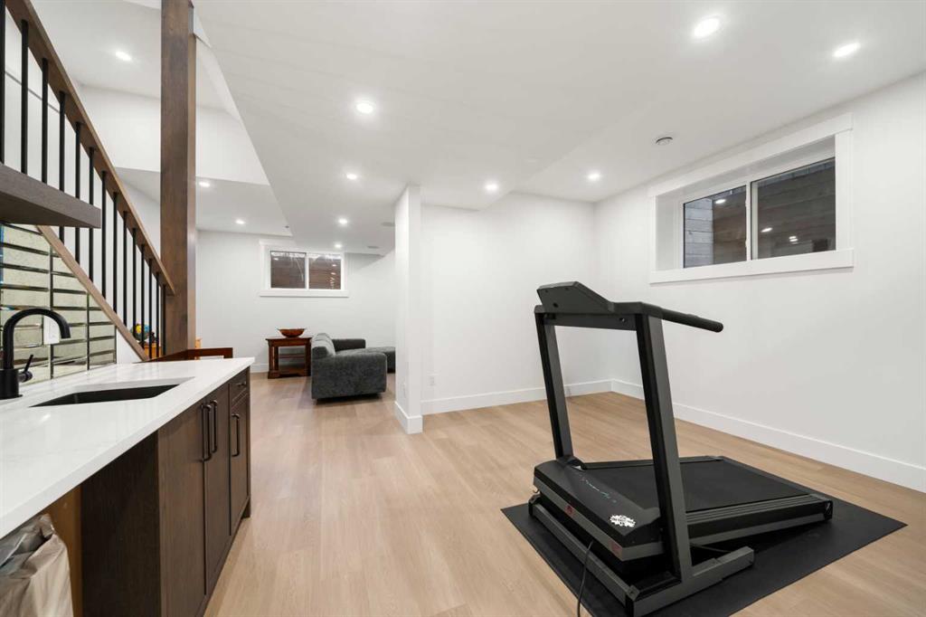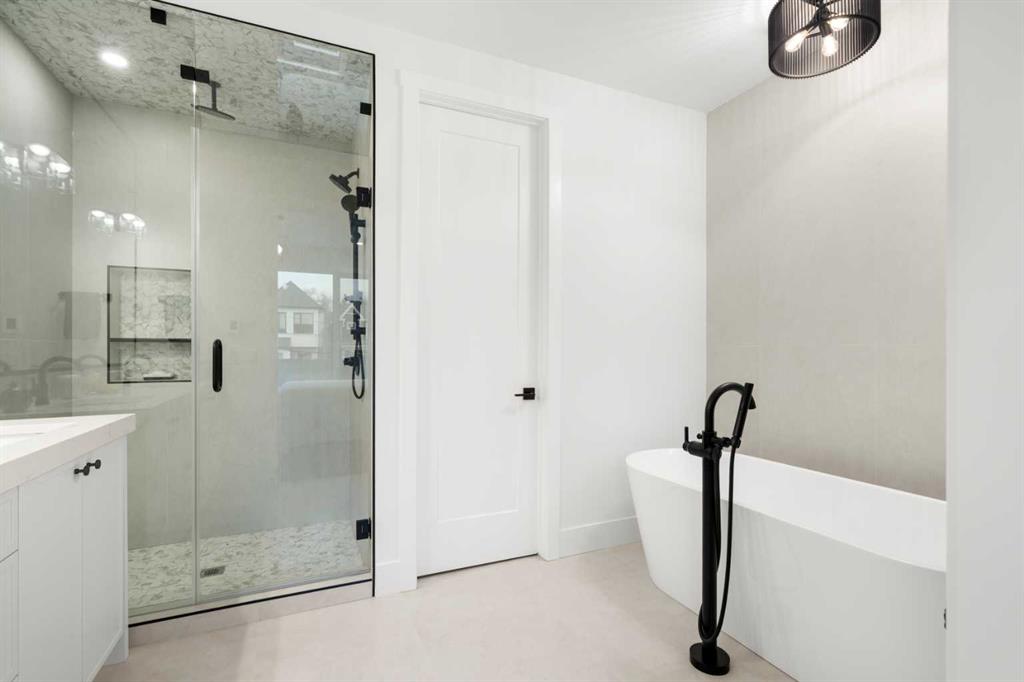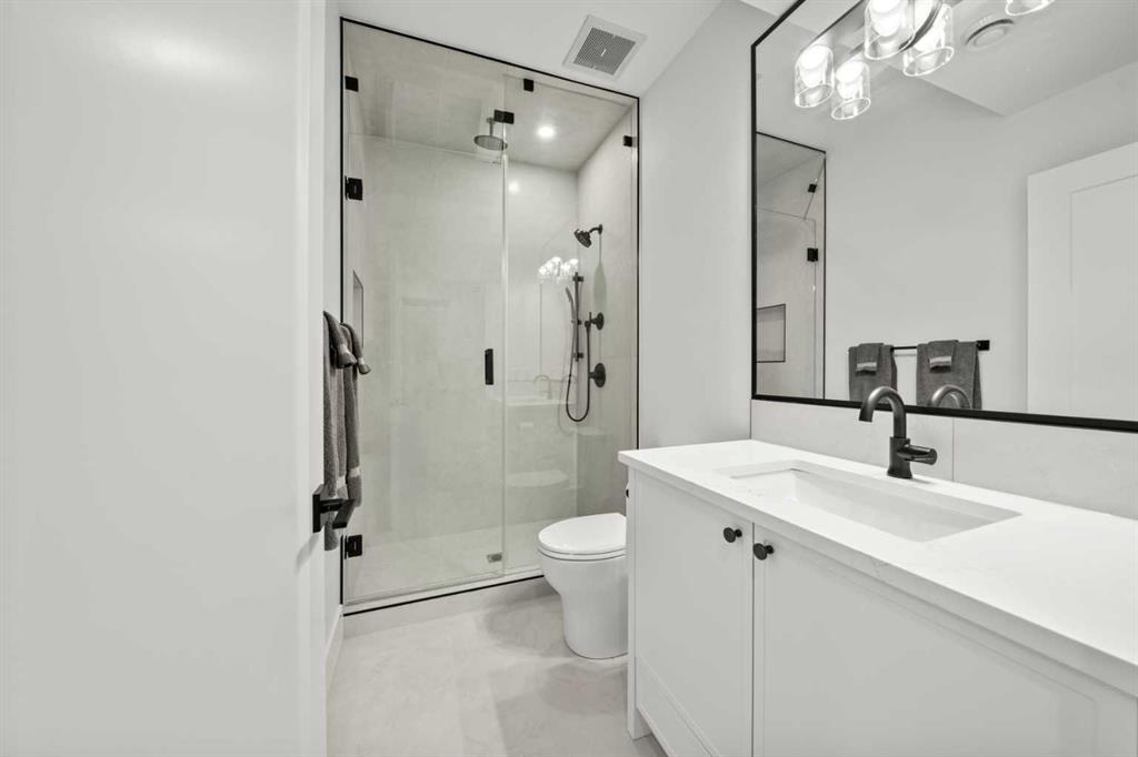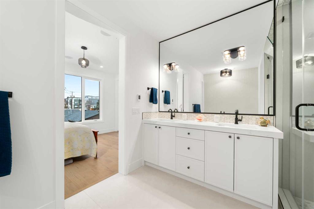 Located in the highly sought after community of Altadore with exceptional access to parks, shops, coffee spots, dining, local boutiques, and more, 2006 41 Ave SW is a striking modern duplex that perfectly balances luxury, style, and functionality. This home welcomes you with a charming front porch accented by brick pony walls, leading into a bright and open concept main floor designed for both everyday living and entertaining. The spacious dining area flows seamlessly into the gourmet kitchen, featuring an oversized island, sleek quartz countertops, premium appliances, and custom ceiling height cabinetry. The cozy living room is anchored by a gas fireplace with built in shelving, while patio doors open to a private back deck, ideal for effortless indoor and outdoor living. A functional mudroom and convenient powder room complete the main level. Upstairs, the second-floor features two spacious secondary bedrooms. The first offering a gorgeous spa inspired ensuite with a walk-in shower, deep soaker tub, dual vanities, in floor heating, and a spacious walk-in closet. The second bedroom includes its own walk in closet and private bathroom access, while a charming reading nook or office area adds flexibility to the upper floor. A dedicated laundry room completes this level. The third level is dedicated to the primary master suite, creating a private top floor retreat. This luxurious space features dual walk-in closets and a spa inspired ensuite complete with a steam shower, deep soaker tub, dual vanities, heated floors, and in closet built in custom wood wardrobes, offering exceptional comfort and versatility. A bright and open bonus area with a wet bar and access to a private balcony showcasing impressive views further enhances this level, making it perfect for both relaxing and entertaining. The fully finished basement expands the living space with a large recreation room complete with a built in media center and wet bar, an office or gym area, ample storage, a full bathroom, and an additional bedroom with a walk-in closet, ideal for guests or family. The basement also includes in floor heating rough in, offering future potential for added comfort. Additional highlights include AC rough in for future installation and a double detached garage providing secure parking and extra storage. This exceptional property delivers modern luxury, thoughtful design, and everyday practicality in one of Calgary’s most desirable inner-city neighborhoods.