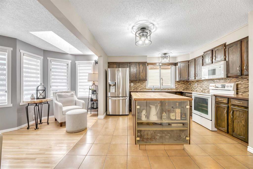 Tucked into a quiet cul-de-sac in the sought-after community of Scenic Acres, this meticulously maintained home is an incredible opportunity. Move-in ready and filled with meaningful upgrades — including triple pane windows, air conditioning, a newer roof, and no poly-B plumbing — this 3-bedroom, 3.5-bathroom home offers comfort, efficiency, and peace of mind. The main living space is warm and inviting, anchored by a stunning rock-faced wood-burning fireplace. The functional kitchen offers great flow into an additional family room — ideal for everyday living and busy families. Step outside to your sun-filled south-facing deck with mountain views, or relax on the lower patio — perfect for long summer evenings. The fully developed basement adds valuable extra space for a rec room, games area, or home gym. Well cared for, well located, and move-in ready — this is a home you don’t want to miss.