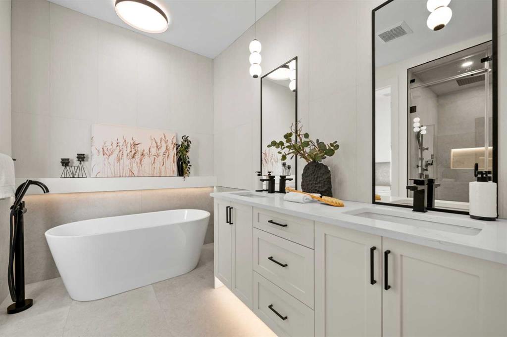 INNER CITY LIVING W/4 BEDROOMS & LEGAL SUITE ON MAIN • Experience elevated inner-city living in the heart of Bankview with this newly custom-built (2025) three-storey detached home, showcasing striking architecture, refined craftsmanship, and thoughtful modern design throughout. Created for seamless open-concept living, the home features wide-plank designer oak hardwood flooring, timeless white shaker cabinetry with under-cabinet lighting, and a show-stopping 12-foot dual waterfall quartz island—an entertainer’s dream and the true centerpiece of the kitchen. The chef-inspired kitchen is fully equipped with a 42” professional refrigerator, 36” gas cooktop, in-wall oven, pot filler, and premium finishes throughout. Additional upscale touches include LED-lit hardwood staircases, 9-foot ceilings, triple-pane windows, heated tile floors, and vaulted ceilings on the upper level, creating an airy and sophisticated atmosphere from top to bottom. The main living area is warm and inviting, highlighted by a sleek 36” gas fireplace and custom art niche wall. Exceptional versatility is offered with a legal main-floor suite, complete with its own full kitchen and stainless steel appliances, separate furnace, private laundry, living area, and bedroom—ideal for extended family, guests, or additional rental income. The third level is dedicated to the private sleeping quarters, anchored by a stunning primary retreat featuring a spa-inspired 5-piece ensuite with programmable in-floor heating, freestanding soaker tub, oversized steam shower with heated bench, and luxurious finishes throughout. Two additional generously sized bedrooms and a convenient upper-level laundry room complete this floor. The exterior is equally impressive, boasting metal-clad windows, Hardie Board siding, and acrylic stucco, complemented by a fully landscaped and fenced yard. Enjoy the convenience of a single attached heated garage with driveway parking. Ideally located just minutes from downtown Calgary, with a playground at the end of the street and quick access to the shops, dining, and nightlife of vibrant 17th Avenue, this exceptional home offers the perfect balance of luxury, comfort, and urban convenience. Be sure to explore the immersive 3D virtual tour!