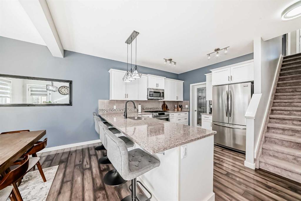 Welcome to your dream home! A true showpiece tucked away in the peaceful, family-loved community of The Canals, Airdrie! From the moment you pull up, you’ll appreciate the serious curb appeal and that perfect on-trend colour palette. This beautiful home sits quietly at the end of a low-traffic cul-de-sac that's close to the park where kids can play. Step inside and the wow factor hits immediately with the sun-drenched open-concept floor plan, 9-foot ceilings and big windows that pour natural light from morning to late afternoon. This home is spacious, bright, and alive! The kitchen has crisp bright-white cabinetry, sleek granite countertops, a generous island with breakfast bar seating, and a gas range that makes cooking very enjoyable. There's also a big walk-through pantry that stores a lot of food and other kitchen items. Right off the kitchen, the dining area flows effortlessly to a sun-soaked deck, plus a brick patio perfect for summer dinners, morning coffee, or just watching the kids run wild in the yard. The living room centers around a cozy fireplace that instantly makes everything feel warmer. There's also a main-floor powder room and a double attached garage. Upstairs you’ll find a bright and spacious bonus room perfect for hanging out and movie nights with your family. The primary retreat is beautiful and spacious with a good-sized walk-in closet and a deluxe 5-piece ensuite. There are two more spacious bedrooms, a second full bathroom, and an upper-level laundry for convenience. The finished basement is such a delight with a big recreation room that can be a home office, gym, or a gaming room. Here you'll also find a spacious fourth bedroom, another full bathroom and a much needed storage area. There's also a low-maintenance private backyard with gas line for BBQ and enjoyment. The upgrades and beautiful feautures that you'll love in this home are the central airconditioning, wide-plank laminate flooring, new LED lights, window zebra blinds, double attached garage, Lumenox outdoor lights, upgraded light fixtures in the house, new floating vanity in the half bath and the stunning accent walls. It's also close to schools, playgrounds, pathways, shopping, and quick access for commuters. This lovely home is the one that you're looking for! Book your showing appointment now!