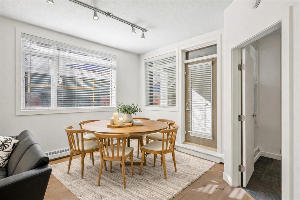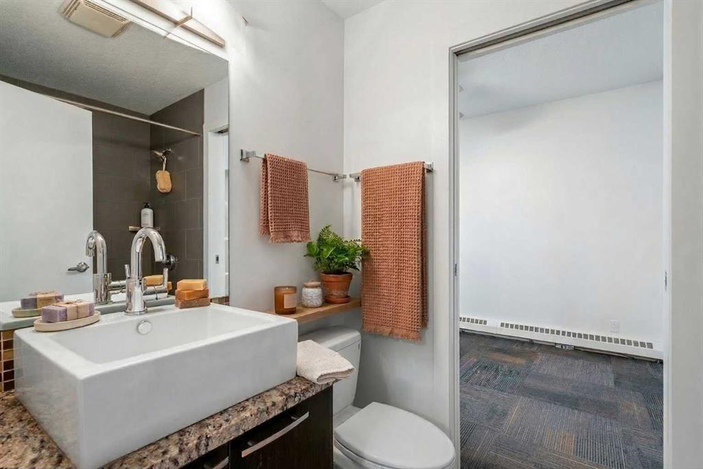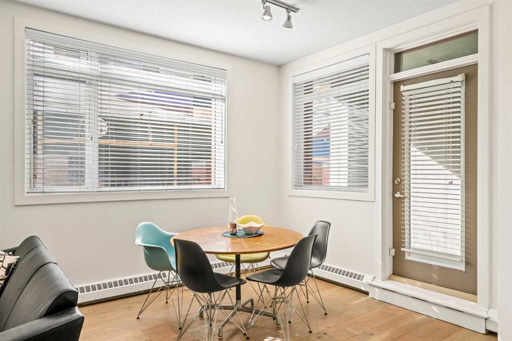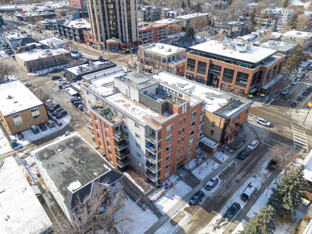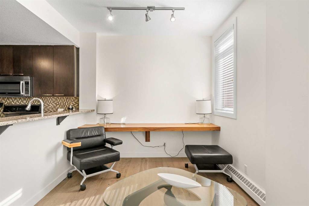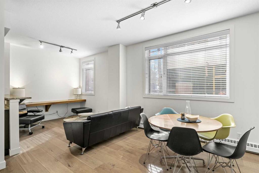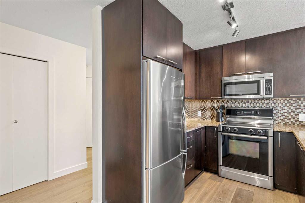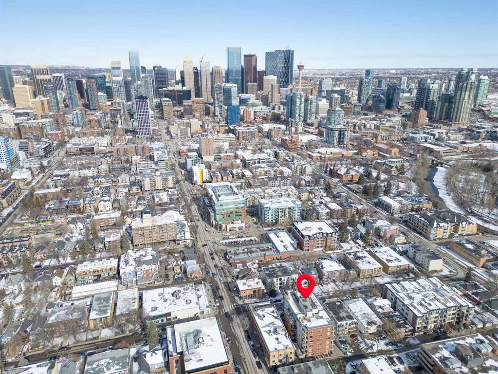 Discover the perfect blend of style, convenience, and investment potential in this chic condo located in the heart of Mission—a rare find in a concrete 6-storey building! Whether you're a first-time buyer looking for your dream home or an investor seeking a prime rental opportunity, this unit offers exceptional value in one of Calgary’s most vibrant communities. Step into a bright and spacious living area featuring hardwood floors and large south-facing windows that fill the space with natural light. The stylish kitchen is a chef’s delight, with granite countertops, a sleek tile backsplash, matching stainless steel appliances, and a convenient breakfast bar—ideal for casual dining or entertaining friends. The open-concept living and dining areas provide plenty of space for relaxing or hosting, and you’ll love stepping out onto the patio, perfect for outdoor gatherings or unwinding after a long day. The bedroom offers a generous full-width closet and direct access to a modern en-suite, complete with granite counters & a tiled shower. With in-suite laundry, a titled parking stall in the heated parkade, a storage locker, and access to a stunning rooftop patio with city views, this condo has everything you need for comfortable urban living. Plus, the building is meticulously maintained with exceptional management, ensuring your investment is well-protected. Located in the sought-after Mission neighborhood, you’ll be within walking distance of trendy restaurants, cozy cafes, parks, and transit, with easy access to major routes—making it a fantastic location for both living and renting. Don’t miss out on this incredible opportunity to own in one of Calgary’s best communities—whether you’re starting your homeownership journey or expanding your investment portfolio, this condo is a smart choice!