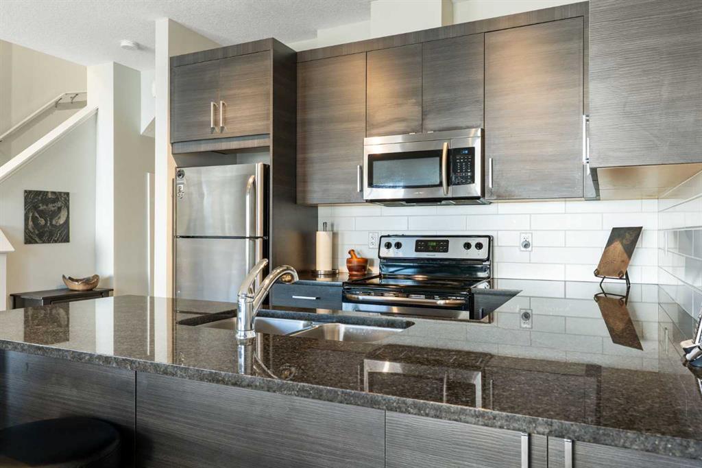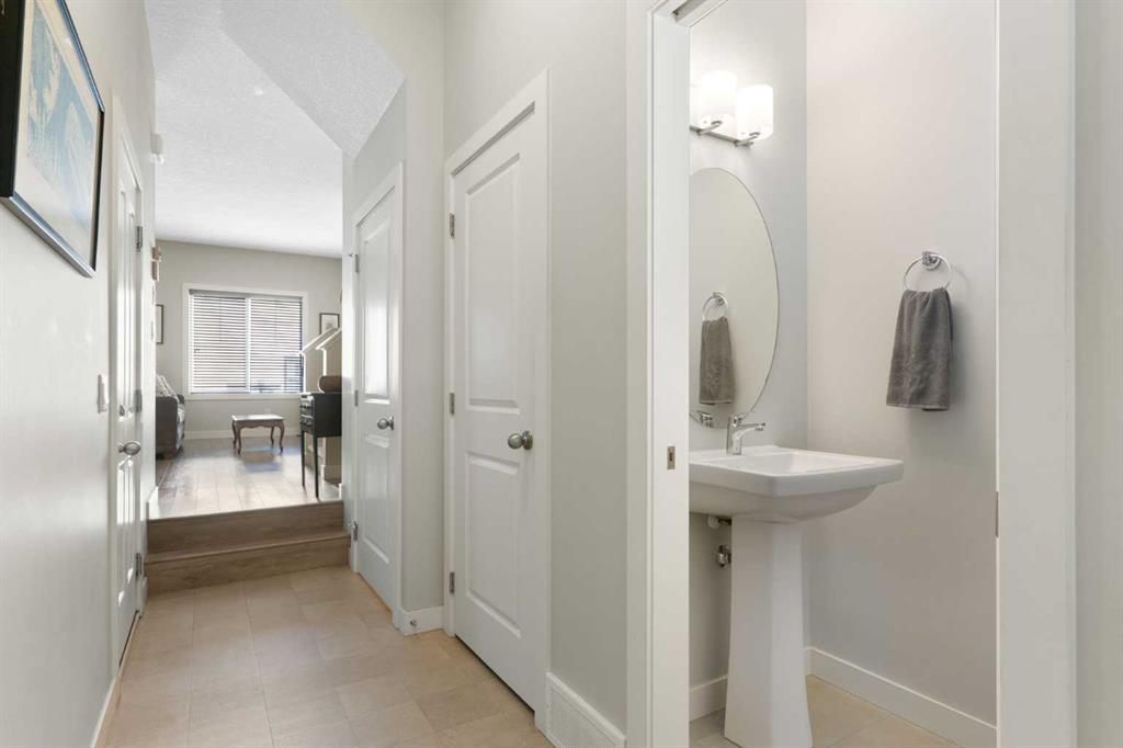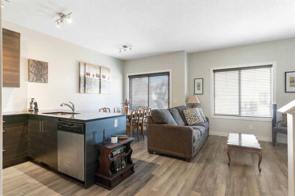 Live Steps from Nature: Walk right out to the serene ravine and river for walking trails, scenic views, and summer/winter recreation. Located in a well-maintained complex, with easy access to schools, shopping, and transit. This home offers an open-concept living and dining area which boasts laminate flooring, abundant natural light, and a convenient two-piece bath tucked down the hall. The dining area leads out to your private, fenced backyard and deck with a gas BBQ hookup—perfect for relaxation, pets, and small children. Upstairs, the expansive primary bedroom is a true retreat with a walk-in closet and a luxurious 4-piece ensuite with granite. Two additional good-sized bedrooms, a second 4-piece bath (also with granite), and a dedicated laundry area complete the upper level. The lower level is undeveloped with a 3 piece rough in for another bathroom. As an added bonus the common walls in the basement have been upgraded with additional sound proofing. This home has been very well cared for by the original owner and is move in ready! A fantastic combination of location & functionality. Call for a showing today and discover why Living in Cochrane is Loving where you Live!