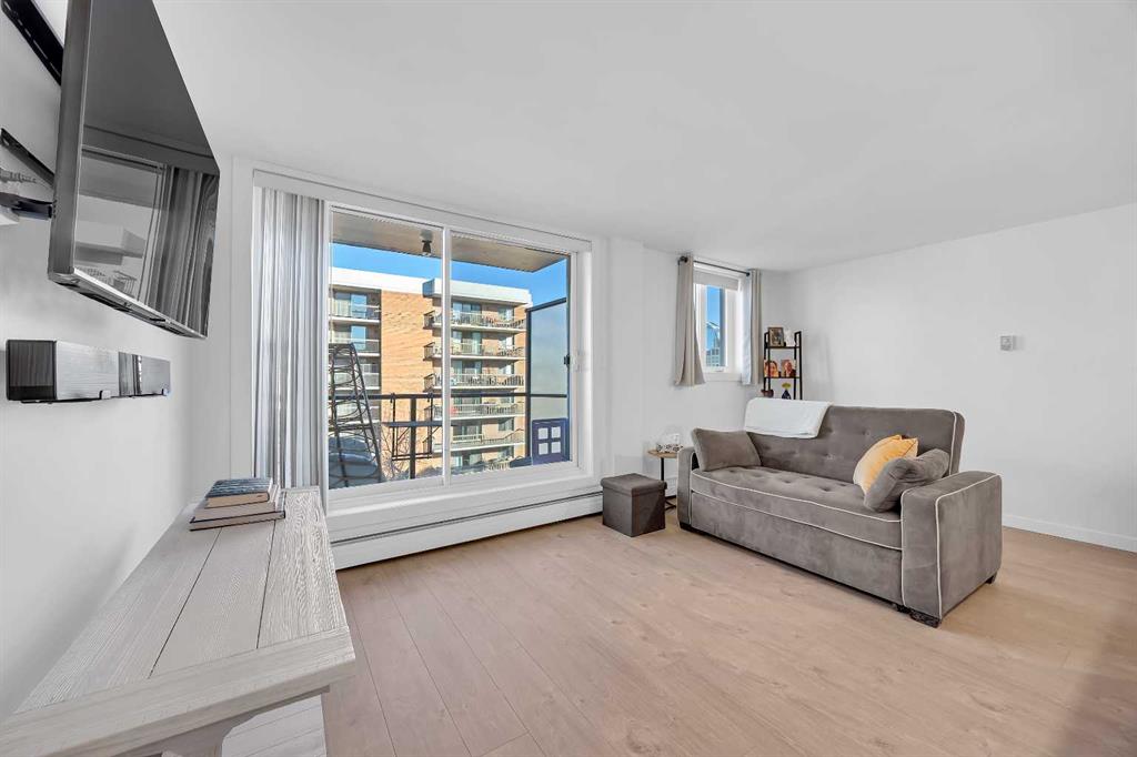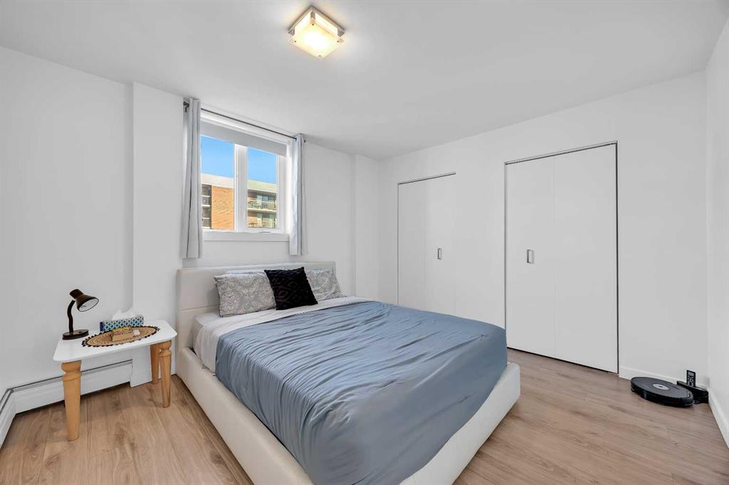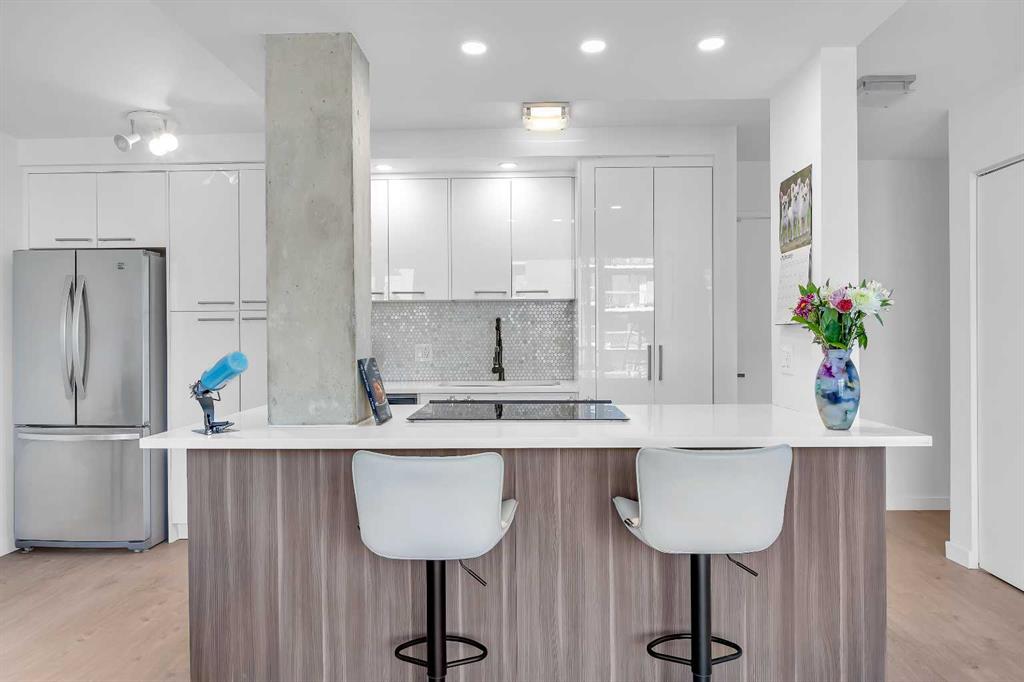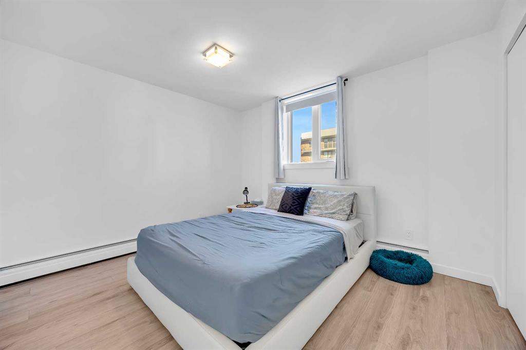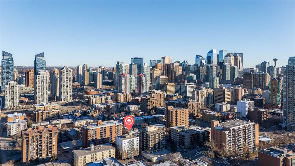 Fully renovated and move-in ready, this northwest corner 2 bedroom condo in the Beltline offers exceptional value in one of Calgary’s most walkable locations — and one of the best-priced 2-bedroom condos in the area. Whether you are a first-time buyer or investor, this turnkey property stands out in today’s market. The open concept layout features a modern kitchen with quartz countertops, high gloss cabinetry, stainless steel appliances, marble backsplash, and a functional breakfast bar. The bright living area opens to a private balcony with downtown and sunset views, complemented by new window coverings throughout. Both bedrooms are generously sized, with the primary offering double closets with built-in organizers. The updated bathroom includes full-height tile and quartz counters. Additional highlights include in-suite laundry, in-suite storage, a separate storage locker, and a designated parking stall with plug-in. This pet-friendly building with no weight restrictions has recently completed major exterior building improvements, including the full exterior envelope, windows, and roof providing buyers with added confidence in the condition of the building and long-term ownership. Located just steps from restaurants, shopping, transit, and downtown amenities, this is a stylish, low-maintenance Beltline home priced to sell.