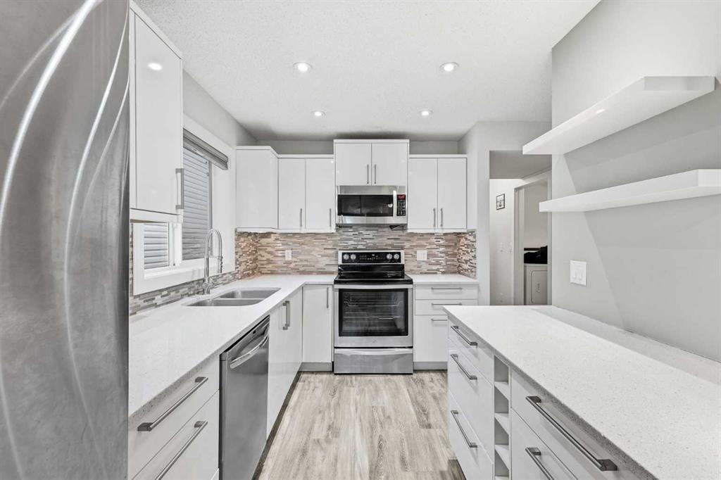 20K+ PRICE DROP! Offering 1,415 sq ft of thoughtfully designed living space, this open and airy two-story townhome is ready for its new owners with an unbeatable inner-city location. The main floor features a bright great room layout with pot lighting, durable laminate flooring, and seamless flow throughout. The timeless white kitchen showcases glossy flat-panel cabinetry, quartz countertops, stainless steel appliances, and a glass tile backsplash — perfect for both everyday living and entertaining. You’ll also find convenient main floor laundry, a 2-piece powder room, and access to a large private front wood deck surrounded by mature trees for added privacy. Upstairs offers three generously sized bedrooms, including a spacious primary retreat. A full bathroom completes this floor. The full undeveloped basement provides excellent storage space and future potential. Assigned parking stall included. Located just steps from the shops, dining, and amenities that make Marda Loop one of Calgary’s most vibrant communities — this is inner-city living at its best.