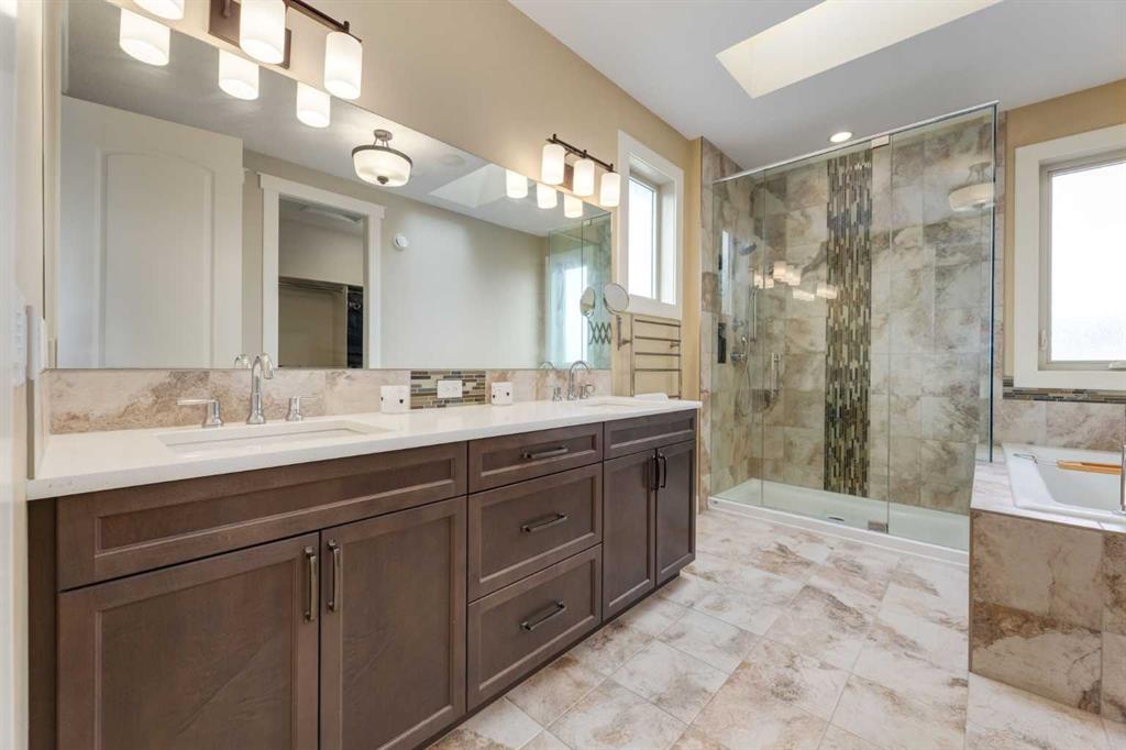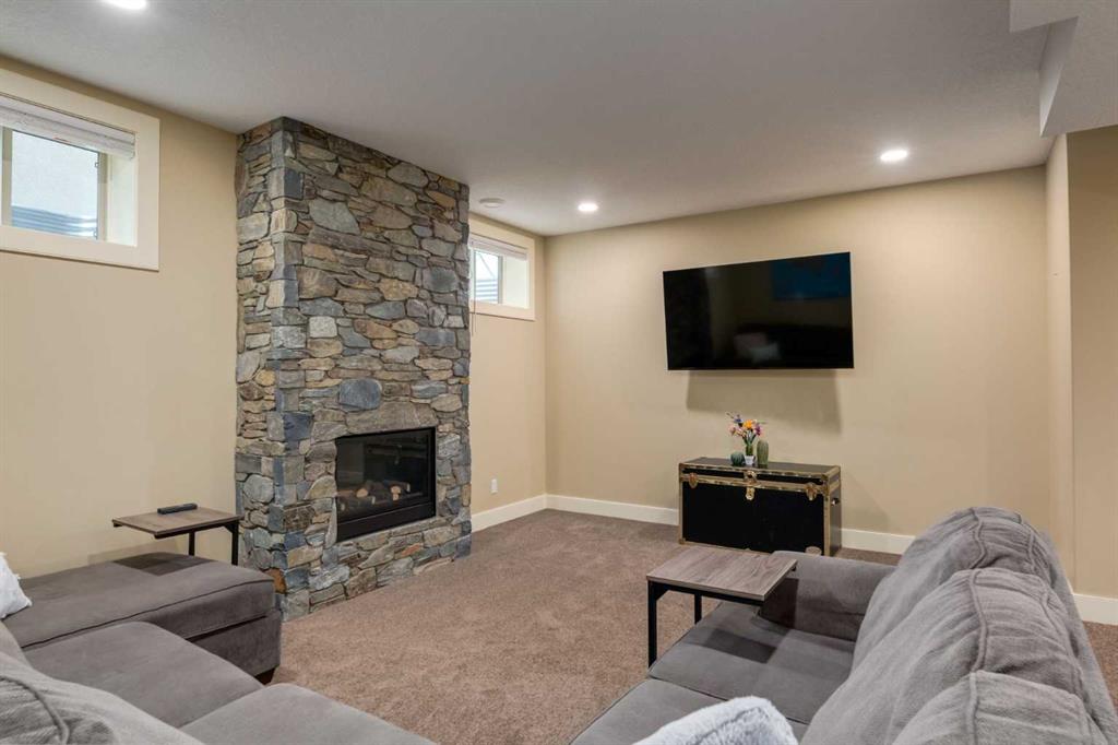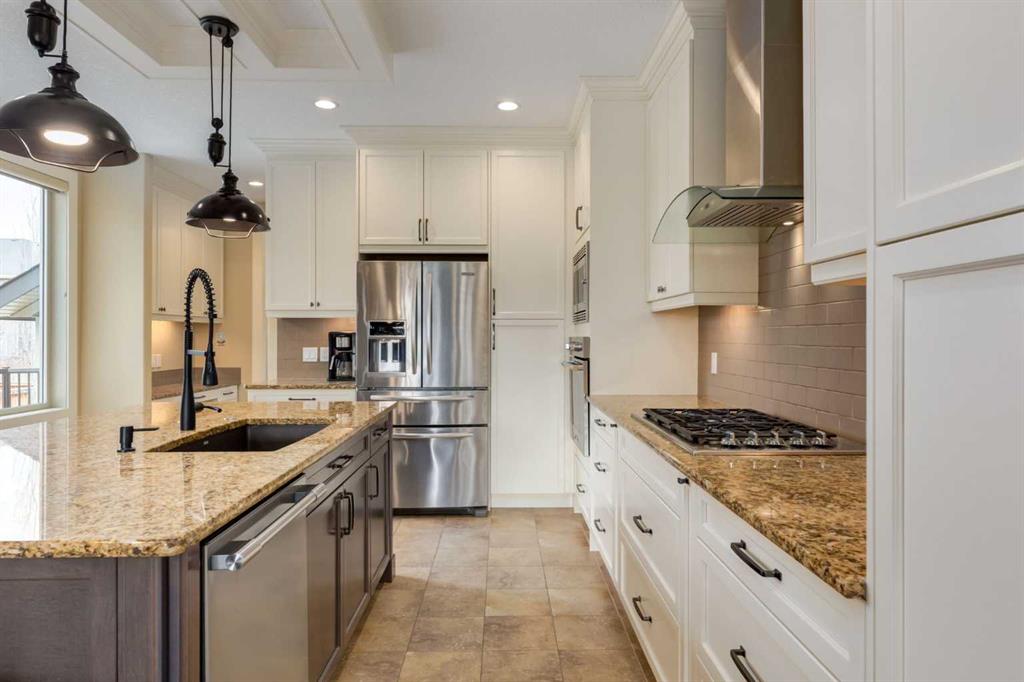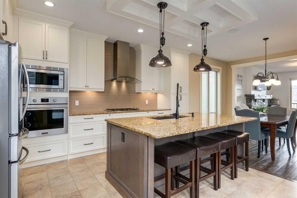 Parkside elegance ~ Exceptional 5 Bedroom home in the Estates of Cooper’s Crossing with over 3,500 sqft of beautiful finished living space, perfectly positioned on one the community’s most sought-after streets! Cooperstown Court is quiet, family-friendly, with under 30 homes centered around a park and mature green space! Immediately admire its full-width front porch, an incredible place to unwind while enjoying peaceful park views, and the home’s striking stonework and architectural presence. The main floor showcases 9’ ceilings, rich hardwood flooring, and a big tiled Foyer with an organized front closet to welcome you. The front Living Room is anchored by a stunning gas fireplace with full stone surround and wood mantle, framed by large windows overlooking the park. Truly standing-out as the heart of this home is the stunning Kitchen…With floor-to-ceiling classic light cabinetry, granite countertops, tiled backsplash, SS appliances, coffee centre, pantry, AND a massive eat-up island with a built-in sink. From here, step outside to the private backyard oasis with all day sun! Featuring a raised deck, lower stone patio, and fully fenced yard! This open layout is made for entertaining, the Dining area sits between the Kitchen & Living Room, elegantly framed by tile inlay, with an adjacent corner cocktail counter including built-in cabinetry & beverage fridge to tie it all together. Also on the main-level is a huge Office featuring a big window & extensive built-in desk with loads of cabinetry, a spacious Mudroom with built-in desk space, bench seating, surrounded by custom storage & elegant hooks, plus a convenient 2-pc Powder Room. Upstairs, the vaulted Bonus Room has built-in speakers and captures beautiful park views, creating the perfect family retreat. The Primary Suite is a luxurious escape featuring abundant natural light and a spa-inspired 5-pc Ensuite, with fully tiled oversized walk-in shower, dual vanities with stone counters & a full-length mirror, soaker tub beneath the opening window, and SKYLIGHT. The Walk-in Closet is finished with custom wood shelving for a refined touch. Two spacious secondary Bedrooms, a stylish 4-pc Bathroom, and convenient top-floor Laundry add everyday functionality. The builder-finished Basement continues the home’s elevated feel with tall ceilings, bright windows, plush carpeting, and a Family / Rec Room with a spectacular floor-to-ceiling stone gas fireplace. This level also offers TWO additional Bedrooms and a magazine-worthy 3-pc Bathroom with stone counters and a fully tiled oversized walk-in shower - bringing the home to a total of FIVE BEDROOMS! There’s even Central A/C for year-round comfort, but we saved the best for last…The impressive 30 x 23 OVERSIZED DOUBLE DETACHED GARAGE is insulated, drywalled, and features exceptional HEIGHT —ideal for maximizing storage or accommodating a hoist. Located just a short walk to nearby schools, pathways, and amenities, this is a rare opportunity to find!