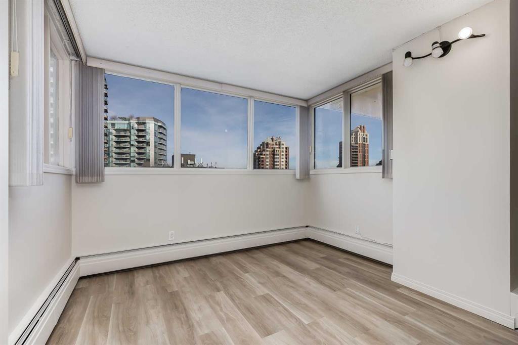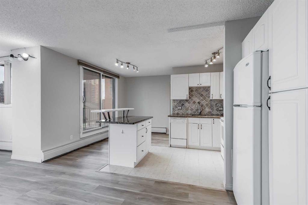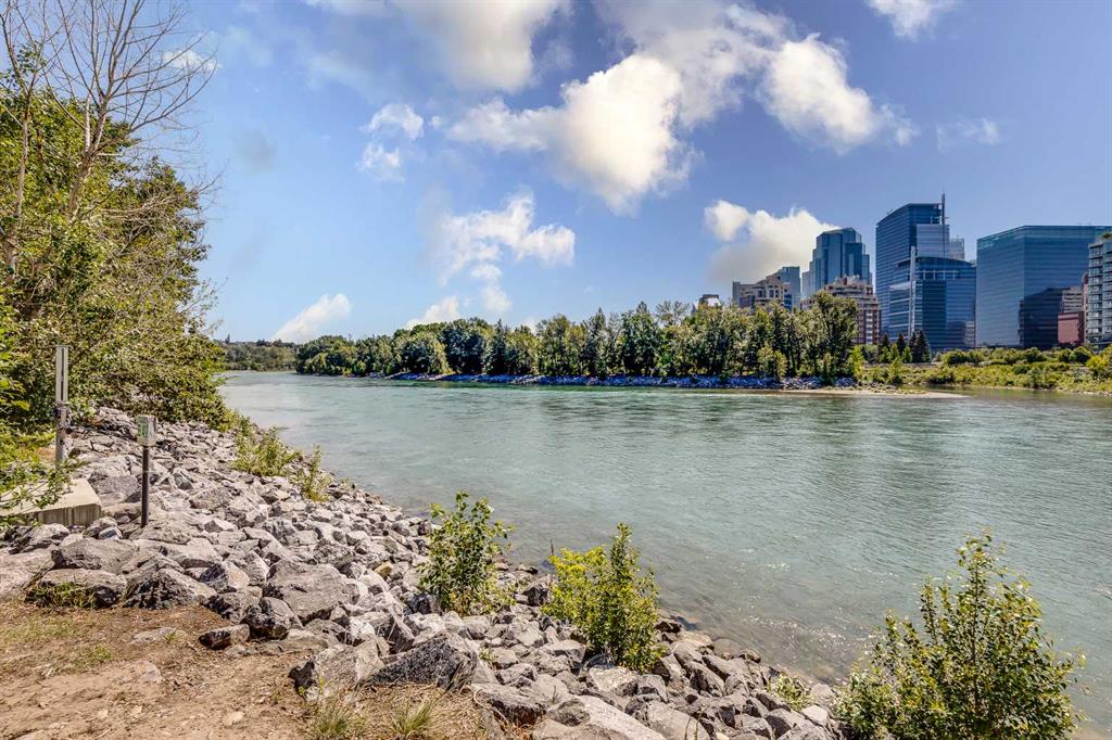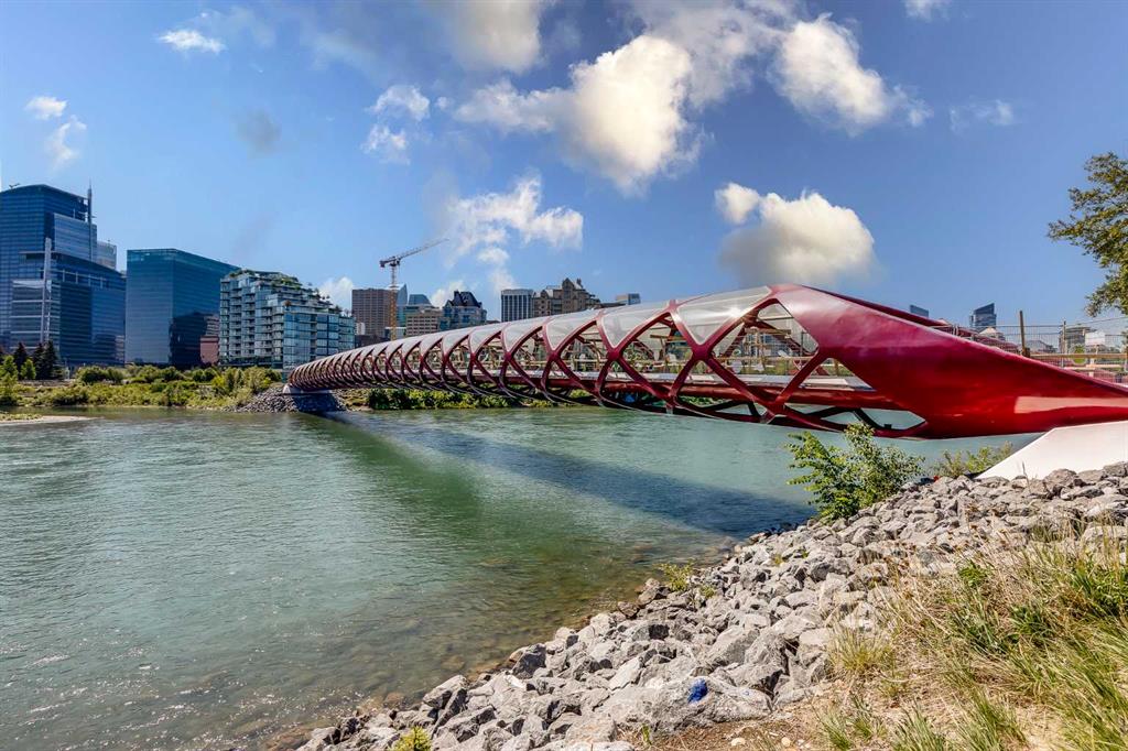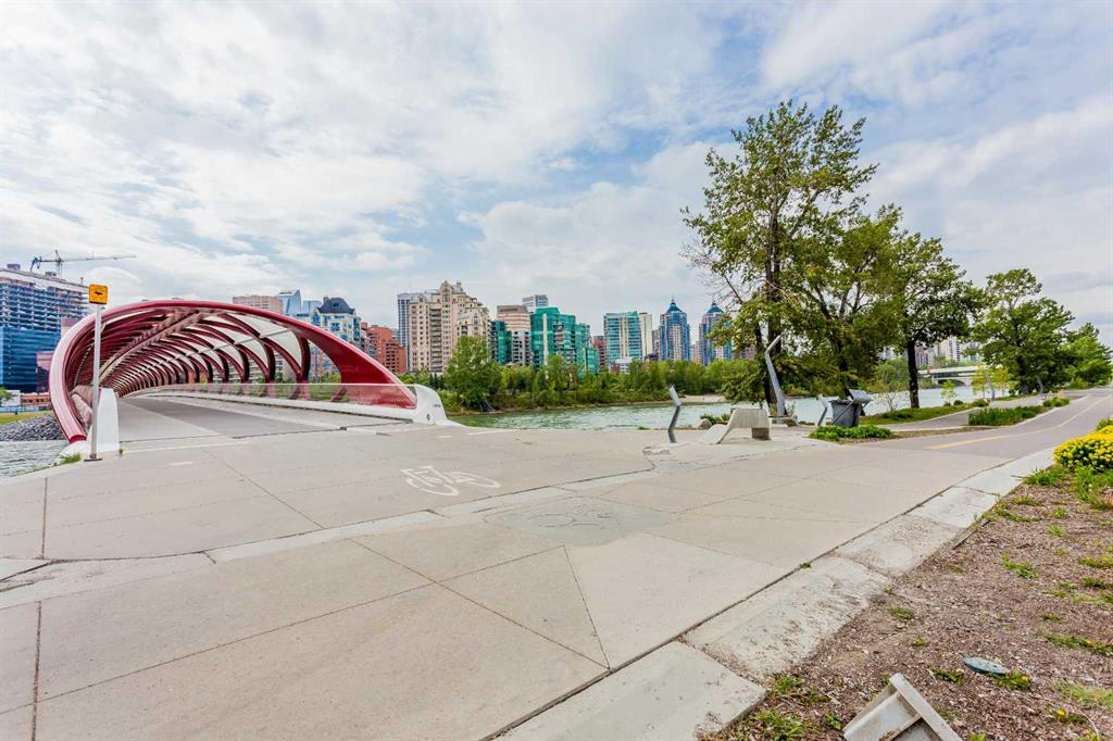 Welcome to elevated living in the heart of Eau Claire. This bright and beautifully maintained CORNER UNIT offers exceptional space, functionality, and modern comfort in one of Calgary’s most desirable downtown communities. Featuring 2 bedrooms and 1 bathroom, this thoughtfully designed home showcases an open-concept layout filled with natural light thanks to its corner positioning and expansive windows. Recent updates include vinyl flooring, fresh paint throughout, and a brand-new dishwasher and mounted microwave, creating a fresh, move-in-ready feel. The modern kitchen is both stylish and practical, complete with granite countertops, an eat-up bar, and ample cabinetry - perfect for everyday living or entertaining. A true standout feature is the oversized walk-in pantry, offering storage space rarely found even in most detached homes. Enjoy the convenience of in-suite laundry and the comfort of heated underground parking, ideally located close to the parkade entrance and elevator for effortless daily access. Even better, all utilities are included in the condo fee, allowing for simplified monthly budgeting and exceptional overall value. Prince’s Crossing is a well-managed concrete high-rise offering an impressive range of amenities, including a fully equipped fitness centre complete with steam room, lockers, showers, concierge service, 24-hour security, daycare located within the building, and an on-site convenience store . Located just steps from the Bow River pathways, parks, restaurants, and everything downtown Calgary has to offer, this home offers the perfect blend of urban vibrancy and natural beauty. Spacious, updated, and exceptionally well located - this one truly checks all the boxes. Book your private showing today.