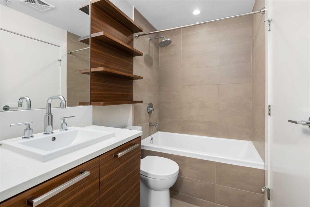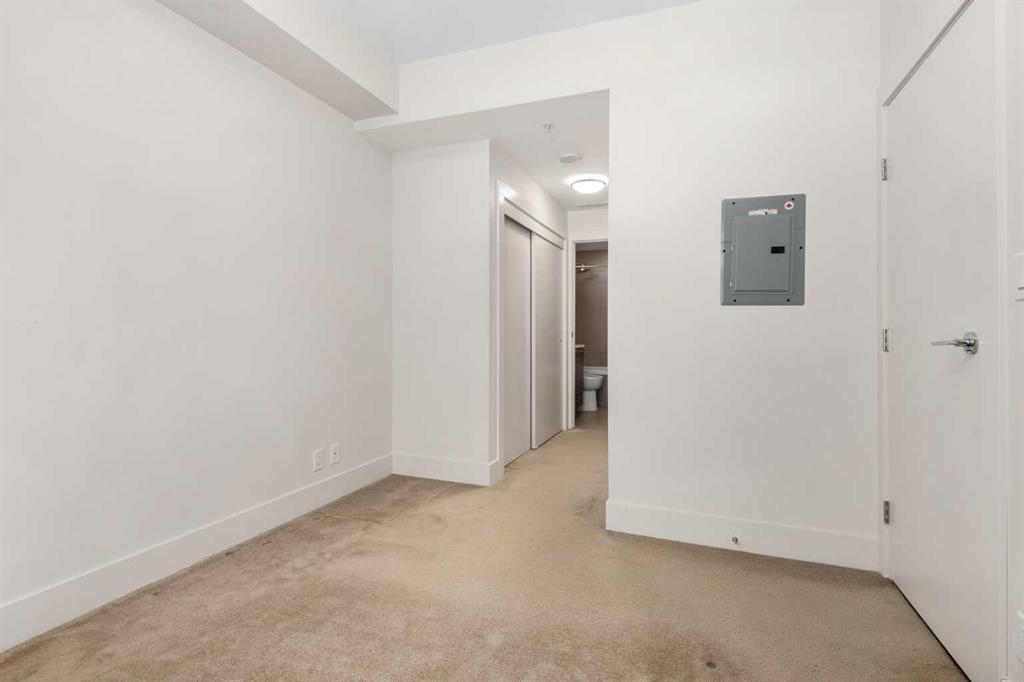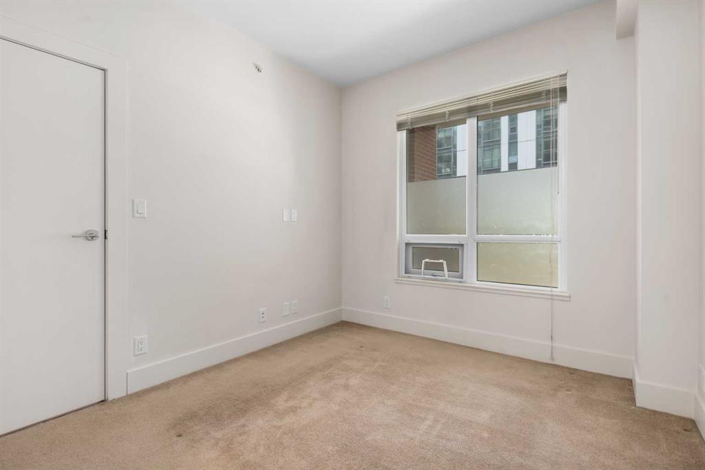 This ground floor freshly painted unit with a fantastic layout includes a must have DEN, unique upgrades, titled parking and convenient storage. The original owners had the builder add a built in pantry/cabinet at end of the kitchen as well as additional shelving in ensuite. The very convenient ground floor access means no elevators and visitors can come directly through the private patio. The unit comes with one title parking stall in the secured underground parking where you will find secure storage for your convenience rather than hauling items through the elevators and hallways. A previous occupant also had security set up on patio for comfort and peace of mind. The bedroom features a walkthrough closet leading to the well appointed 4 piece bath with some custom shelving. With the DEN. the open floor plan, well appointed kitchen, full size washer/dryer and the direct access for your guests this is an amazing opportunity. Bridgeland is known to be one of the best inner city communities in Calgary, This unit sits in one of the best locations within Bridgeland being far enough from Memorial to minimize traffic noise and close enough for an easy walk to the LRT, Zoo, river paths, downtown and several coffee shops and restaurants and shops. Vacant and available for possession at your convenience.