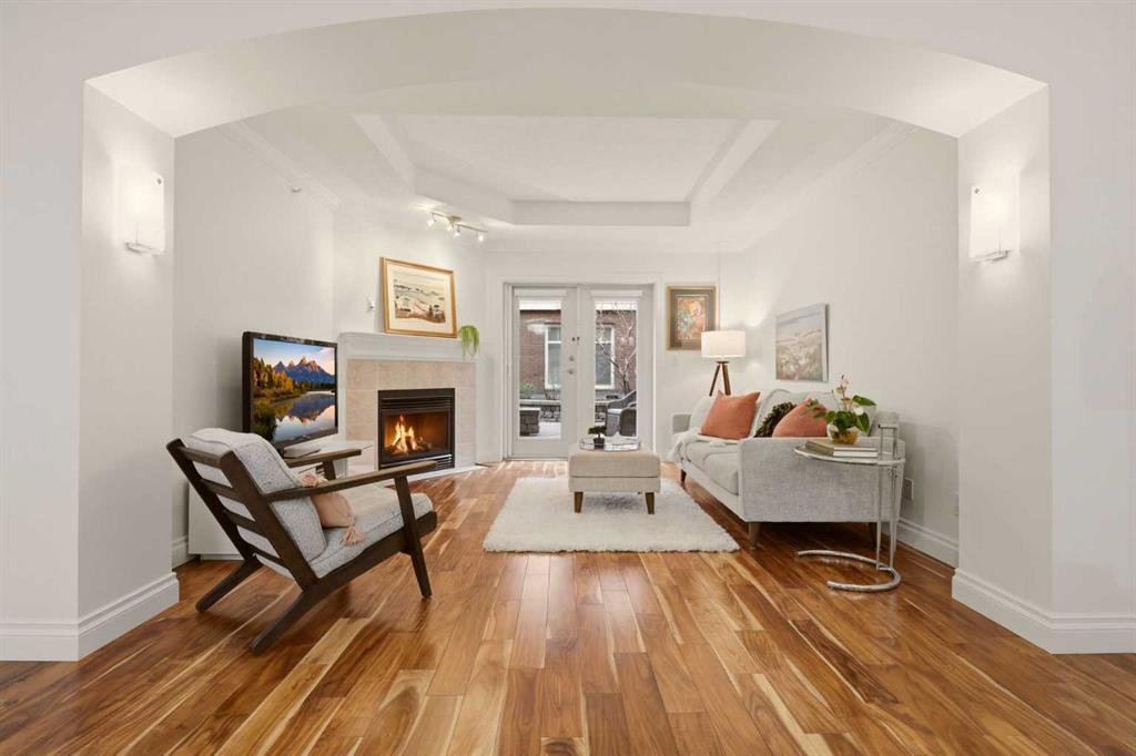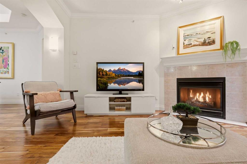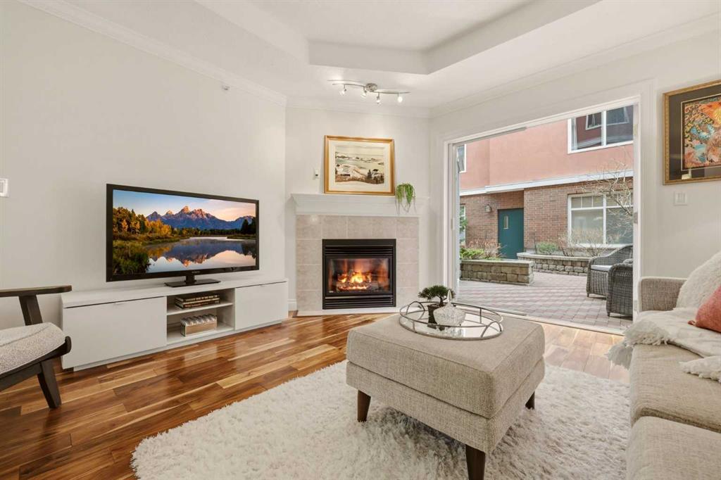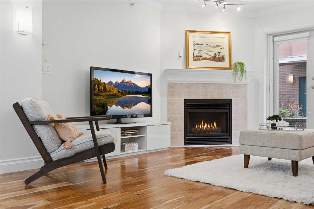 Effortless Elegance in Erlton. For those ready to simplify without compromise, this beautifully appointed two-bedroom residence in Erlton offers a rare balance of sophistication, serenity, and walkable urban living. Just steps from the river pathways along the Elbow River and moments from the restaurants and cafés of Mission, the setting feels both connected and quietly removed. Inside, the home reveals a calming palette and enduring finishes designed for comfort and ease. Solid concrete construction ensures remarkable quiet — an invaluable luxury for professionals who work from home or value true relaxation at day’s end. In-floor heating provides consistent warmth beneath rich hardwood flooring, while the gas fireplace creates an inviting focal point for intimate evenings or relaxed entertaining. The kitchen is as functional as it is welcoming, with granite countertops, an expansive breakfast bar for casual gatherings, and a separate dining area suited to everything from weeknight dinners to hosting close friends. The layout flows naturally, offering just the right amount of space — never overwhelming, always intentional. Positioned on the main floor, the residence offers seamless access to a private patio — ideal for morning coffee, container gardening, or simply enjoying fresh air without the upkeep of a larger property. It’s a lifestyle shift that prioritizes freedom: lock-and-leave convenience for travel, and manageable elegance for everyday living. Beyond the suite, a private access landscaped courtyard centered around a tranquil pond and fountain creates a peaceful backdrop. Residents enjoy thoughtfully arranged seating areas, welcoming meeting spaces, and a refined snooker lounge — amenities that foster community while maintaining privacy. Pet-friendly (with board approval), allowing cats and dogs under 30 lbs, making it an ideal option for those seeking a refined home that accommodates both lifestyle and companionship. This is living designed for those who value quality over quantity — where riverside walks replace yard work, and evenings out are just steps from home. A graceful next chapter, in one of Calgary’s most charming enclaves.
