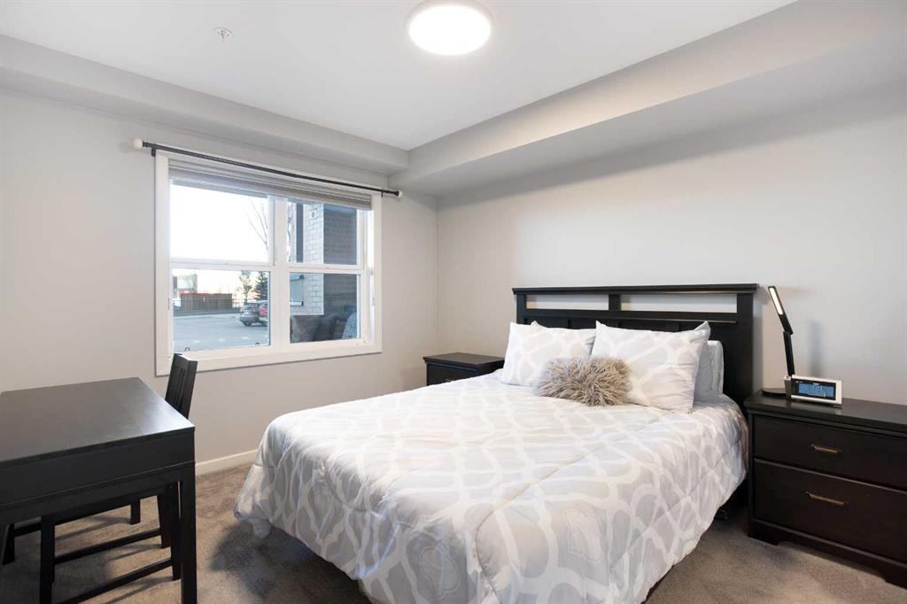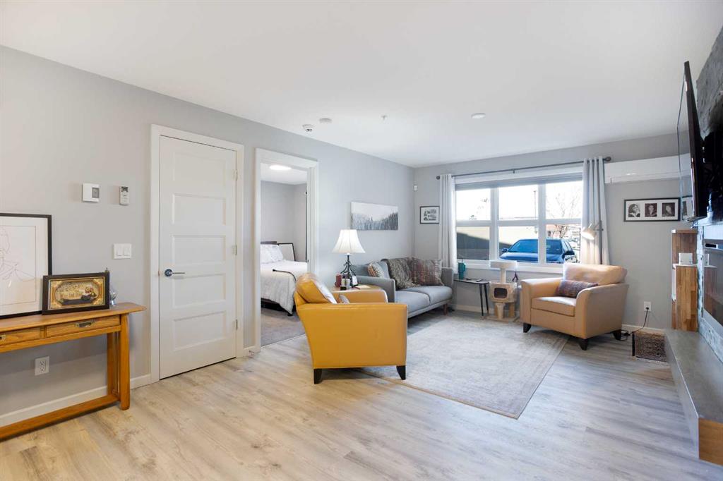 Welcome to The Chateaux in King's Heights and take a look at this beautifully maintained 2 bedroom + den, 2 full bathroom main floor unit in a well-managed 55+ community. Thoughtfully designed with a bright, open-concept layout, this home offers both comfort and functionality for easy everyday living. The spacious living and dining areas are filled with natural light and flow seamlessly into the kitchen — perfect for entertaining or relaxing at home. A versatile den provides the ideal space for a home office, reading room, hobby area or extra storage. Each bedroom features a spacious walk through closet leading to the attached bathrooms. Enjoy the convenience of in-suite laundry and stay comfortable year-round with a wall-mounted A/C unit. Step outside to your private patio, perfect for morning coffee or evening unwinding, with the added benefit of main floor accessibility. This unit includes two titled parking stalls — one underground for added security and winter comfort, and one surface stall for guests or a second vehicle. Ideally located with easy access to grocery stores, shopping, and restaurants, everything you need is just minutes away. An excellent opportunity to enjoy low-maintenance living in a welcoming 55+ community — don’t miss your chance to call this inviting home yours!
