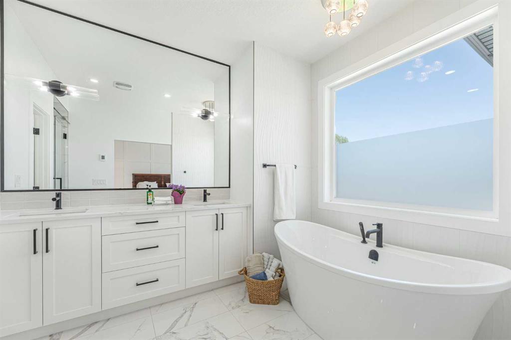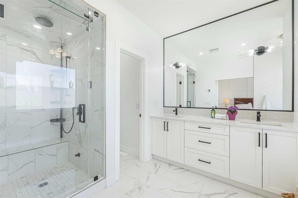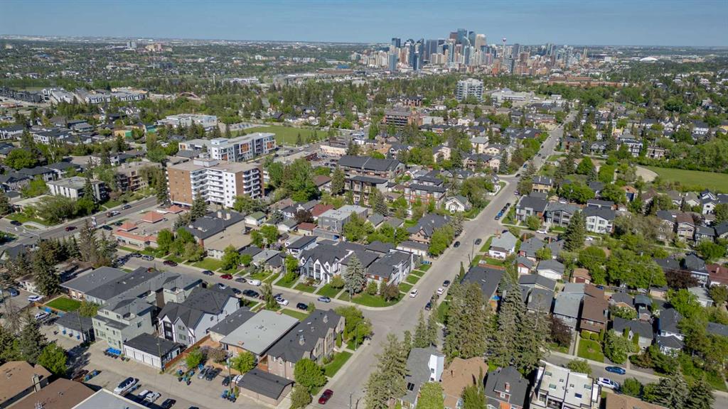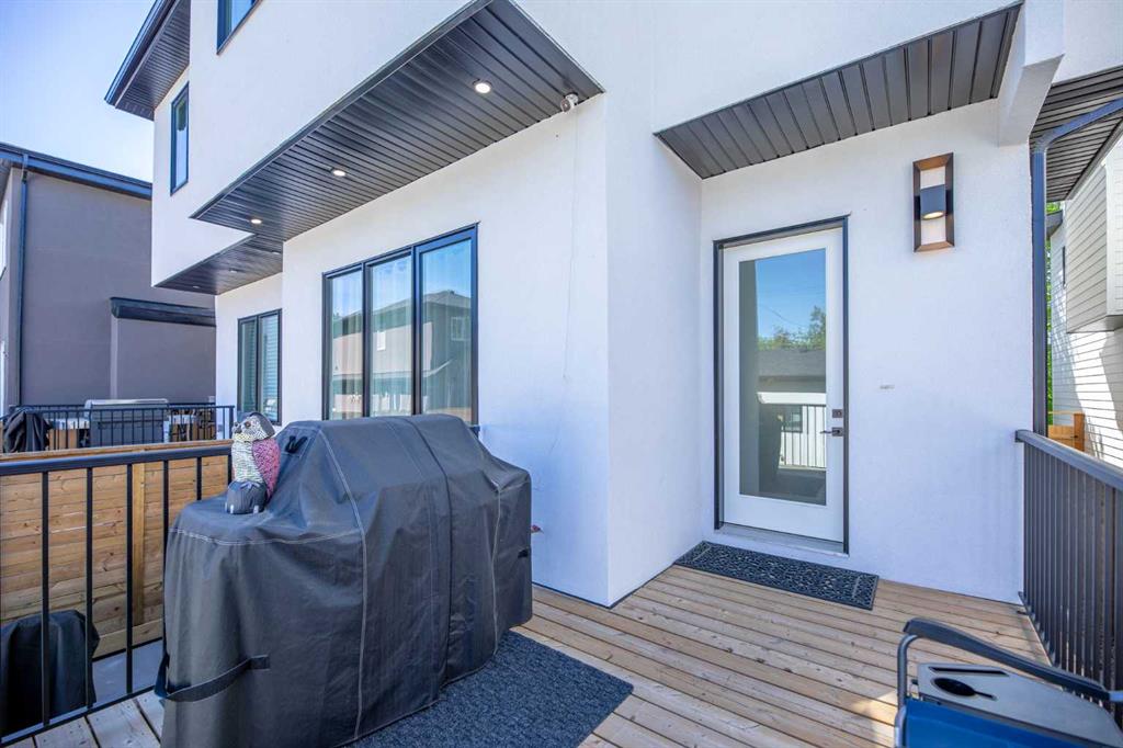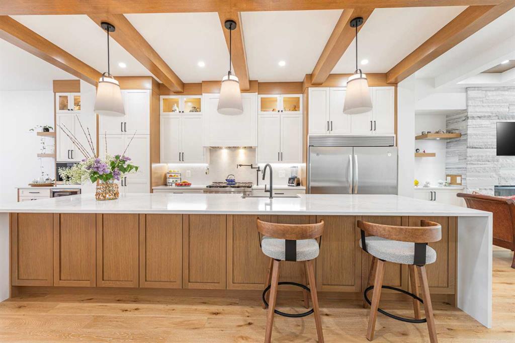 Welcome to this beautifully designed home on a quiet street in the sought after community of Killarney. Offering over 2,800 sq. ft. of luxurious living space, this air-conditioned 4 bedroom, 3.5 bathroom residence showcases exceptional craftsmanship and timeless style. The bright main floor features coffered ceilings, rich hardwood floors, a dramatic curved staircase, and a custom stone fireplace. The chef-inspired kitchen is equipped with full height cabinetry, quartz countertops, premium stainless steel appliances including a commercial-style gas range, a built-in coffee maker, farmhouse sink, and an impressive 12-foot island. The dining area offers seamless access to a landscaped backyard with deck and patio perfect for entertaining. Upstairs, the primary suite offers a walk-in closet and a spa like 5-piece ensuite with heated floors, soaker tub, steam shower, and dual vanities. Two additional bedrooms, a full bath, and convenient laundry complete the level. The fully finished basement features in-floor heating, a spacious family room with wet bar, fourth bedroom, and another full bathroom. Enjoy a heated double detached garage and easy access to parks, schools, the Killarney Aquatic & Recreation Centre, and downtown Calgary. Exceptional inner-city living awaits.
