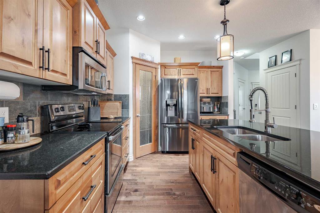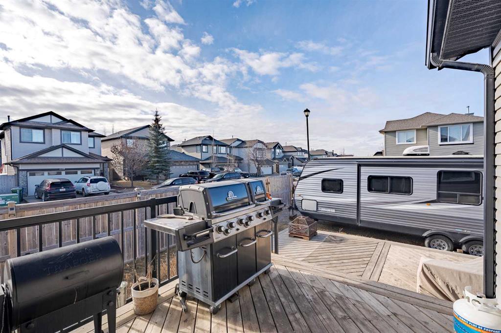 YOUR CHANCE TO ACCESS AIRDRIE DETACHED CORNER LOT FOR UNDER $600,000! | Set on a prominent corner lot in the established community of Prairie Springs, this fully developed two-storey offers the space, layout, and versatility for growing families! With ~2,400 sqft of total living space designed to function as beautifully as it feels, featuring 4 total bedrooms, 3.5 bathrooms and a fully developed basement. The double front attached garage, double-car driveway, and additional RV parking pad in the backyard create rare flexibility for multi-vehicle households, recreational storage, or future utility needs. Corner lots also mean more breathing room, additional street parking, and enhanced curb appeal. Inside, the main floor unfolds in a warm and welcoming open-concept design. Rich hardwood flooring leads into a kitchen that is both practical and polished, featuring granite countertops, ample prep space, and seamless flow into the dining area and quick access onto the back deck. The spacious living room is anchored by a cozy fireplace – an inviting focal point for quiet evenings or lively gatherings. Whether hosting gatherings or managing weekday routines, the layout supports real life family needs. Large windows invite natural light throughout, while the connection to the backyard deck extends your living space outdoors. The deck is ideal for summer entertaining, morning coffee rituals, or simply unwinding after a long day. Garden beds provide an opportunity to cultivate vegetables, herbs, or seasonal colour – adding personality and purpose to the yard. That's not all – right behind the yard is a community walking path leading to a playground, perfect for walking the dog and for kids to explore! Upstairs, three bedrooms create a comfortable retreat for the family. The primary suite offers privacy and convenience with its own ensuite, while the additional bedrooms are thoughtfully sized for children, guests, or home office flexibility. Carpet upstairs adds comfort underfoot, balanced by durable ceramic tile in high-traffic areas. The fully developed basement meaningfully expands the home’s functionality. A fourth bedroom, full bathroom, and generous recreation room / movie room creates endless options – whether as a teenager’s retreat, guest quarters, home gym, media lounge, or play space. This lower level ensures the home adapts as your family’s needs evolve. What sets this property apart is its balance: open yet defined spaces, indoor-outdoor flow, storage and parking flexibility, and a location within the established south-Airdrie neighbourhood Prairie Springs that remains popular for its family-oriented atmosphere and accessibility. Quick access onto Highway 2 provides commute to Calgary within minutes. Book your showing today, and see all this home has to offer! Rare corner lot with RV parking!