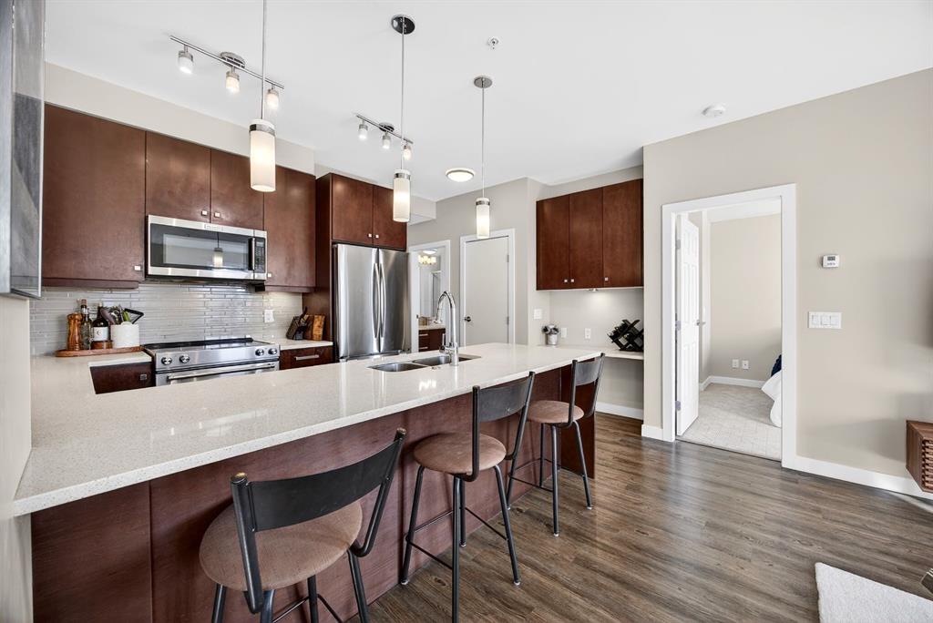 Welcome to Lower Mount Royal! This bright and beautifully maintained 2-bedroom, 2-bathroom condo offers an incredible combination of space, comfort, and walkability in one of Calgary’s most vibrant inner-city communities. As one of the larger units in the building, this home is filled with natural light and features TWO balconies—both west-facing perfect for enjoying the afternoon sun and evening light. Thoughtfully designed for everyday living, the unit showcases an open concept floor plan, ample storage, stainless steel appliances, soft close cabinetry, wide-plank flooring, in-floor heating, and a functional layout that feels both spacious and inviting. Enjoy the convenience of titled underground parking, an assigned storage locker, and in-unit laundry with a newly purchased stacked washer and dryer (2026). Located in the heart of Lower Mount Royal, you’ll love the strong sense of community along with the safety and exceptional walkability to nearby shops, restaurants, parks, and river pathways. This is inner-city living at its best.