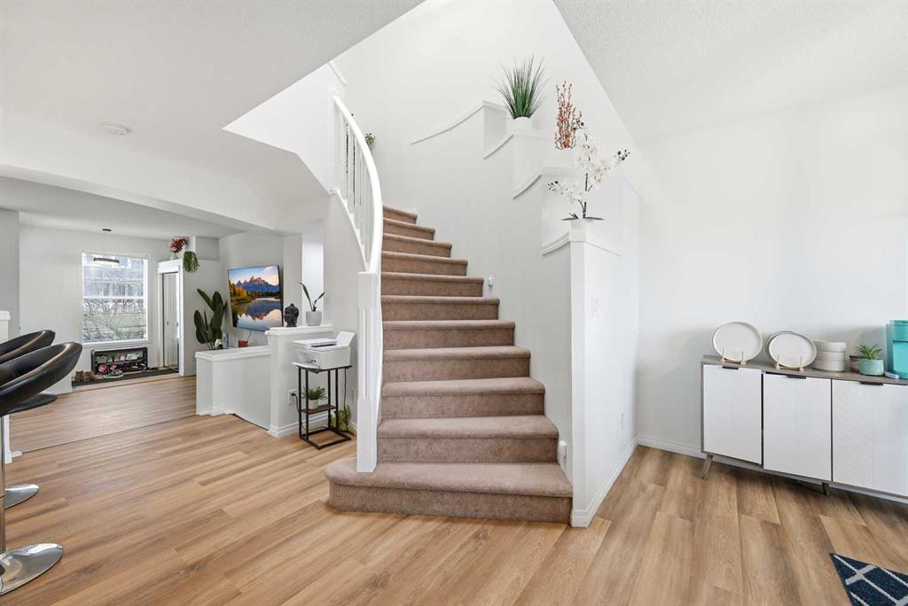 Welcome to 41 New Brighton Green SE, a FULLY RENOVATED bright and inviting home with a unique and practical layout. This well kept property sit on a EAST-WEST lot and offers three bedrooms and two and a half bathrooms, making it perfect for families or first time buyers. The main floor is open and filled with natural light, featuring an open to above kitchen that creates a spacious feel. The sunken living room is warm and cozy, complete with an electric fireplace that is ideal for relaxing evenings or entertaining guests. The living, dining, and kitchen areas flow smoothly together, giving plenty of room for daily living and gatherings. A discreet half bath and small mud area add extra convenience on the main level. Upstairs, the rounded staircase leads to a bright landing with a skylight. The primary bedroom is generously sized with a walk in closet and a private 4 piece ensuite. Two more comfortable bedrooms and another full bathroom complete the upper floor. Outside, enjoy the west-facing fenced backyard with an oversized double parking area, perfect for outdoor enjoyment and extra parking. Large windows bring in plenty of sunlight throughout the day, making every room feel bright and welcoming. The layout is easy to maintain and works well for both everyday living and special occasions, offering a move in ready home full of comfort and charm.