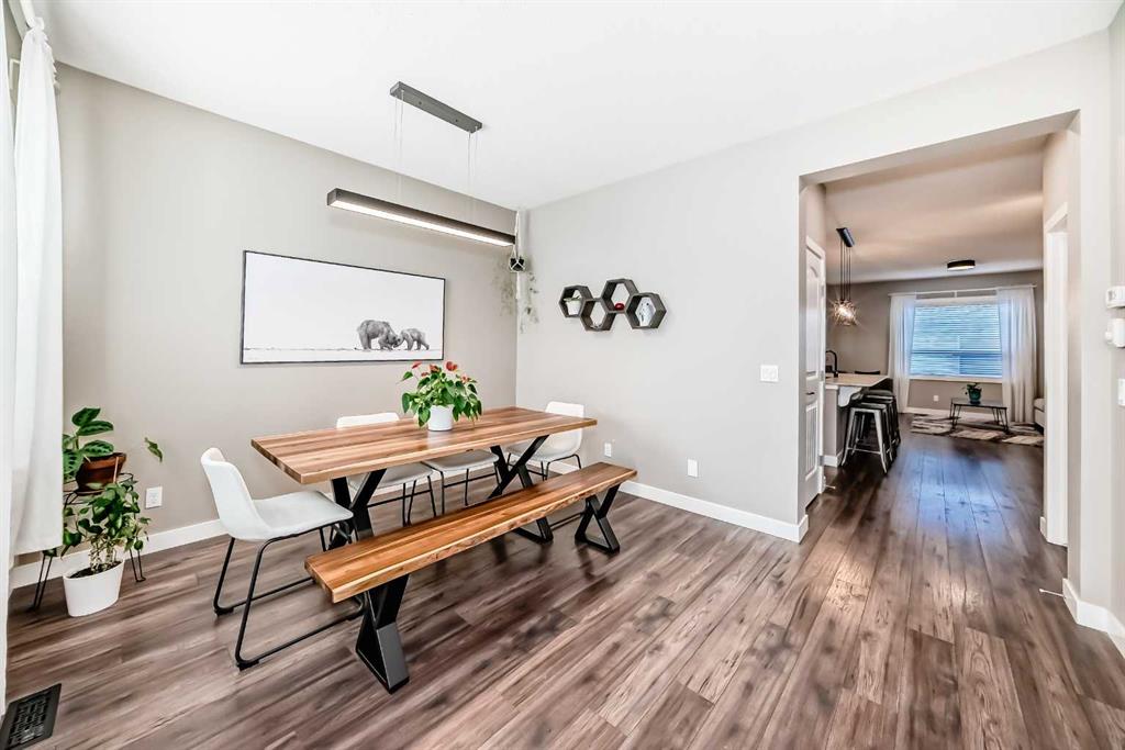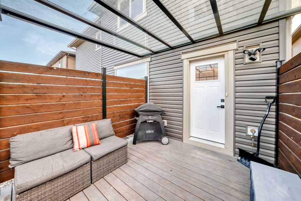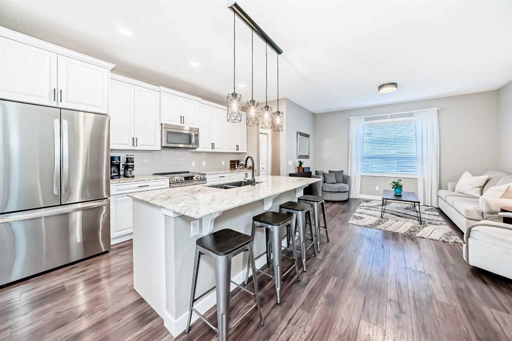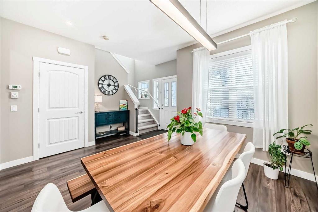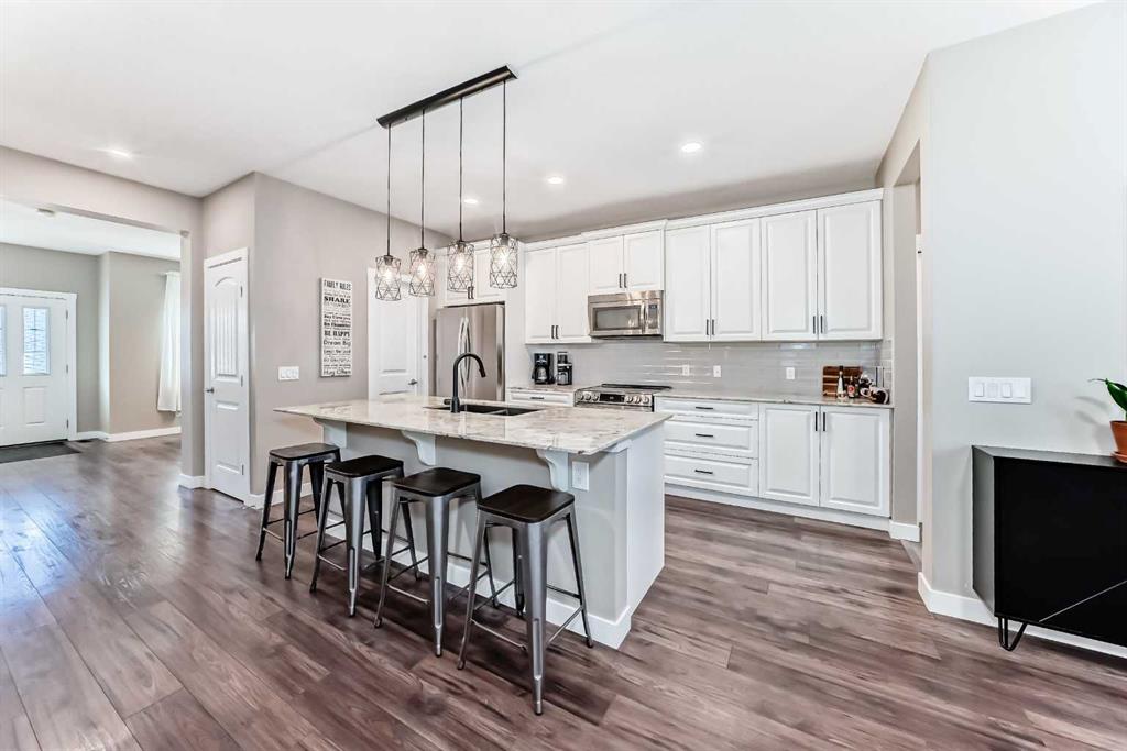 Looking for a change of pace? Come and check out this stunning home whether you’re looking for a smart start or a great downsizing option this centrally located home in the convenient Midtown neighbourhood of Airdrie offers a total of 4 bedrooms and 3 ½ bathrooms with numerous upgrades throughout. A covered front porch provides a welcoming entrance and a peaceful place to enjoy your morning coffee. The main level features vinyl plank flooring running seamlessly throughout which is both beautiful & durable for families & pets. Open front room can be used as a formal dining area, home office or 2nd living space. The stunning kitchen really is the heart of this home, large expanses of quartz counters, a newer suite of stainless appliances, walk-in pantry, loads of cabinets and a sit up island for casual meals and entertaining. It overlooks the living room and a great flex area that can be used as a dining room, or extra living space. The thoughtfully laid out upper level boasts new carpet, 3 bedrooms, a main 4 piece bathroom and a convenient separate laundry room. The Primary bedroom has a large walk in closet and a beautiful en-suite bathroom with a deep soaker tub & separate shower. The basement was professionally developed in 2024 with all permits in place. It features a spacious family room anchored by a gorgeous electric fireplace & mantle with heat & light settings, a large 4th bedroom and a stunning full 4 piece bathroom. Additional recent upgrades & notable features include Central Air Conditioning, new water softener (2025), new carpet on the upper level, all bathrooms in the home have quartz topped counters & newer Toto toilets. Out the back door you’ll find a great little patio with a custom clip in removable sunshade on a glass roof, side privacy screens and a natural gas hook up for your BBQ. The xeriscape back yard provides a sustainable, low-water & low maintenance area – perfect for pets. Detached double car garage is accessed off the paved back lane. Midtown is one of Airdrie’s most thoughtfully planned neighbourhoods. Perfectly situated in the middle of the bustling city of Airdrie yet designed to create a small town feel. Its central location is a major perk, just minutes from Main Street, schools, grocery stores, restaurants, gyms, and major commuting routes, the community offers unbeatable convenience. Whether you’re commuting into Calgary, dropping kids at activities, or grabbing dinner close to home, everything is easily accessible. Your new street is anchored at one end by Iron Horse Park and the other by a large playground and pathways around the pond. You're going to love living here!