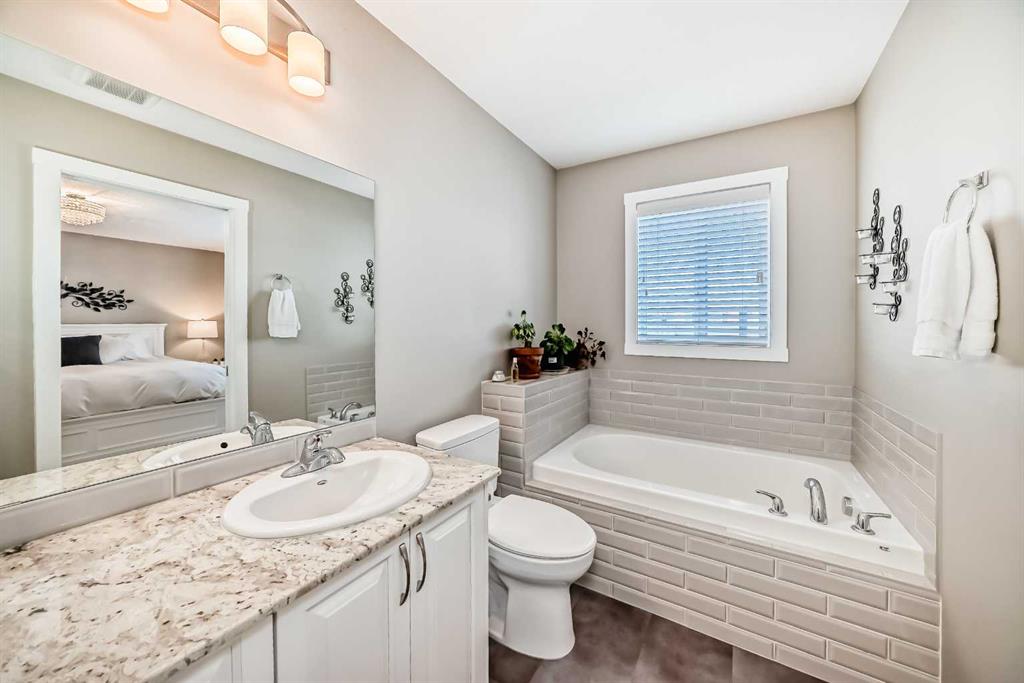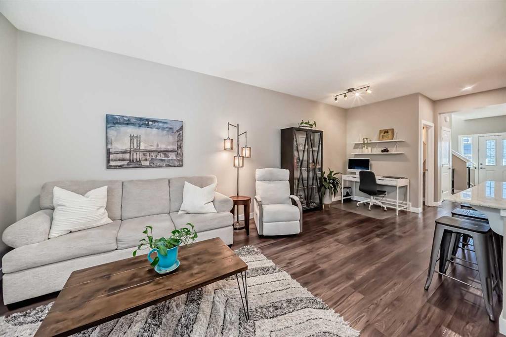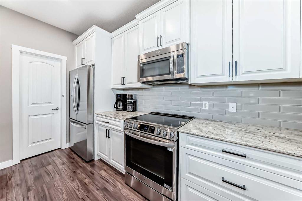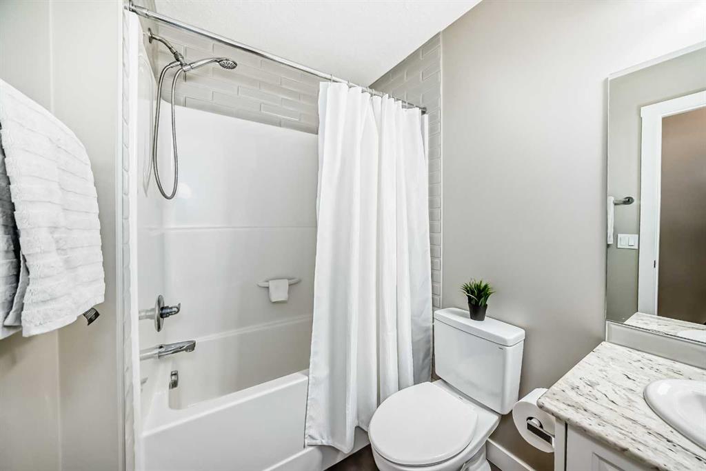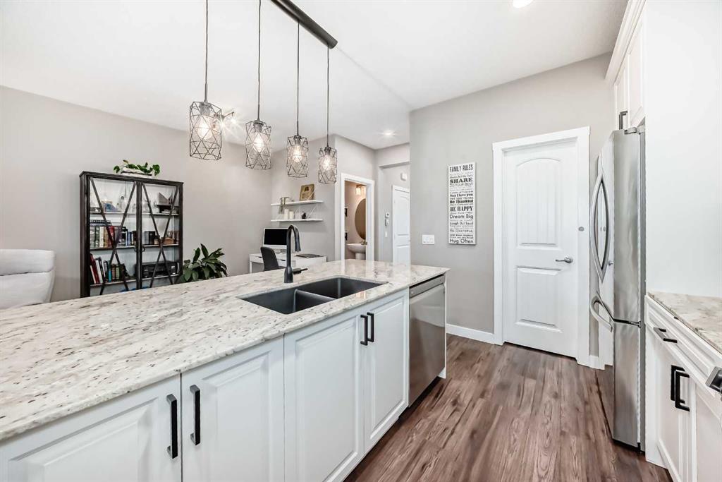 Looking for a change of pace? Come and check out this stunning home whether you’re looking for a smart start or a great downsizing option this centrally located home in the convenient Midtown neighbourhood of Airdrie offers a total of 4 bedrooms and 3 ½ bathrooms with numerous upgrades throughout. A covered front porch provides a welcoming entrance and a peaceful place to enjoy your morning coffee. The main level features vinyl plank flooring running seamlessly throughout which is both beautiful & durable for families & pets. Open front room can be used as a formal dining area, home office or 2nd living space. The stunning kitchen really is the heart of this home, large expanses of quartz counters, a newer suite of stainless appliances, walk-in pantry, loads of cabinets and a sit up island for casual meals and entertaining. It overlooks the living room and a great flex area that can be used as a dining room, or extra living space. The thoughtfully laid out upper level boasts new carpet, 3 bedrooms, a main 4 piece bathroom and a convenient separate laundry room. The Primary bedroom has a large walk in closet and a beautiful en-suite bathroom with a deep soaker tub & separate shower. The basement was professionally developed in 2024 with all permits in place. It features a spacious family room anchored by a gorgeous electric fireplace & mantle with heat & light settings, a large 4th bedroom and a stunning full 4 piece bathroom. Additional recent upgrades & notable features include Central Air Conditioning, new water softener (2025), new carpet on the upper level, all bathrooms in the home have quartz topped counters & newer Toto toilets. Out the back door you’ll find a great little patio with a custom clip in removable sunshade on a glass roof, side privacy screens and a natural gas hook up for your BBQ. The xeriscape back yard provides a sustainable, low-water & low maintenance area – perfect for pets. Detached double car garage is accessed off the paved back lane. Midtown is one of Airdrie’s most thoughtfully planned neighbourhoods. Perfectly situated in the middle of the bustling city of Airdrie yet designed to create a small town feel. Its central location is a major perk, just minutes from Main Street, schools, grocery stores, restaurants, gyms, and major commuting routes, the community offers unbeatable convenience. Whether you’re commuting into Calgary, dropping kids at activities, or grabbing dinner close to home, everything is easily accessible. Your new street is anchored at one end by Iron Horse Park and the other by a large playground and pathways around the pond. You're going to love living here!