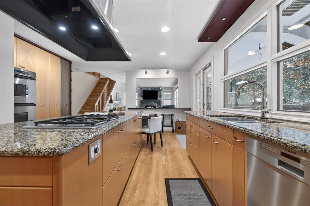 **Open House Saturday, March 21 12:00-3:00** Spacious two storey, set on an 11,000+ square foot pie lot in the highly sought after neighbourhood of Lakeview Village. Thoughtfully expanded and extensively updated, this home reflects timeless updates and clear pride of ownership. Large windows, oak hardwood floors, and two fireplaces anchor the main living areas, while custom built ins provide exceptional storage and functionality. The renovated kitchen features a large island, granite countertops, oversized sink, gas cooktop, double wall ovens, and updated appliances. Adjacent living and dining spaces open to a private wrap around deck with natural gas hookups. The upper level includes four bedrooms, highlighted by a spacious primary suite with sitting area, walk in closet with organizers, private deck, and a full ensuite with double sinks, air tub, steam shower, and skylight. One bedroom is currently configured as a dedicated office with built ins for two workstations. The finished basement adds two additional bedrooms, a media room, games area, and generous storage. Exterior highlights include a double garage plus carport, triple wide driveway, underground sprinklers, mature landscaping, and multiple storage sheds. Located near North Glenmore Park, Earl Grey Golf Course, excellent schools, and offering quick access to downtown and the mountains. A substantial, well maintained family home on a private lot in one of Calgary’s most established and sought after communities.