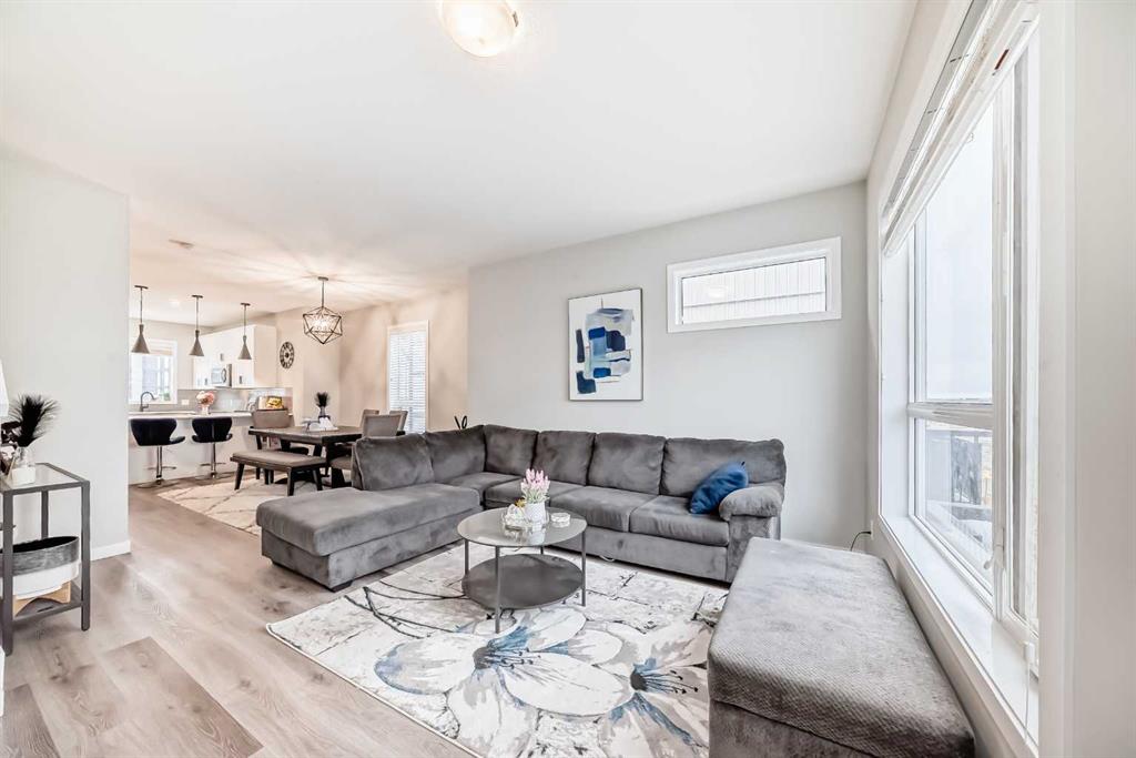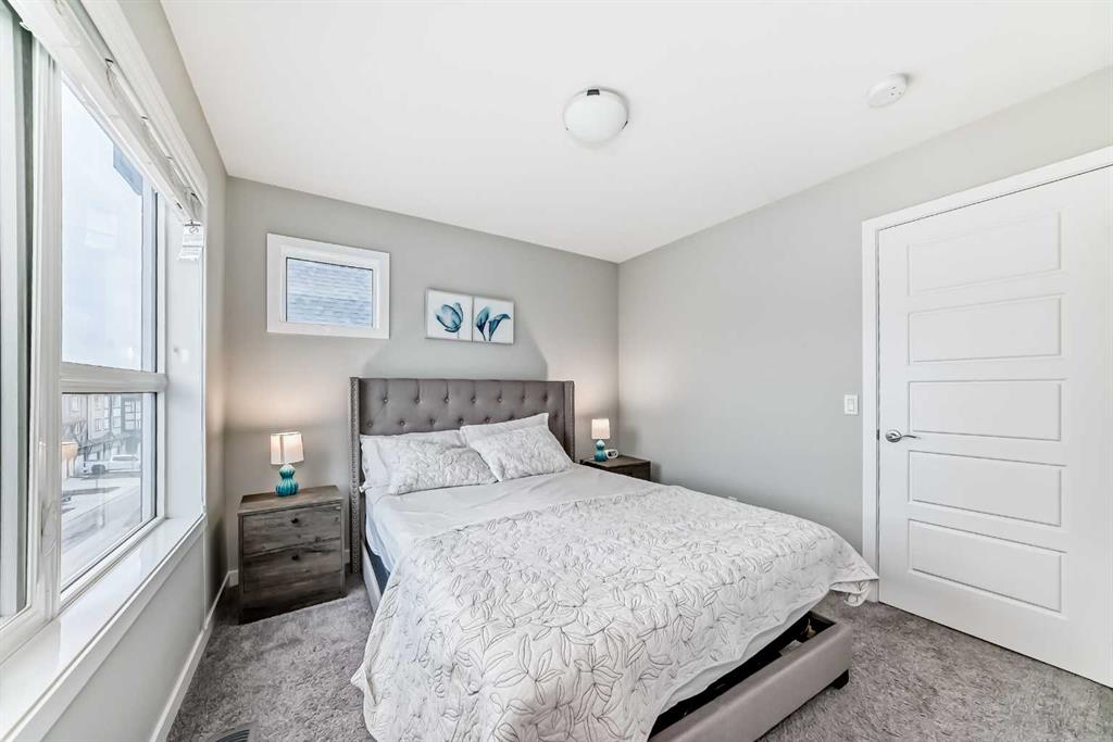 Welcome to elevated townhome living in Belmont. This beautifully upgraded 3-bedroom, 2.5-bath home offers 1511.8 sq. ft. of thoughtfully designed space with 9’ ceilings on the main level and 8’ ceilings upstairs, creating a bright, airy feel throughout. The main floor features an open-concept layout ideal for everyday living and entertaining. At the heart of the home is a chef-inspired U-shaped kitchen with exceptional counter space and storage, highlighted by a striking waterfall-edge island, upgraded sink, and under-cabinet lighting for added style and function. A dedicated breakfast bar adds flexibility for casual meals and hosting. The spacious great room flows seamlessly into the dining area, while roller shades and upgraded window coverings (including the balcony door) provide a polished, modern finish. Step out to the upper-level balcony, perfect for morning coffee or winding down in the evening. Upstairs, the primary suite offers a well-appointed ensuite. Two additional bedrooms provide excellent flexibility for family, guests, or a home office, and the upper-floor laundry completes the level. Additional upgrades include a bold black lighting package, elevated hardware and fixtures, and cohesive designer finishes throughout. A standout feature is the oversized tandem attached garage (11.3’ x 38.1’)—ideal for parking, storage, a workshop, or hobby space. Enjoy a convenient location close to parks, pathways, shopping, dining, and major routes—plus walking distance to the new City Field House currently being built in Belmont. Move-in ready and loaded with upgrades—this is a standout opportunity for modern, low-maintenance living.