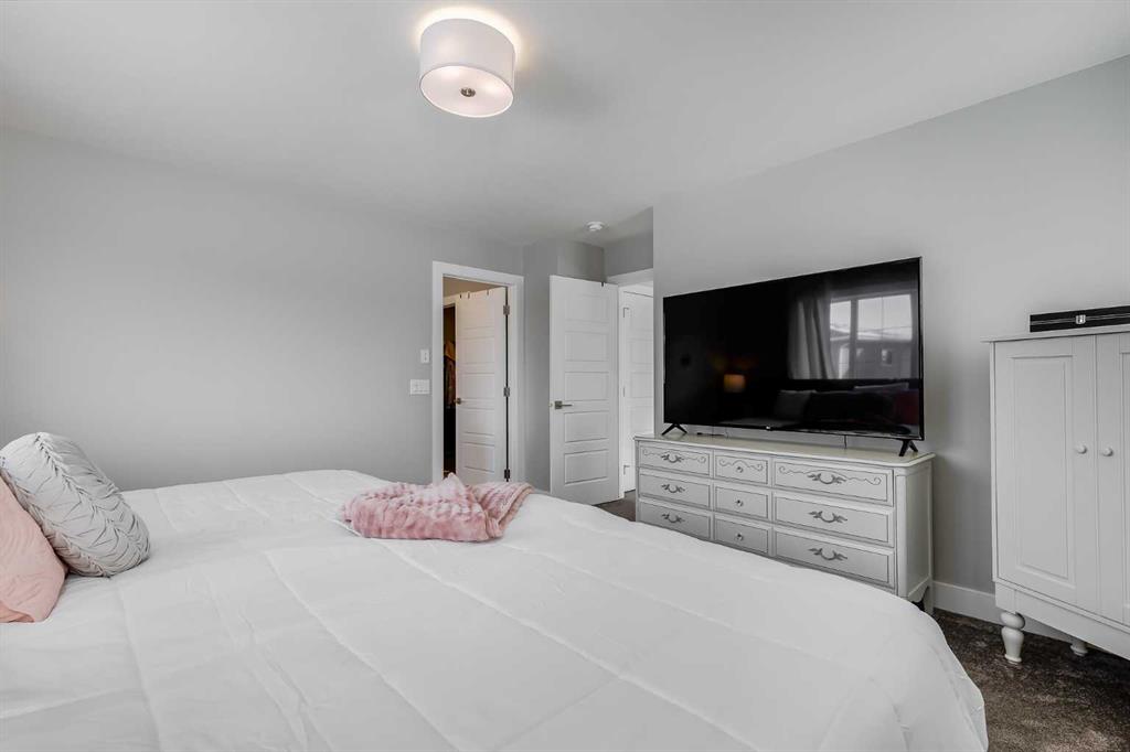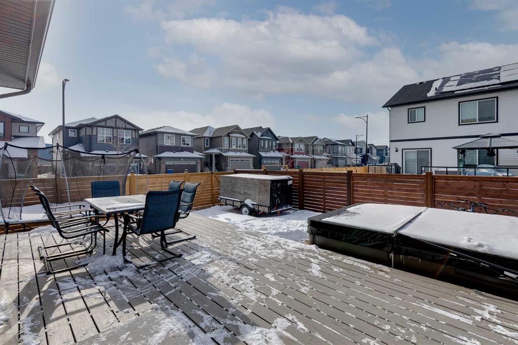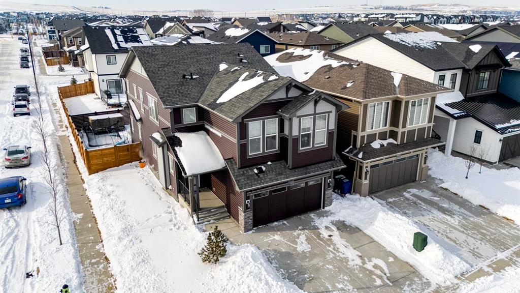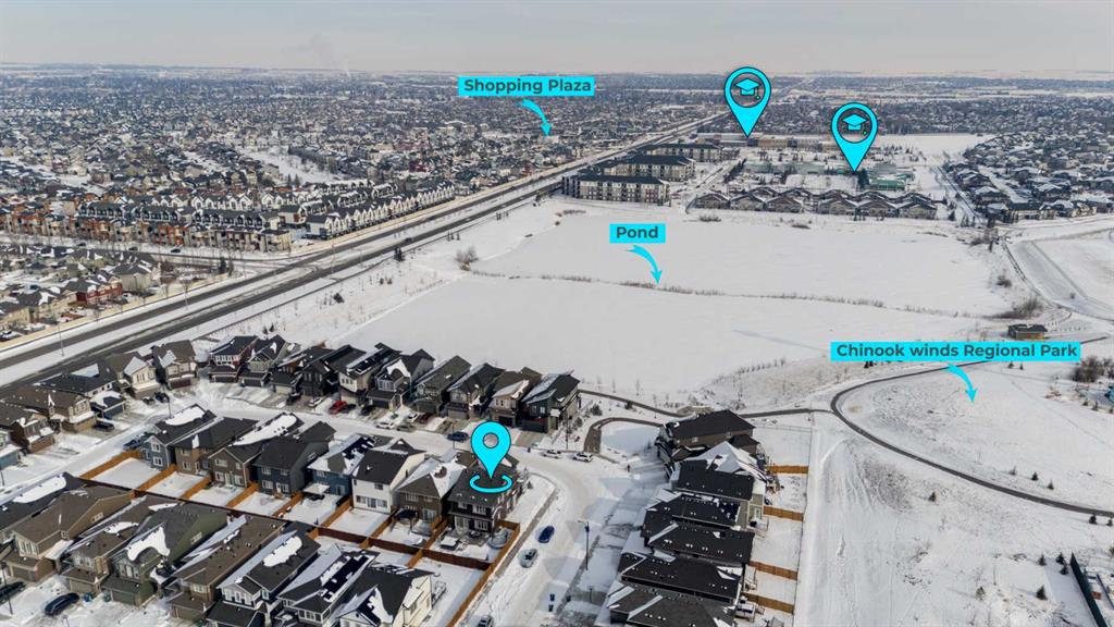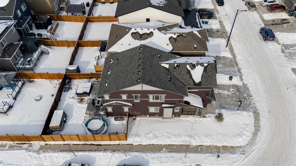 Nestled in the vibrant, family-friendly community of Chinook Gate, this home, built by Excel Homes in 2023, offers 2,375 sq ft of thoughtfully designed living space on a corner lot with a double attached garage. With serene pond views and scenic walking paths, it combines modern comfort with an exceptional location, just steps from parks, playgrounds, and all the amenities a growing family could want. Inside, a welcoming entryway with soaring 9’ ceilings sets the tone for the main floor, where luxury vinyl plank flooring and abundant natural light create an open, airy feel. A flexible front room offers a home office, sitting area, or formal dining space, adapting easily to your lifestyle. The heart of the home is the open-concept kitchen, dining, and living area. The kitchen impresses with crisp white upper cabinetry paired with grey lower cabinetry, quartz countertops, a stylish backsplash, stainless steel appliances, and a spacious island with seating. A walk-in pantry and plentiful counter and cupboard space ensure functionality meets style. The dining area accommodates family meals or entertaining, while the living space provides a comfortable place to unwind. Sliding doors open to the expansive west-facing deck, extending the living space outdoors. A powder room and mudroom complete the main level. Upstairs, plush carpeting adds comfort throughout, and the bonus room with vaulted ceiling provides a bright, versatile space for movie nights, play, or quiet relaxation. The primary retreat features a walk-in closet and a luxurious five-piece ensuite with dual sinks, a soaker tub, and an oversized shower with built-in seating. Three additional bedrooms, a four-piece bathroom, and a convenient upper-level laundry room make daily living effortless for a busy household. The unfinished basement offers a blank canvas for a future living area, home gym, or extra storage. The backyard is designed for enjoyment and entertaining. A large composite deck is perfect for barbecues, while the hot tub is a showstopper. Less than a year old, this 10–12 person “party tub” is among the largest available and doubles as a splash pool for kids during warmer months. Energy-efficient and costing less than $20 per month to operate, it’s an affordable, year-round addition for relaxation and gatherings. Additional backyard amenities include a trampoline and a gravel pad with RV parking, while a basketball hoop is positioned at the front driveway. The home also features air conditioning and a 220-volt outlet in the garage. Chinook Gate offers a lifestyle of ease and recreation. Quick access to 8 Street, Yankee Valley Blvd, and Hwy 2 makes commuting simple, while nearby schools, shopping, dining, and public transit keep daily life effortless. W. H. Croxford High School is close by, and Chinook Winds Regional Park is just steps away, featuring three playgrounds, a skate park, a spray park, multi-use courts, beach volleyball, ball diamonds, a toboggan hill, and outdoor skating in winter.