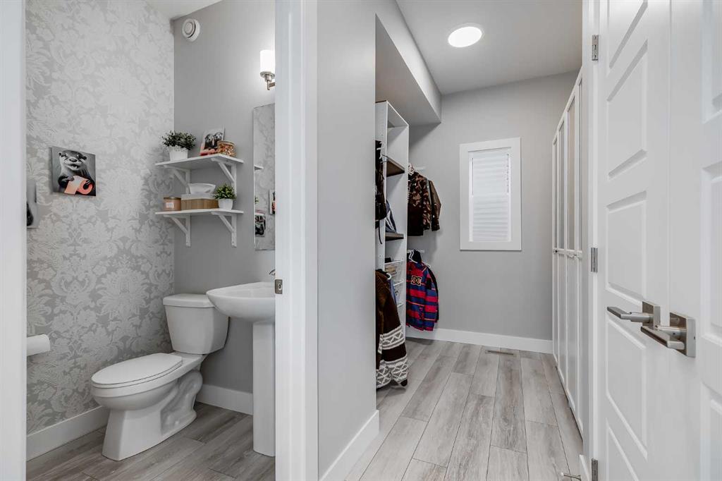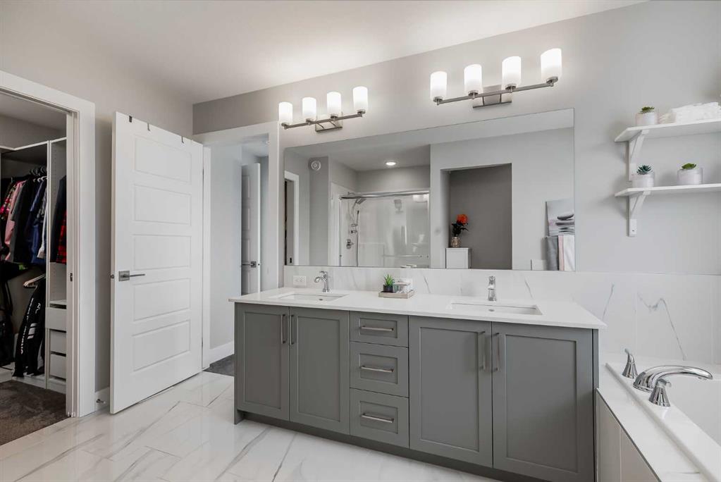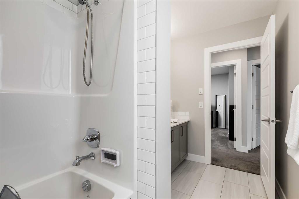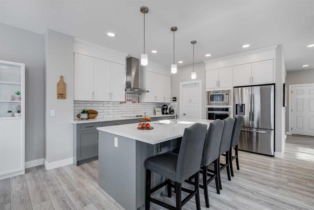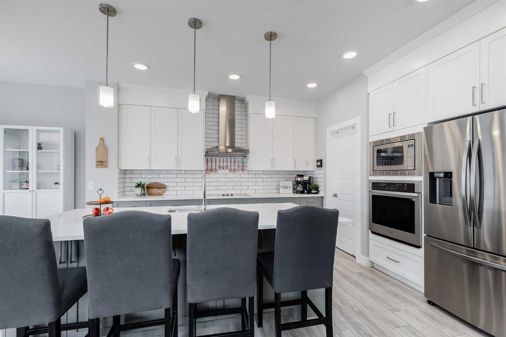 Nestled in the vibrant, family-friendly community of Chinook Gate, this home, built by Excel Homes in 2023, offers 2,375 sq ft of thoughtfully designed living space on a corner lot with a double attached garage. With serene pond views and scenic walking paths, it combines modern comfort with an exceptional location, just steps from parks, playgrounds, and all the amenities a growing family could want. Inside, a welcoming entryway with soaring 9’ ceilings sets the tone for the main floor, where luxury vinyl plank flooring and abundant natural light create an open, airy feel. A flexible front room offers a home office, sitting area, or formal dining space, adapting easily to your lifestyle. The heart of the home is the open-concept kitchen, dining, and living area. The kitchen impresses with crisp white upper cabinetry paired with grey lower cabinetry, quartz countertops, a stylish backsplash, stainless steel appliances, and a spacious island with seating. A walk-in pantry and plentiful counter and cupboard space ensure functionality meets style. The dining area accommodates family meals or entertaining, while the living space provides a comfortable place to unwind. Sliding doors open to the expansive west-facing deck, extending the living space outdoors. A powder room and mudroom complete the main level. Upstairs, plush carpeting adds comfort throughout, and the bonus room with vaulted ceiling provides a bright, versatile space for movie nights, play, or quiet relaxation. The primary retreat features a walk-in closet and a luxurious five-piece ensuite with dual sinks, a soaker tub, and an oversized shower with built-in seating. Three additional bedrooms, a four-piece bathroom, and a convenient upper-level laundry room make daily living effortless for a busy household. The unfinished basement offers a blank canvas for a future living area, home gym, or extra storage. The backyard is designed for enjoyment and entertaining. A large composite deck is perfect for barbecues, while the hot tub is a showstopper. Less than a year old, this 10–12 person “party tub” is among the largest available and doubles as a splash pool for kids during warmer months. Energy-efficient and costing less than $20 per month to operate, it’s an affordable, year-round addition for relaxation and gatherings. Additional backyard amenities include a trampoline and a gravel pad with RV parking, while a basketball hoop is positioned at the front driveway. The home also features air conditioning and a 220-volt outlet in the garage. Chinook Gate offers a lifestyle of ease and recreation. Quick access to 8 Street, Yankee Valley Blvd, and Hwy 2 makes commuting simple, while nearby schools, shopping, dining, and public transit keep daily life effortless. W. H. Croxford High School is close by, and Chinook Winds Regional Park is just steps away, featuring three playgrounds, a skate park, a spray park, multi-use courts, beach volleyball, ball diamonds, a toboggan hill, and outdoor skating in winter.