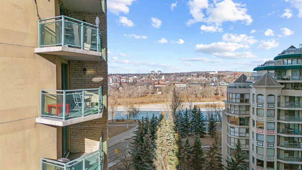Open House - Sunday March 8 - 11am to 3Pm - Experience the best of Calgary’s Downtown West End with this beautiful 9th floor apartment at Discovery Pointe, where an open concept layout flooded with natural light offers incredible views of the Bow River and the city skyline. The modern kitchen features expansive counter space and a functional breakfast bar that flows seamlessly into a spacious living area, perfect for entertaining. Step out onto your private balcony to immerse yourself in the stunning views, overlooking the Bow river, the lush greenery of Prince's Island Park, and the charming tree lined streets of Sunnyside, all framed by the distant peaks of the Rocky Mountains. This comfortable home includes a spacious primary bedroom with generous closet storage, large windows, dedicated in suite laundry, and energy efficient appliances. Residents enjoy some of the best amenities available downtown, including a fully equipped fitness centre, a social lounge with billiards, a large 4th floor rooftop terrace, and eco-friendly features like onsite EV charging. This prime locations offers peace of mind With 24/7 on site security and secure underground heated parking with bike storage. Live just steps away from the Bow River pathways and the LRT station located within the Downtown Free Fare Zone providing effortless access to the Core Shopping Centre, Kensingtons trendy boutiques, and Shaw Millennium Park. This is an incredible opportunity for professionals or investors looking for a premier residence in the heart of the city. Close to work, shopping, schools and the most beautiful nature found in Calgary.