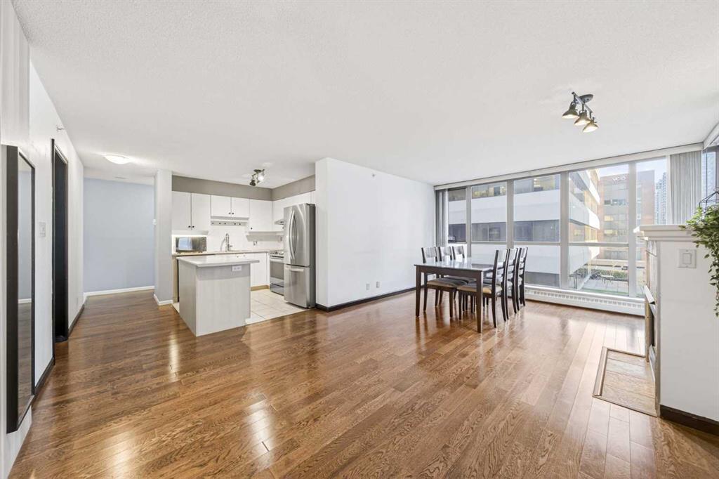 Nestled in the heart of Calgary's vibrant Downtown West End, this sought-after corner unit in the well-established Axxis building offers the perfect blend of comfort, convenience, and lifestyle. Featuring two generously sized bedrooms and two full bathrooms, this corner unit benefits from multiple exposures, enhancing the overall openness and layout of the home. The open-concept layout flows effortlessly from a well-appointed kitchen — featuring an island and ample counter space — into inviting dining and living areas, making it easy to relax or host with ease. In-suite laundry and a dedicated storage room keep daily life organized and clutter-free. For investors and commuters alike, the location truly speaks for itself. Steps from the LRT, this unit offers unbeatable transit access across the city, while the surrounding neighbourhood is rich with restaurants, boutique shops, and the scenic Bow River pathways right at your doorstep. Furry family members are welcome too — making this a home for the whole family. Whether you're looking for a place to truly call home or a smart addition to your portfolio, this is a downtown opportunity not to be missed. Book your private showing today!