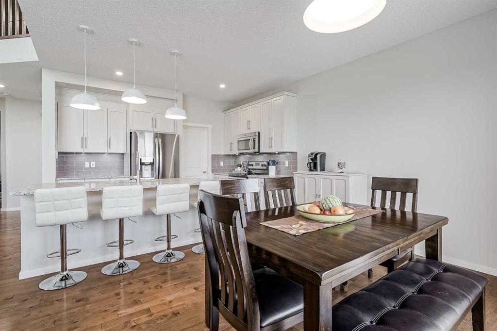 Imagine starting your mornings with coffee on a large WEST-FACING deck, overlooking a peaceful pond and lush greenspace. Welcome to 225 Kingsmere Cove — a home where everyday life feels just a little more special. Perfectly set in the friendly, family-focused community of King’s Heights, this 4-bedroom, 3.5-bathroom WALK-OUT home delivers the space, style, and setting your family deserves. Inside, 15-foot open-to-below ceilings flood the living room with natural light, making it a true gathering place. Rich HARDWOOD floors add warmth, while a MAIN FLOOR OFFICE provides a quiet spot for work or study. The kitchen is refreshed with ivory-white cabinetry, GRANITE countertops, and stainless-steel appliances, and includes a spacious walk-through pantry for effortless organization. The pantry connects directly to a large mudroom — the ideal drop zone to keep jackets, boots, and everyday clutter neatly out of sight. From the dining room, sliding doors open to your oversized west-facing deck — your private front-row seat to glowing sunsets over the pond, evening barbecues with friends, and quiet mornings with coffee in the fresh air. Upstairs, NEW VINYL PLANK flooring gives the entire level a fresh, modern feel. A versatile bonus room adapts to your lifestyle — whether it becomes a home theatre, playroom, reading lounge, or fitness space. Three bedrooms provide space for everyone, while the primary suite stands out as a private retreat. Overlooking the pond, it features a spa-inspired ensuite with a deep soaker tub, stand-up shower, and updated counters. A walk-in closet completes the suite, keeping everything neatly organized and within reach. The fully finished walk-out basement is a complete extension of your living space with bright windows and direct yard access. IN-FLOOR HEATING, a fourth bedroom, and a full bathroom make it perfect for guests, teens, or even a home gym. The yard is landscaped with premium turf for a lush look without the upkeep and highlighted by pear and cherry trees that add a touch of natural beauty each season. Add in a HEATED GARAGE and a NEW AIR CONDITIONING unit, and you’re set for comfort in every season. Here, every day feels a little easier — with sunsets over the pond, welcoming streets, and a home built for both comfort and connection.