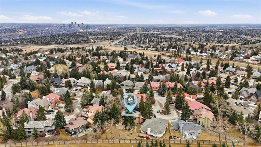Welcome to a rare offering tucked away on a quiet cul de sac in the sought after community of Coach Hill, set on a large private lot that feels like a true west side retreat. From the moment you arrive, this home delivers privacy, scale, and a timeless layout perfectly suited for family living and entertaining. Step inside this 6 bedroom home, with over 3,700 sq/ft of living space. You are immediately greeted by a grand foyer highlighted by a sweeping spiral staircase, with convenient access to the attached garage, basement, and main living level. The main floor features a spacious home office with oversized windows, custom built in shelving, and abundant natural light, alongside an expansive living room ideal for family gatherings and entertaining. The formal dining room easily hosts large celebrations and flows seamlessly into the custom kitchen, complete with granite countertops, high end stainless steel appliances, generous storage, and a breakfast bar. Just beyond, a cozy family room opens to the private backyard with patio and a wood burning outdoor fireplace, creating a warm and inviting outdoor living space. Upstairs, a dedicated family wing offers three generous bedrooms, ideal for children, while the third level provides exceptional flexibility with an additional bedroom with ensuite and a sun filled primary retreat featuring a luxurious ensuite bath. The fully finished basement expands the home further with a large recreation room, additional bedroom, and full bathroom, perfect for guests or teens. The property is complete with a heated double attached garage and large driveway, adding everyday convenience and strong curb appeal. Coach Hill is known for its mature trees, extensive pathways, and proximity to some of Calgary’s top schools including Webber Academy, Rundle College, and Ernest Manning High School, making it especially appealing for families. With quick access to downtown Calgary, major roadways, and an easy escape west to the mountains, this is an exceptional opportunity to own a refined family home in one of the city’s most established west side communities. Updates include 2 new furnaces, new hot water tank, two A/C units, reverse osmosis, and water softener.