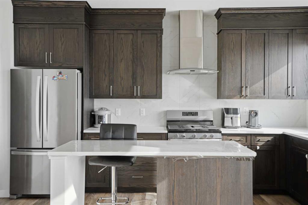 **LEGAL 1 Bedroom Basement Suite ** No Neighbours Behind | Backing onto Walking Path & Pond | Stunning Family Home | 2,006 SqFt + 725 SqFt Legal Basement Suite | Total of 4 Bedroom & 3.5 Bathrooms | Open Floor Plan | High Ceilings | Chef's Kitchen | Gas Stove | Built-in Stainless Steel Appliances | Quartz Countertops | Full Height Cabinets | Kitchen Island | Barstool Seating | Spice Kitchen | Electric Stove | Walk-in Pantry | Incredible Living Space | Large Windows | Great Natural Light | Electric Fireplace | Upper Level Family Room | Upper Level Laundry | 3 Upper Level Bedrooms | Primary 5pc Ensuite Bath | Separate Entry to Basement | Basement Laundry | Great Storage | Spacious Backyard | Deck | Unobstructed Access to Homestead Walking Path & Pond | Double Front Attached Garage | Great Parking | Incredible Location. Welcome home to 111 Homestead Close NE, a gorgeous 2-storey family home boasting 2,731 SqFt throughout the main, upper and basement levels including a legal 1 bedroom basement suite. This home is spacious with great living space on all levels. The front door opens to a foyer with closet storage. Walk down the hall to an open concept floor plan with high ceilings, large windows, wide plank flooring and great natural light- all which compliment the vast space of this home. The chef-inspired kitchen showcases quartz countertops, stainless steel appliances, full-height cabinetry, and a large island with bar seating, making it perfect for entertaining. Keep this space neat and tidy by utilizing your spice kitchen which has an electric stove, range hood, additional sink and great cabinet storage. This leads to your walk-in pantry just off the mudroom which adds convenient storage and easy access for unloading groceries. The dining area is positioned between the kitchen and living room with a door that lead to the rear deck, where you can enjoy the serene greenspace and walking path views. The living room is centred with an electric fireplace and TV ready wall. The main level is complete with a 2pc bath. Upstairs you’ll find a spacious bonus room ideal for a family lounge, home office, or media space. The upper level also includes three generously sized bedrooms, highlighted by a relaxing primary retreat with a walk-in closet and private ensuite featuring dual vanities, a deep soaking tub and a walk-in shower. Two additional bedrooms share a full bathroom, while the upper-level laundry room adds everyday convenience. Downstairs, the fully legal basement suite offers 725 SqFt of well-designed living space, complete with its own separate entrance and separate laundry. The basement features 1 bedroom, a 4pc bathroom, and an open-concept kitchen and recreation room, creating a comfortable and flexible living space ideal for rental income, extended family, or guests. Backing directly onto greenspace and walking paths with no neighbours behind, this exceptional home offers modern living, income potential, and an unbeatable location close to parks, future schools!