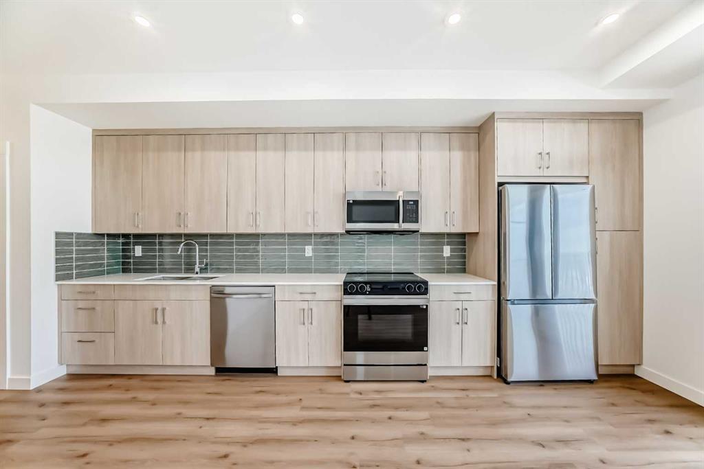 Logel Homes is proud to present The Carr 2 – featuring stylish cabinets, quartz countertops, and a beautifully upgraded kitchen complete with a designer backsplash, premium sink, and faucet. This home combines elegance and functionality. Enjoy stainless steel appliances, luxury vinyl plank flooring throughout, and elegant tile in the bathroom. The open-concept design, highlighted by 9 ft. ceilings and large windows, creates a bright, welcoming space filled with natural light. With central A/C included, you’ll stay comfortable year-round. Built by Logel Homes, this community is thoughtfully located along the ravine, offering a peaceful setting while still being just minutes from shopping, with quick access to Stoney Trail and Crowchild Trail for getting around the city. Plus, you’ll appreciate no HOA fees, a low condo fee of approximately $278/month, and flexible possession available in 30–45 days.