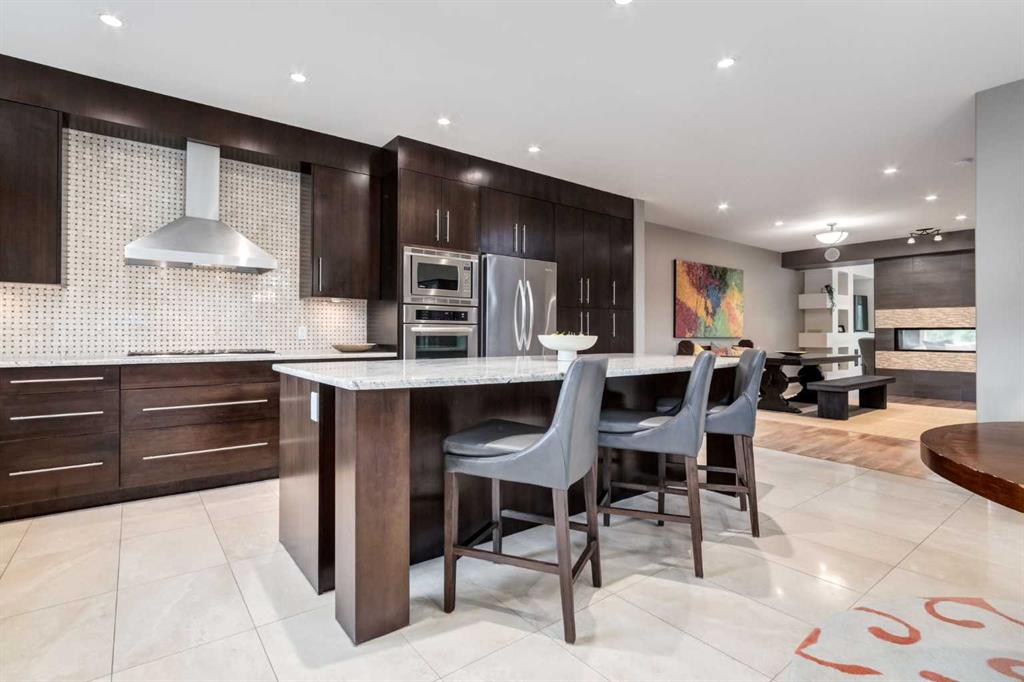 This custom built residence is one of the largest semi-detached homes in the area, offering over 3300 sq ft of developed, high end living space across the three beautifully finished levels. From the thoughtful design to luxurious finishes, every detail of this home is tailored for comfort, style and function. Perfectly situated just off 17th Avenue, enjoy quick access to boutique shopping, vibrant restaurants, public transit, schools, cycling routes and major road ways. Only minutes to Shaganappi Pointe CTrain station and a short walk to the Bow River pathways - ideal for biking, running and walking. Additionally Highway 1 is just around the corner - your fast track to the Rocky Mountains! The main floor features an open concept with 9' ceilings. Walnut hardwood and heated Travertine tile throughout, a dual sided fireplace connecting the Great Room and Nook as well as extensive built-ins, custom cabinetry and a stunning 9' kitchen island. Welcome to your chefs kitchen featuring high end stainless steel appliances including a 5 burner Thermador gas cook top, wine fridge and Bosch dishwasher. Upstairs you will be greeted by 2 Primary suites, with not one but TWO luxurious spa like ensuites complete with glass showers, soaker tubs, dual sinks, heated floors and granite counters. Expansive walk in closets, and a fireplace. The upper floor also is home to a spacious laundry room and a loft for your home office, complete with built ins and granite counters. The lower level will treat you to hydronic in floor heating under more Travertine tile, a custom espresso/wine bar, complete with more built ins, granite counters and another wine fridge. There is also a third bedroom, another full bath featuring a beautiful glass steam shower. This luxury home sits on an oversized lot, with an oversized heated garage complete with epoxy floors. Central A/C, water softener, vacu flo system, Hunter Douglas custom blinds, hardwired sound system, glass railings on the exterior entrances, fully landscaped and fenced yard. Please note, this home was also constructed with a concrete party wall! There are too many extras in this home to describe, it is a definite must see!! This property will not last long - Book your showing soon!!
