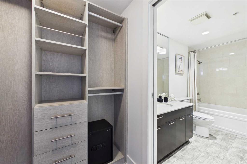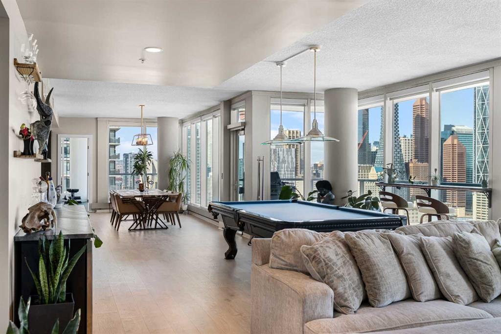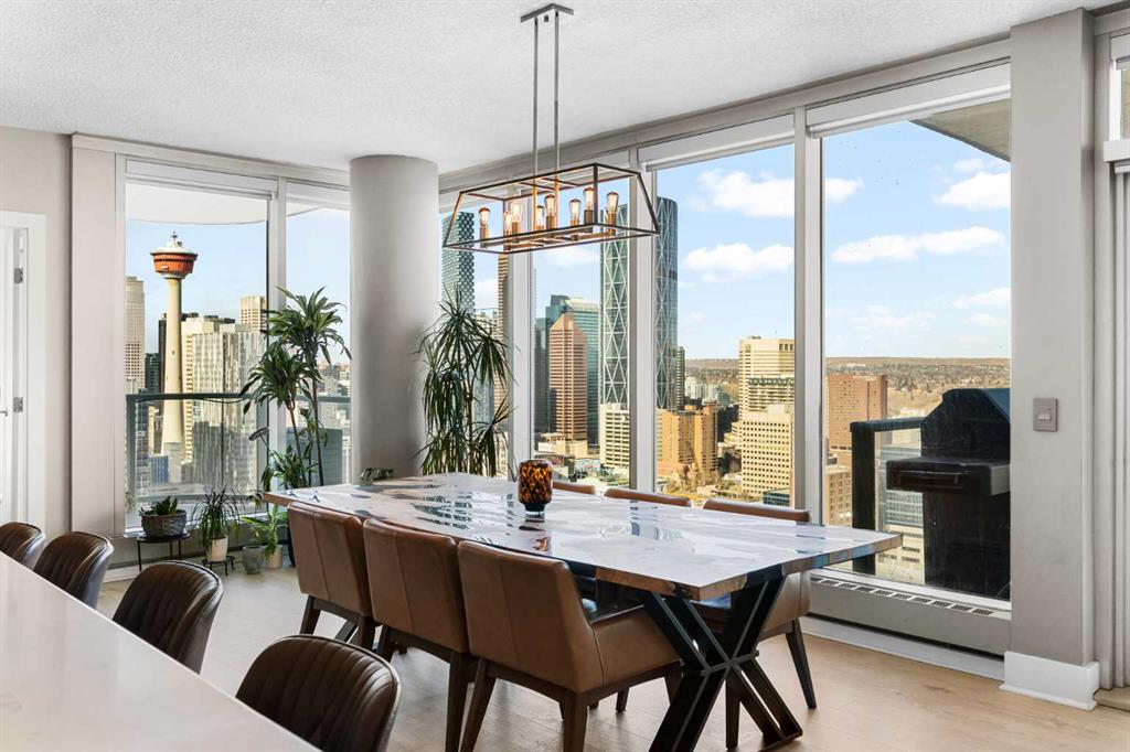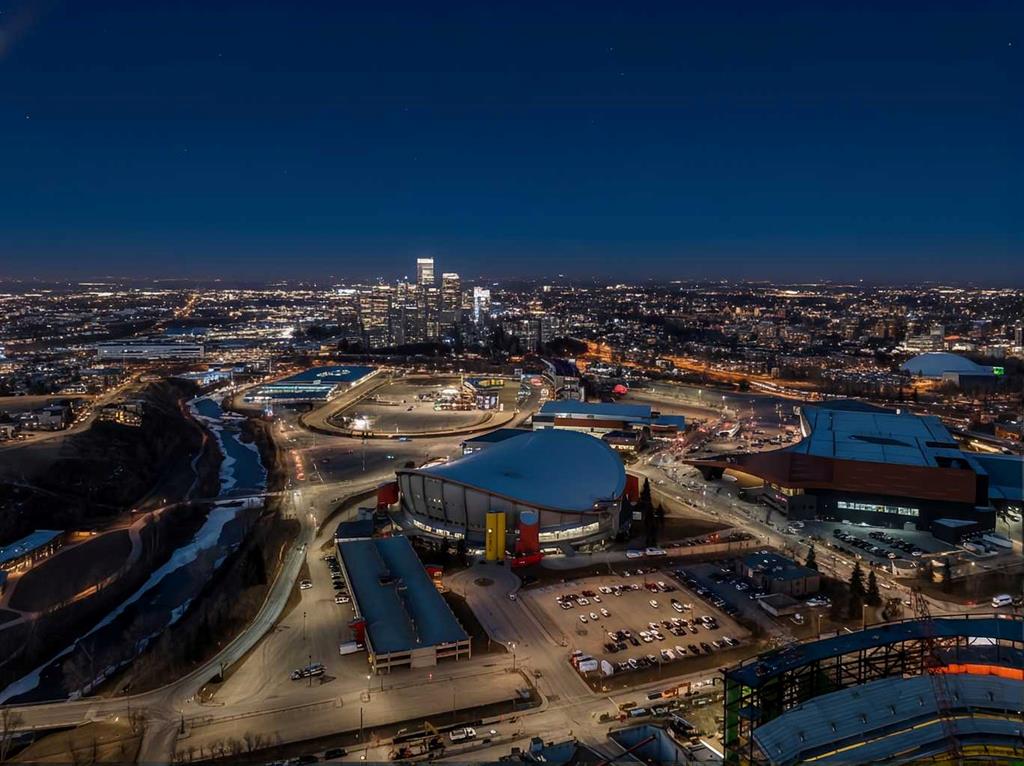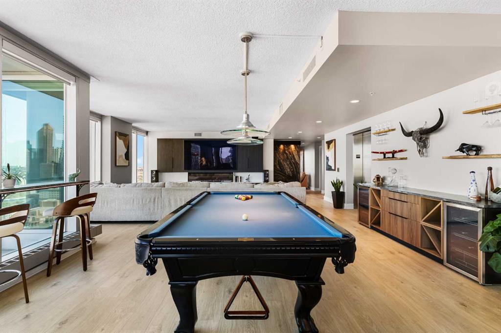 Your day begins with the soft glow of the morning sun spilling through floor-to-ceiling windows, offering panoramic views of downtown Calgary from every room. After a workout in your private home gym, you enjoy breakfast at the leathered granite counter perfectly positioned by the window to take in the city skyline. This 2,600+ sq ft sanctuary is a masterclass in executive hosting; as evening nears, the gentle trickle of the custom stone waterfall sets the mood while you select a vintage from your full-size, dual-zone wine fridge. Whether you are preparing drinks at the sophisticated leathered granite dry bar or a gourmet meal using the suite's high-end appliances, the space flows effortlessly for any occasion. The layout offers unmatched privacy with two spacious primary bedrooms, each featuring its own ensuite—including a lavish 5-piece spa retreat in the main suite. When you’re ready to head out, your private elevator opens directly into your suite, whisking you down to the vibrant pulse of the Beltline. You are perfectly positioned in the new Entertainment District, just steps from the new Calgary Flames arena, Stampede grounds, and river pathways. Living at the Arriva means effortless luxury, supported by 24-hour security and concierge services, a rooftop garden, owner’s lounge, guest suites, and central A/C—all complemented by modern updates including a new washer and ventless dryer.