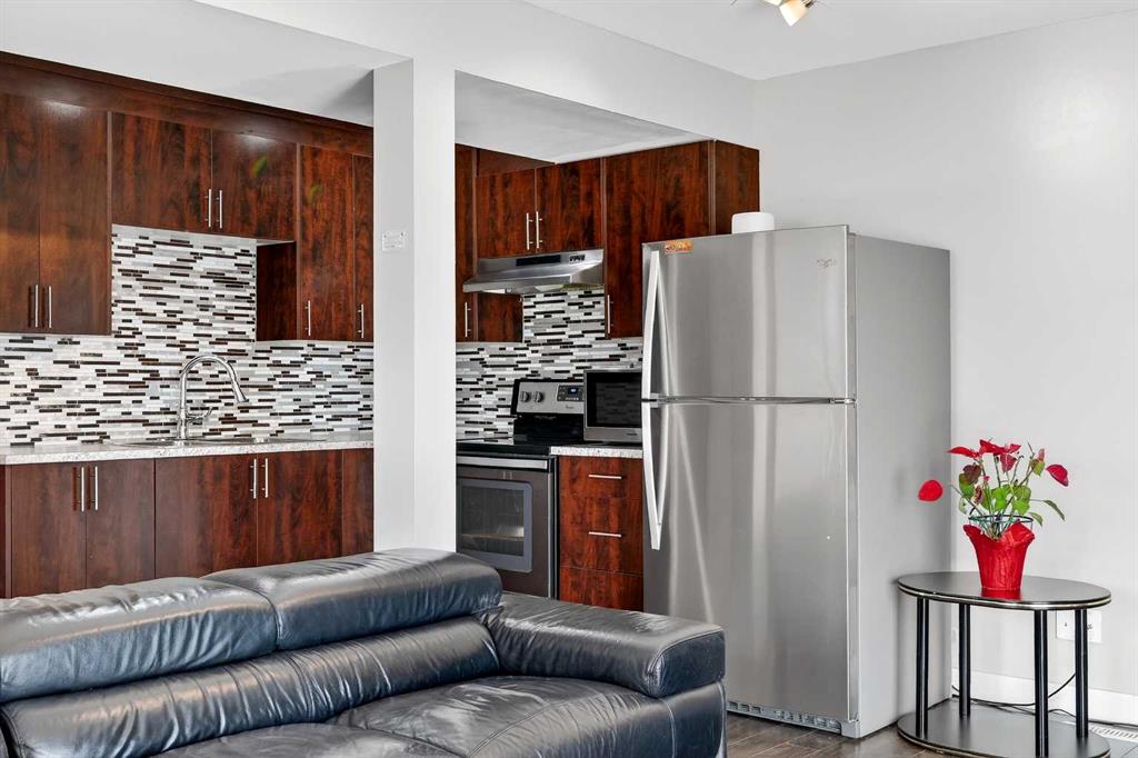 Welcome to the best value in Martindale. This well-maintained four-level split offers an inviting, thoughtfully designed layout with soaring vaulted ceilings and durable laminate flooring throughout the main level. The bright, open-concept living and dining areas create a seamless flow, perfect for both everyday living and entertaining. The modern kitchen is a standout, featuring stainless steel appliances, a stylish contemporary backsplash, and a spacious island that provides additional prep space and casual seating for guests. Upstairs, you’ll find three comfortable bedrooms and a beautifully updated full bathroom complete with a floor-to-ceiling tiled shower for a sleek, elevated finish. The fully developed walkout lower level offers exceptional flexibility with an illegal suite. This level includes a bright west-facing exposure with patio doors leading to the backyard, a cozy gas fireplace, two additional bedrooms, a full bathroom with a soaker tub and tile surround, and a modern kitchen. Conveniently located just minutes from shopping, restaurants, and the Calgary International Airport, with quick access to Stoney Trail and Deerfoot Trail. Call your favourite realtor today to schedule a showing.