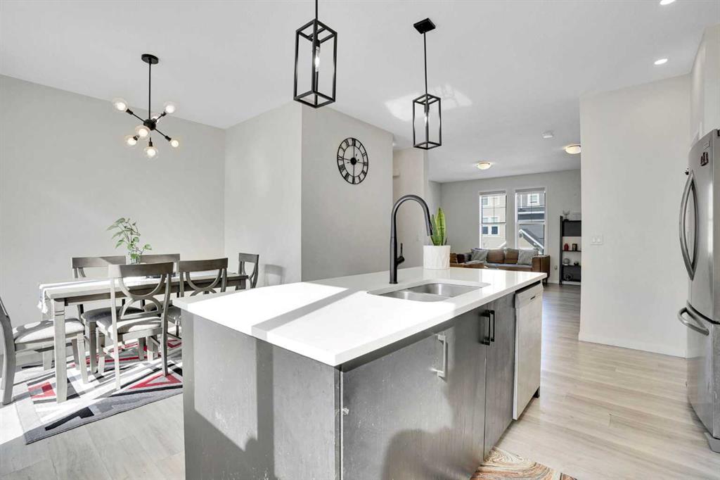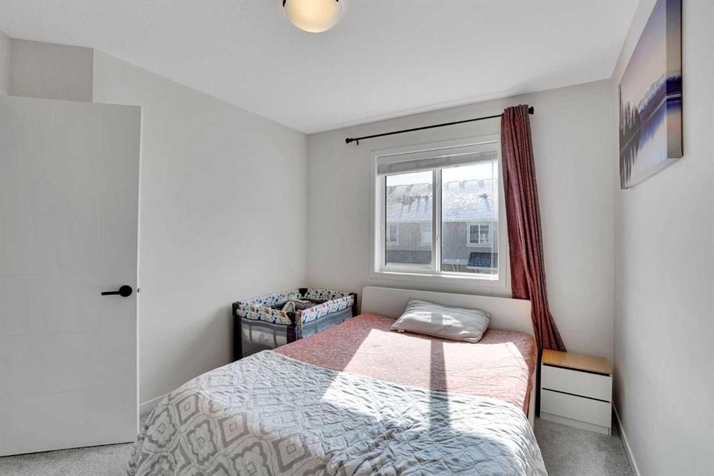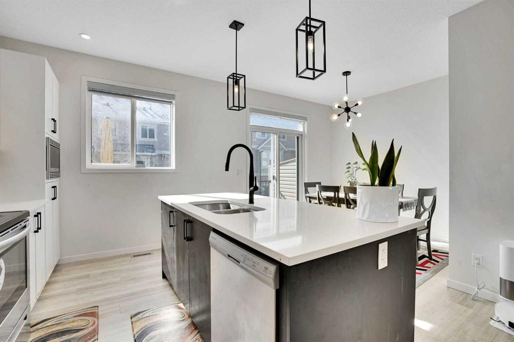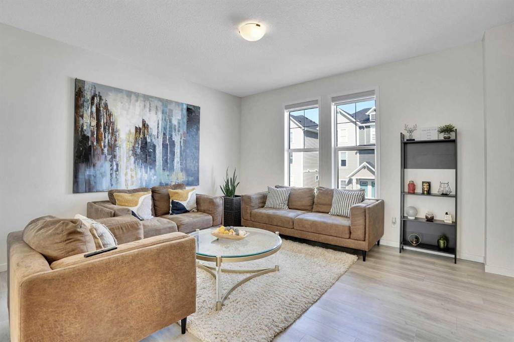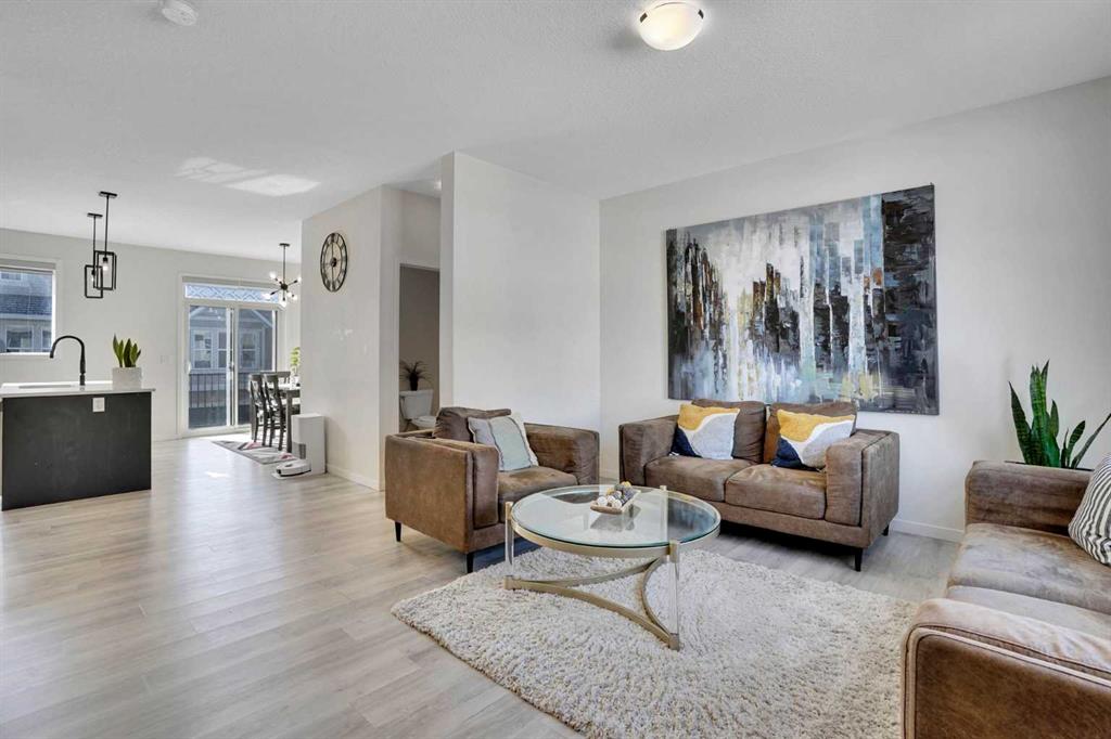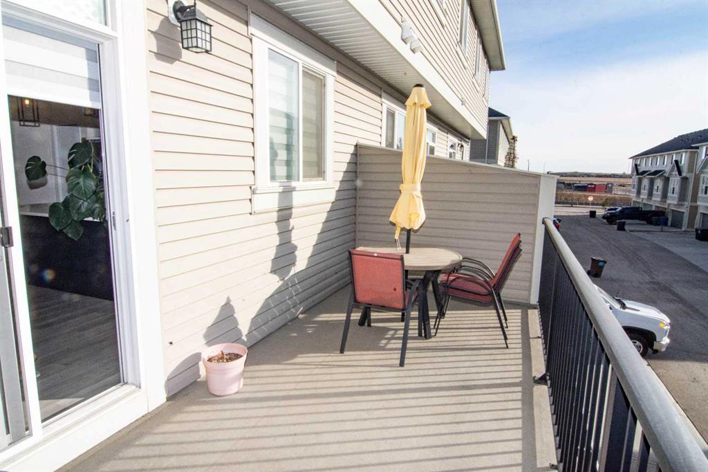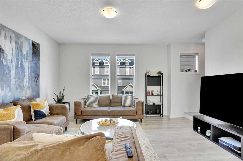 Welcome to this impeccably maintained townhouse in the highly sought-after SouthPoint Park community of SW Airdrie. Offering 3 bedrooms, 2.5 bathrooms, and a versatile lower-level flex space, this residence seamlessly blends modern style, thoughtful design, and everyday comfort. Step inside to a bright, open-concept layout designed for both functionality and elegance. The lower level features a spacious flex area—ideal for a home office, fitness studio, media room, or play space—providing flexibility to suit your lifestyle needs. The main level showcases beautiful vinyl plank flooring throughout and an effortless flow between living spaces. At the heart of the home is a stunning white kitchen accented with striking black finishes. Designed with both form and function in mind, it features a generous centre island, sleek stainless steel appliances, quartz countertops, and a dramatic full-height tile backsplash. Ample cabinetry and counter space make this kitchen perfect for everyday living and hosting gatherings alike. Across from the kitchen is a spacious dining area with direct access to a private balcony—an inviting extension of your living space. Adjacent, the comfortable and well-proportioned living room offers the perfect setting to relax or entertain. A convenient powder room completes this level. On the upper level, the primary suite provides a private retreat, complete with a 3-piece ensuite. Two additional well-sized bedrooms, a full bathroom, and the convenience of upper-level laundry complete the upper floor. The attached double garage offers both practicality and additional storage, while the spacious balcony creates an ideal outdoor escape for morning coffee or evening relaxation. Ideally located just steps from schools, playgrounds, and everyday amenities, this home presents an exceptional opportunity for families and modern buyers alike. With its strategic location, thoughtful layout, and outstanding value, this turnkey residence delivers comfort, convenience, and lifestyle in one exceptional package. Don’t miss your chance to make this property your own — schedule a private showing or connect for early access today!???
