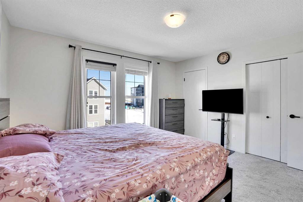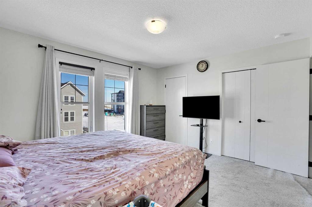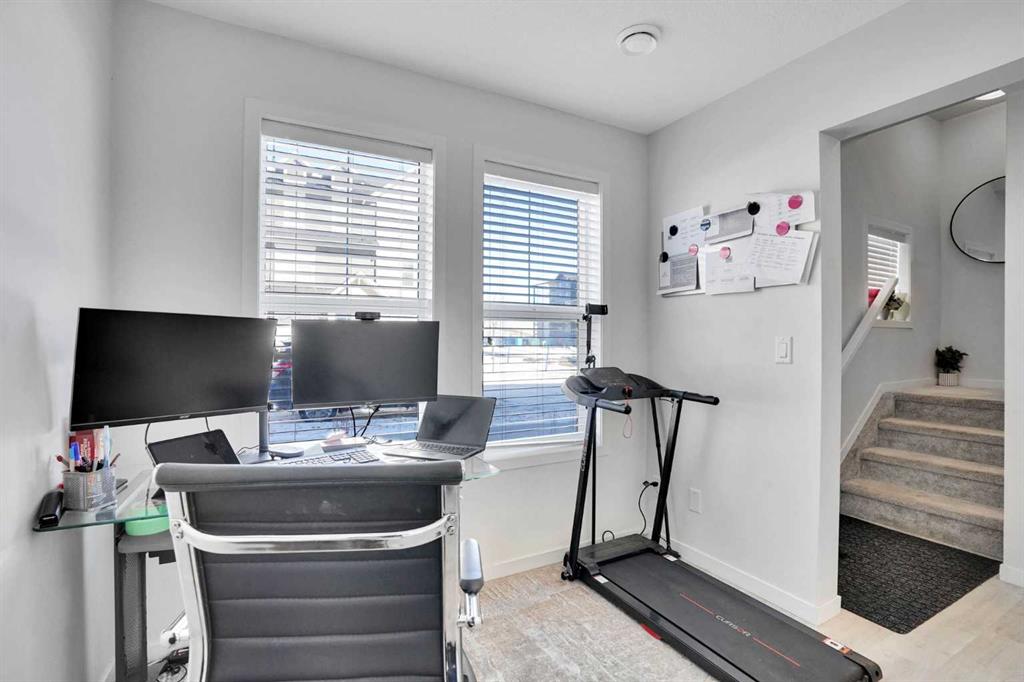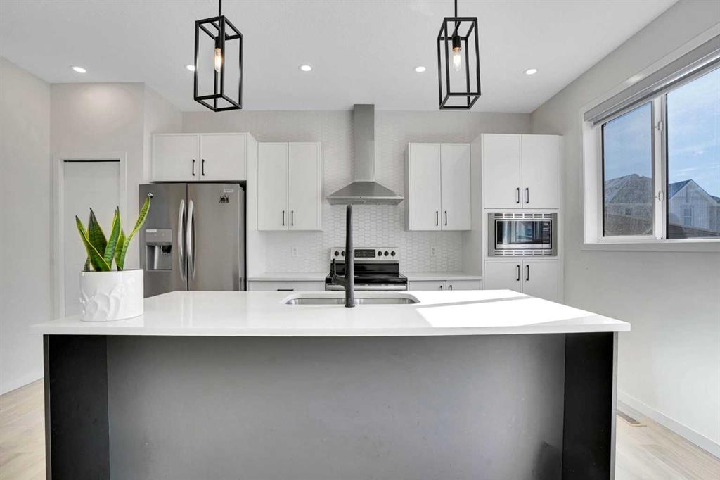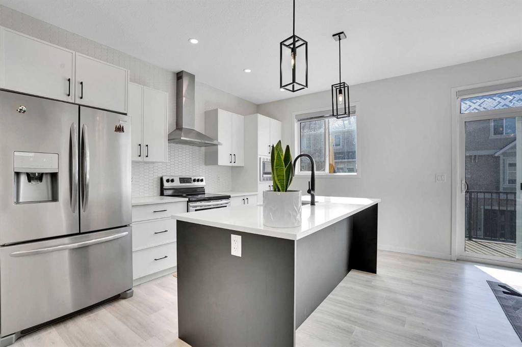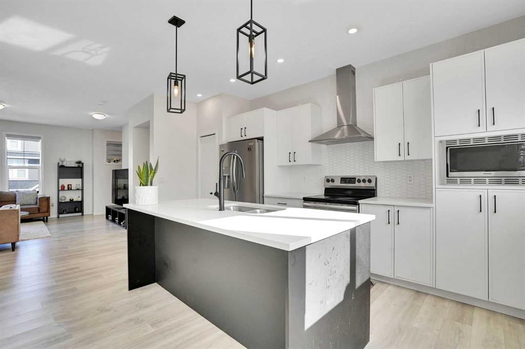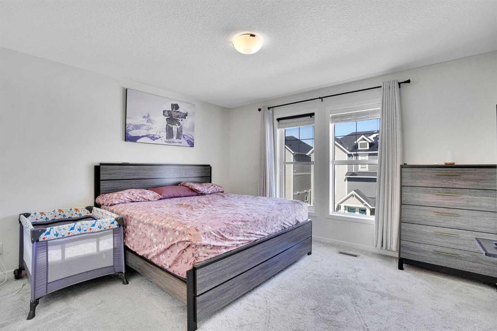 Welcome to this impeccably maintained townhouse in the highly sought-after SouthPoint Park community of SW Airdrie. Offering 3 bedrooms, 2.5 bathrooms, and a versatile lower-level flex space, this residence seamlessly blends modern style, thoughtful design, and everyday comfort. Step inside to a bright, open-concept layout designed for both functionality and elegance. The lower level features a spacious flex area—ideal for a home office, fitness studio, media room, or play space—providing flexibility to suit your lifestyle needs. The main level showcases beautiful vinyl plank flooring throughout and an effortless flow between living spaces. At the heart of the home is a stunning white kitchen accented with striking black finishes. Designed with both form and function in mind, it features a generous centre island, sleek stainless steel appliances, quartz countertops, and a dramatic full-height tile backsplash. Ample cabinetry and counter space make this kitchen perfect for everyday living and hosting gatherings alike. Across from the kitchen is a spacious dining area with direct access to a private balcony—an inviting extension of your living space. Adjacent, the comfortable and well-proportioned living room offers the perfect setting to relax or entertain. A convenient powder room completes this level. On the upper level, the primary suite provides a private retreat, complete with a 3-piece ensuite. Two additional well-sized bedrooms, a full bathroom, and the convenience of upper-level laundry complete the upper floor. The attached double garage offers both practicality and additional storage, while the spacious balcony creates an ideal outdoor escape for morning coffee or evening relaxation. Ideally located just steps from schools, playgrounds, and everyday amenities, this home presents an exceptional opportunity for families and modern buyers alike. With its strategic location, thoughtful layout, and outstanding value, this turnkey residence delivers comfort, convenience, and lifestyle in one exceptional package. Don’t miss your chance to make this property your own — schedule a private showing or connect for early access today!???
