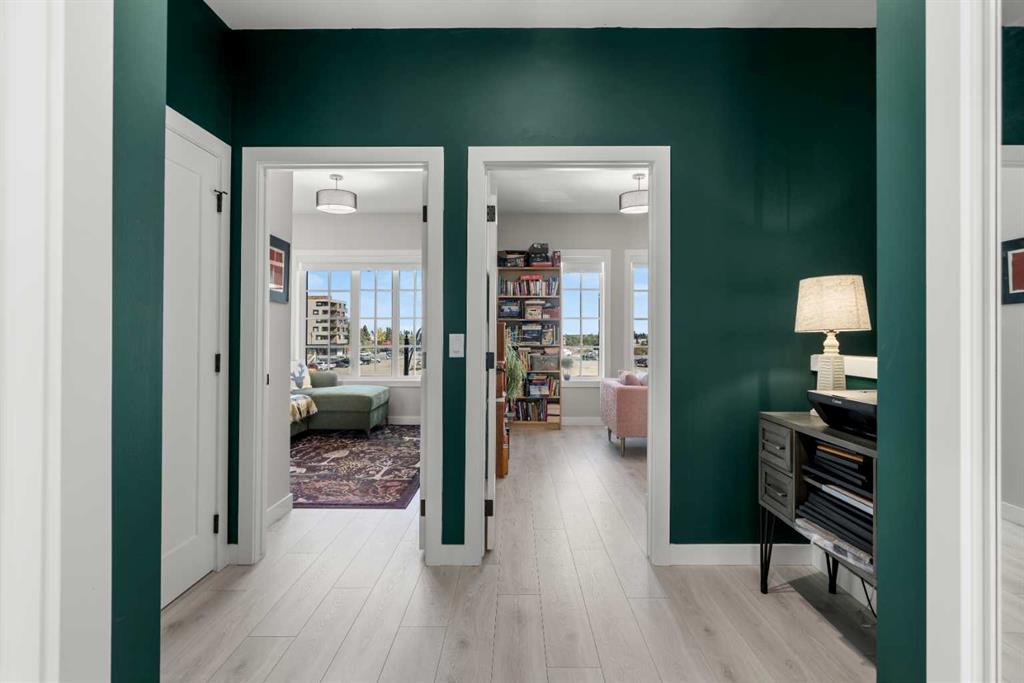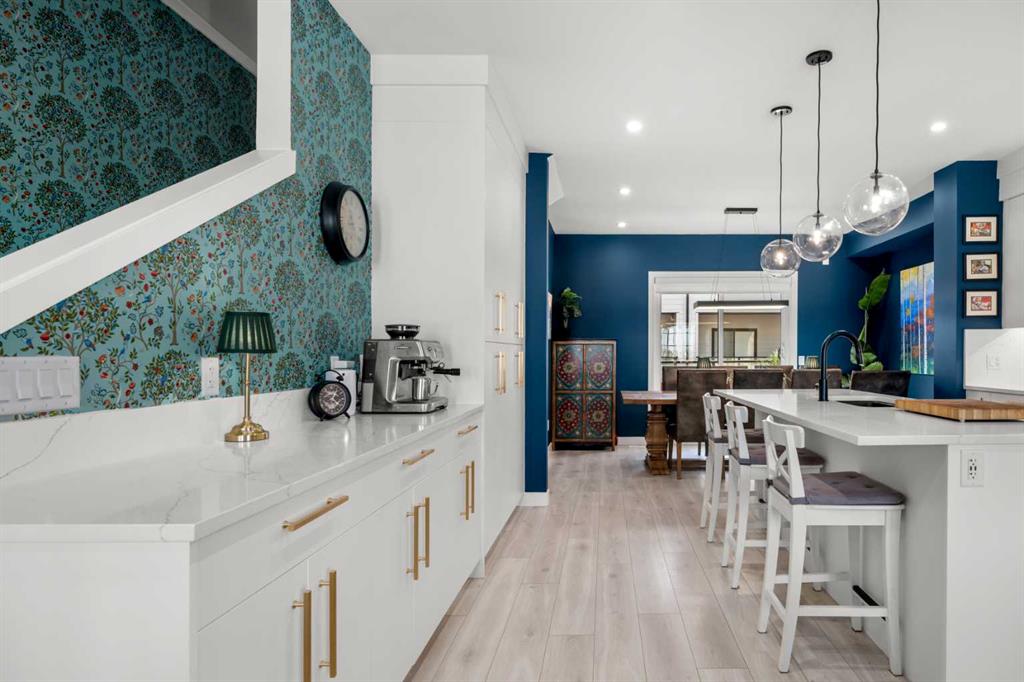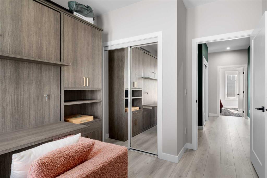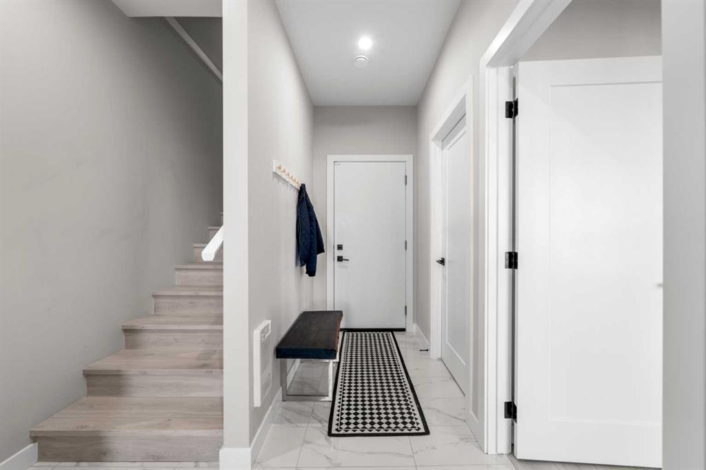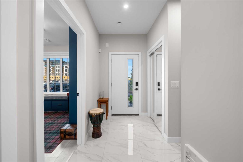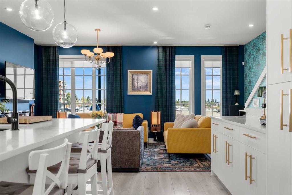** Open House: Saturday, March 21st 12-2pm ** Welcome to 8161 8 Avenue SW in the community of West Springs. This 4 bedroom, 3 bathroom townhome is tastefully designed with modern finishes, functional upgrades, and a layout that balances style and comfort. Step inside to discover 9 ft ceilings, wide plank laminate flooring, and integrated LED lighting throughout. The chef’s kitchen is equipped with quartz countertops, a paneled fridge, gas range stove, and soft-close cabinetry with smart storage solutions. The living area features a 50-inch electric fireplace and opens onto a private balcony, creating the perfect space for both entertaining and relaxing. Custom details enhance the home, including a Murphy bed, custom drapes, premium Delta plumbing fixtures, and an A/C unit for year-round comfort. Environmentally friendly touches include WaterSense-certified fixtures and toilets. Over $50,000 has been invested in California Closets, bringing exceptional storage and organization to every corner of the home. With its large hallways and thoughtfully planned design, this home feels bright, open, and inviting. The location adds to its appeal—with views of the new park in west district, schools are just 5 minutes away, trendy coffee shops and cafes only 2 minutes from your door, and parks and walking paths are just steps away.