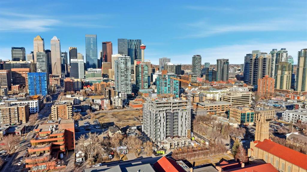 Built by Homes by Avi, this beautifully designed 2 bedroom, 1 bath Gage floorplan offers modern living in the heart of Calgary’s vibrant Culture and Entertainment District. Steps from the Calgary Stampede, BMO Centre, Scotiabank Saddledome, and the restaurants and nightlife of 17th Avenue, this location delivers exceptional walkability and urban convenience. Nestled within the sought after community of Mission, you’re also moments from boutique shops, acclaimed dining such as Mercato and Añejo, and the world class MNP Community & Sport Centre. Inside, the unit features premium finishes and thoughtful design throughout. The spacious living room has access to a large north facing balcony allowing gorgeous views of the city skyline. A large kitchen with grey quartz countertops and island/eating bar is complemented by sleek white cabinetry, chrome faucets and hardware, and full size stainless steel appliances. Floor to ceiling windows and durable luxury vinyl plank flooring create a bright, contemporary atmosphere. The primary bedroom includes a walk in closet, while the spacious secondary suite with walk-in closet offers excellent flexibility for guests, roommates, or a home office. A discreet in suite laundry room and included roller shade window coverings add everyday convenience. Concrete construction provides lasting durability, while central air conditioning ensures year round comfort. Additional highlights include titled underground heated parking and an assigned storage locker. From this location, you’ll love being able to walk to everything — from Mission’s cafés and shops to the energy of 17th Avenue. Enjoy the Bow River Pathway just minutes away or spend the day exploring the CORE Shopping Centre with more than 120 retailers, including Holt Renfrew. Whether training at the MNP Community & Sport Centre or meeting friends at local favourites like Ship & Anchor or Model Milk, this is urban living at its finest.