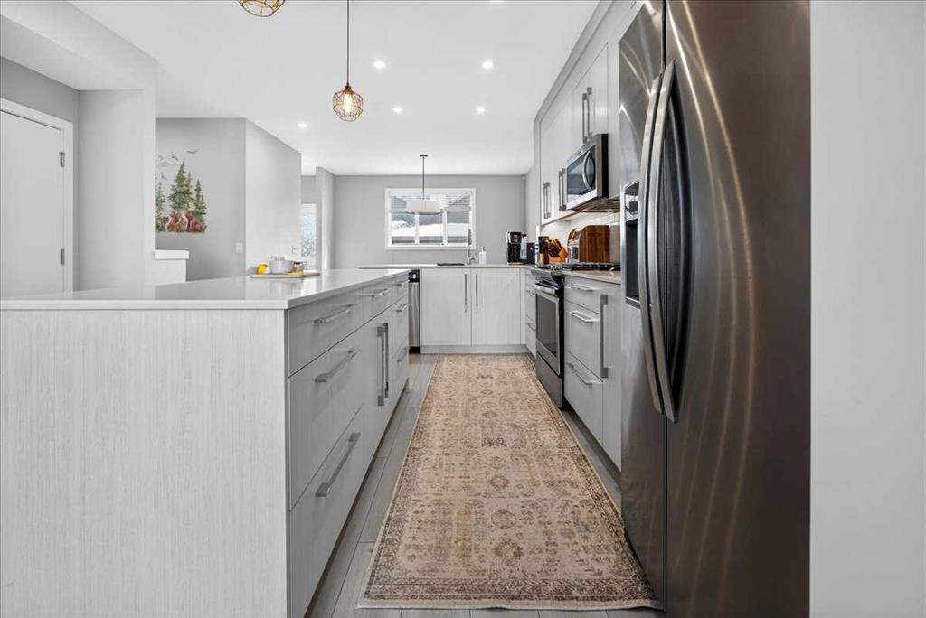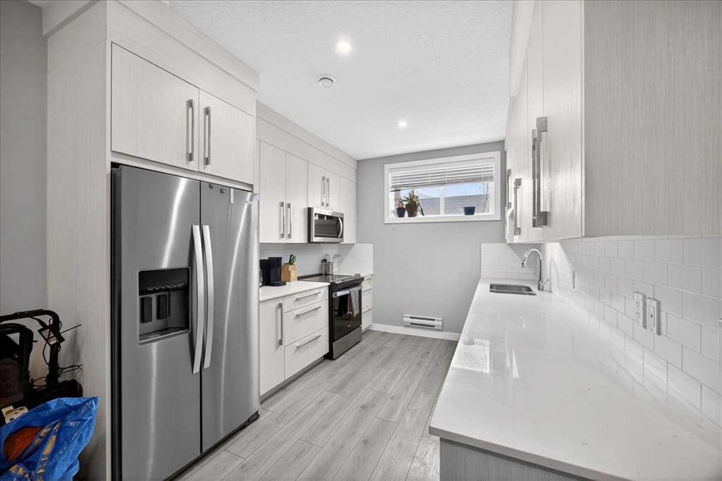 Welcome to this stunning Dove II Duplex Floor Plan by Truman Homes! This beautifully designed 2-storey side-by-side| 1,788.61 sq ft of thoughtfully planned living space| Complete with a legal basement suite| 4 bedrooms| 3 full baths/1 half bath| 9 ft ceilings| Double detached garage| Paved back lane| This home blends style, function, and flexibility. An incredible layout for investors and homeowners alike — live comfortably on the upper two levels while generating rental income from the legal suite or create the perfect multi-generational setup with space for extended family. The possibilities are endless. Inside, you’ll find luxury vinyl flooring throughout most of the home, floor-to-ceiling cabinetry, quartz countertops, and soft-close doors and drawers, all combining elegance with everyday practicality. Aluminum-clad, low-maintenance dual-pane windows enhance efficiency and durability. Comfort is top of mind with a high-efficiency gas furnace, General Aire drip humidifier, and heat recovery ventilator. Enjoy outdoor living with two gas barbecue lines — one on the upper deck and one conveniently located for the lower suite occupant. Bright, beautiful, and exceptionally functional on every level, this home truly stands out. The legal suite is one of the most spacious and well-designed layouts available, offering both comfort and privacy. The utility room is separately positioned and shared between tenants for easy access. The double detached garage also features added storage with built-in shelving along one side. A rare opportunity that perfectly balances modern design, income potential, and everyday livability!