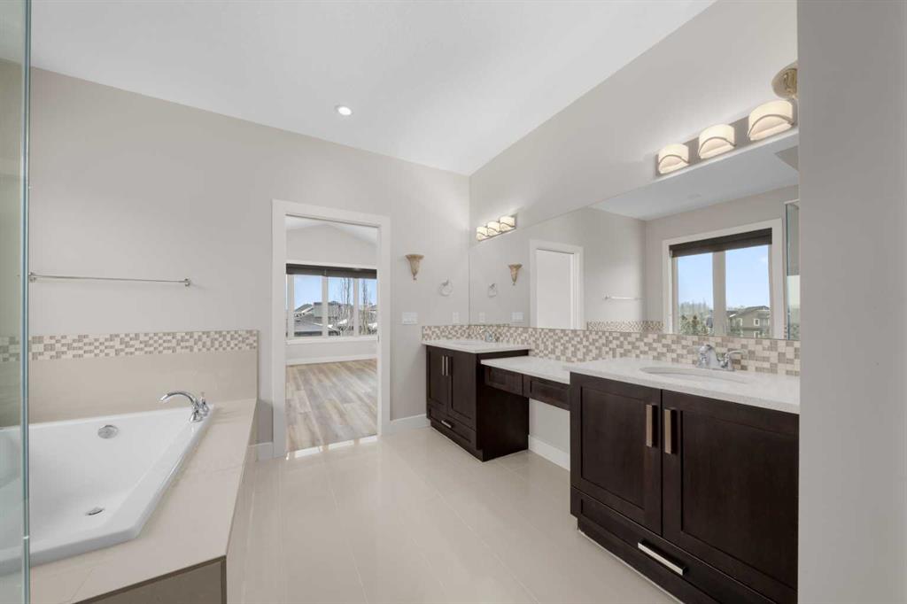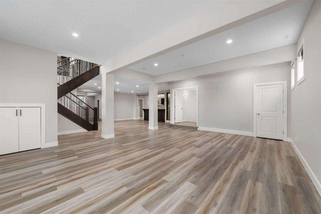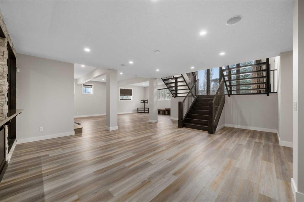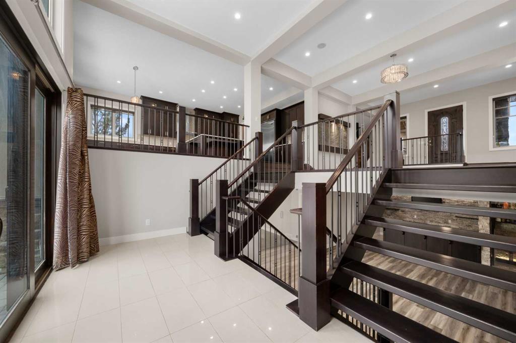 Welcome to this extraordinary, planned home in the tranquil Estate community of Watermark at Bearspaw. This wonderful home sits on a .30-acre lot with Mountain views of the back. The grand residence offers over 6,800 sq. ft. of living space with 5 bedrooms, 4.5 bathrooms, extra-large great room and a dining room, huge den with its own storage room, glass wall gym, fully developed Theatre room, and a spacious storage room. Designed to be unique and a very open plan, inviting to large gatherings as you enter the Grand Hall with sunken floors and a fountain to let you feel the bliss as you enter. Featuring 10-foot ceilings and more open to below areas. With lots of natural lights throughout the house you will feel the warmth and openness together. The double staircase leading to the fully landscaped backyard is a touch of marvel design with grandness in mind leading to the very large open plan basement with extra-large windows for a basement. The kitchen showcases premium appliances with Viking Professional series oversized fridge and freezer, a gas cooktop, quartz countertops, a large island with and a fully equipped spice kitchen/butler’s pantry. Upstairs you will walk into the large Bonus room, with a walkout balcony facing the mountains where you can enjoy your evening sunsets. The master bedroom and 3 additional bedrooms fully compliment the private spaces for the family members. The basement includes a full surround sound system projector home theatre system, which is staying with the house so is ready to use right away. The wine room and wet bar along with the special lighting make this part of the house an amazing place to host and make memories. The basement also includes a large bedroom and full bathroom for any guests along with a full-size gym with a glass wall, door, and a wall sized mirror. The Outdoor living includes a fully landscaped backyard with a special area for a fire table with a gas line already roughed in. For those beautiful nights, there is the rough ins and pergola built for the ideal hot tub. Other features include RO Water / hot and cold, Full water softener system. Extra dishwasher in basement, heated tiles in the grand hall, in floor heating in the basement and garage. This is a Home that provides all the comfort of a home for a family and a great place to host and entertain friends.
