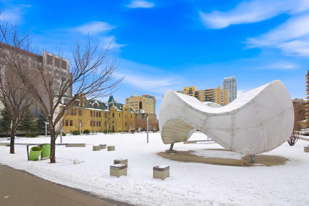 ARE YOU LOOKING FOR SPACE??? This Corner Unit provides Large Rooms, Lots of Space and tons of natural LIGHT and a wrap around South facing balcony! Set quietly just off the energy of 17th Avenue, this exceptional corner residence at The Royal Oak offers something rarely found in the Beltline With 1,567 sq ft of living space, the rooms are generously proportioned, and lots of windows provide the home with lots of natural light. The large south-facing balcony is a standout feature — private, sun-filled, and substantial enough for real outdoor living. Morning coffee, evening wine, or simply relaxing in the sun — this is outdoor space you will actually use. The layout is thoughtful and functional. The kitchen has been tastefully updated with clean, modern finishes and opens seamlessly into the expansive living and dining areas — ideal for entertaining or quiet evenings at home. The 300 sq ft primary suite is a large impressive room, offering private retreat space, a walk-in closet, and a sleek ensuite with walk-in shower. The second bedroom and full bath provide flexibility for guests, a dedicated office, or both — without feeling tight or compromised. Central air conditioning ensures year-round comfort — a feature not always found in condo living — while the oversized in-suite laundry room offers exceptional storage and practicality that truly sets this home apart. The Royal Oak is a well-managed, primarily owner-occupied building with a reputation for long-term desirability and pride of ownership. Amenities include bike storage, a social room, guest suite, and fitness room. All of this just steps from Calgary’s best restaurants, cafés, boutiques, parks, bike paths, and C-Train — yet tucked away on a quiet, tree-lined street. This is not typical Beltline condo living.