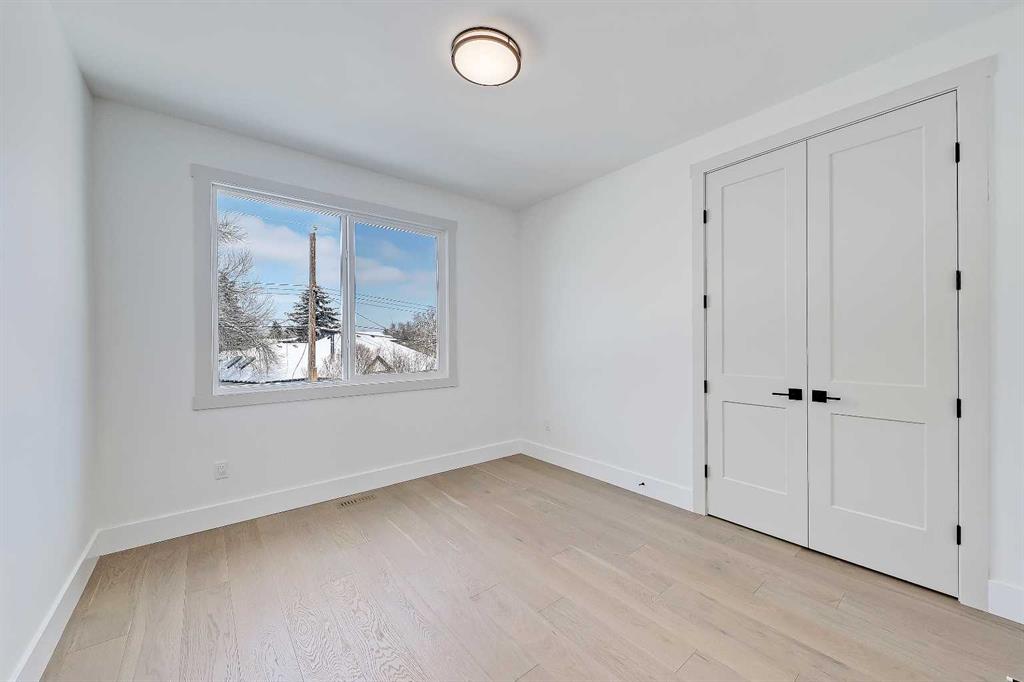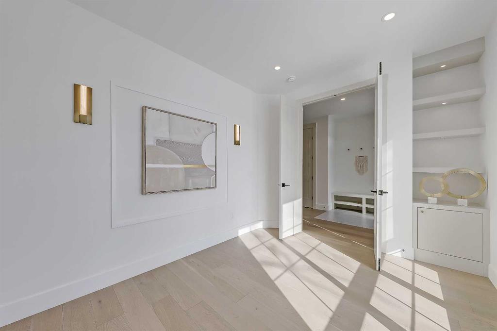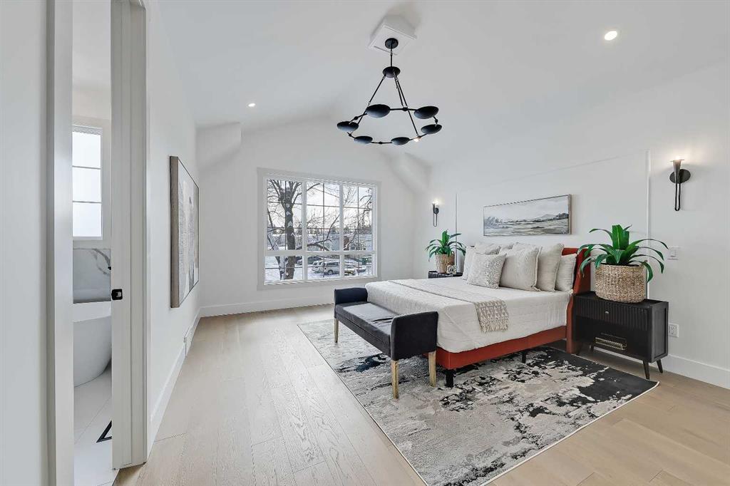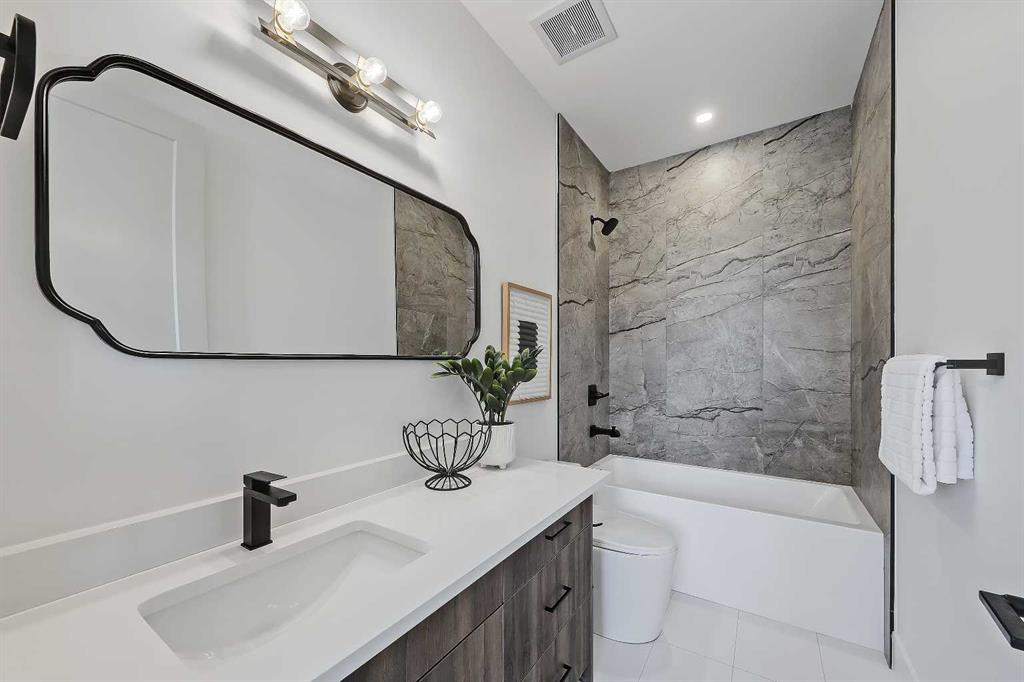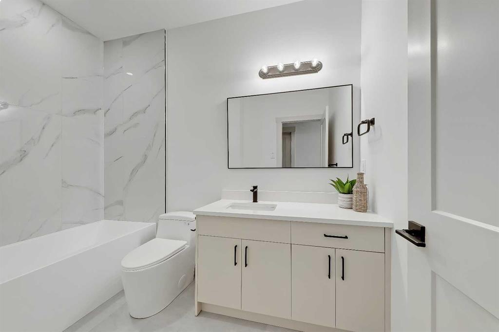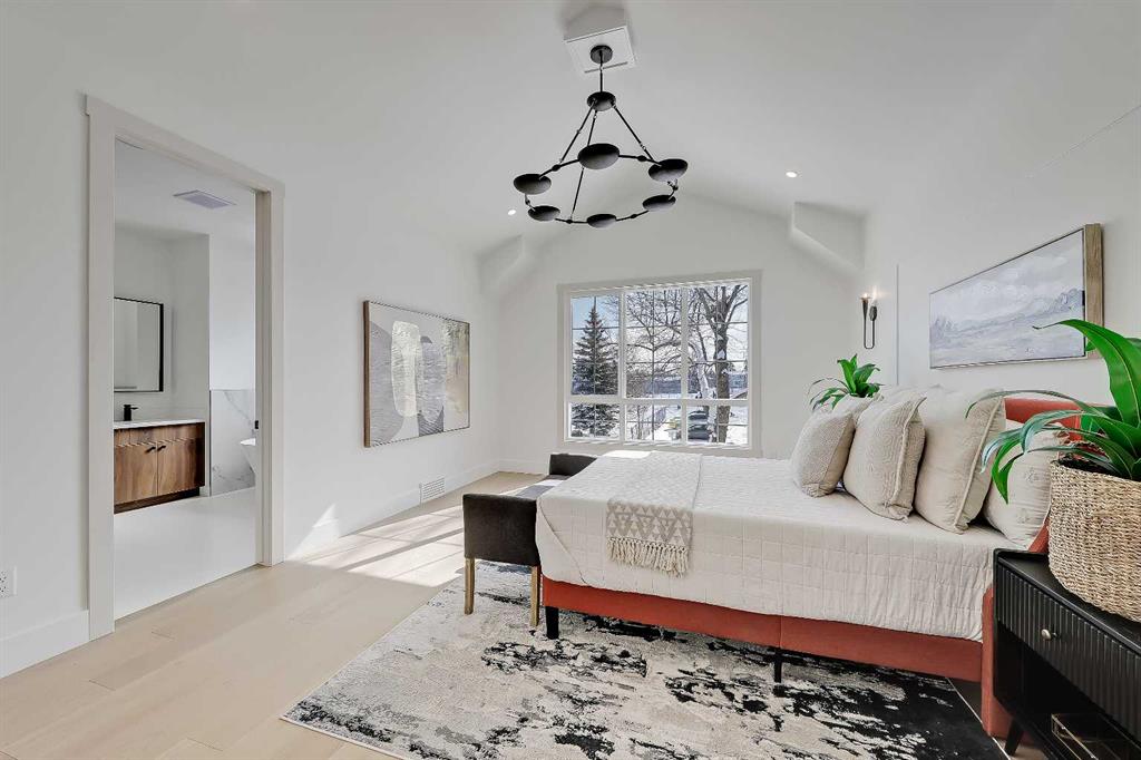 This beautifully designed semi-detached Valencia Residential home blends modern design with thoughtful functionality across three levels. From the moment you walk in, the clean lines, wide plank hardwood flooring, and designer lighting create a bright and welcoming atmosphere that carries throughout the entire home. Found in the desirable KILLARNEY, your close to parks, schools, playgrounds, and everyday amenities. The light-filled foyer opens to a versatile office space with tasteful lighting selections, perfect for working from home or creating a quiet reading area. As you move inside, the layout is bright and open, complete with curated finishes and beautiful lighting selections. The kitchen includes a large island which offers plenty of room for gathering. Quartz countertops, full height cabinetry, designer backsplash, and sleek gold hardware bring a refined look. High-end appliances and smart storage make the kitchen as practical as it is stylish. Large rear windows fill the space with light connecting the indoors to the outdoors. The dining area and living room have lovely architectural wall details as seen throughout the home. The living room also includes a gas fireplace, adding comfort to the space along with sleek tiles. At the back of the home, you will find the mudroom with bench seating and more stunning wall details. A conveniently placed power room with designer lighting finishes off this level. Upstairs, the homes bright and airy pallet carries through. At the top of the stairs, a cozy loft space can be turned into a workspace or additional living area. This floor includes three well sized bedrooms all with plenty of natural light, as well as a beautifully finished main bathroom. The primary suite is well-equipped and full of charm, with a walk-in closet and a spa inspired ensuite featuring a freestanding tub, tiled shower, and elegant selections throughout. You will also find a spacious laundry room right where it should be. The fully finished basement adds so much to the home. A large family room is designed as an entertainment hub with a built-in media wall & screen creating the perfect setting for movie or game nights. A stylish wet bar with wine display makes hosting easy. This level also includes two more bedrooms & a full bathroom, making it ideal for guests or growing families. Outside, the property includes a detached double garage and outdoor space ready for summer gatherings. Located in a desirable SW Calgary KILLARNY, nearby popular shopping & dining areas like MARDA LOOP are just minutes away, offering boutique shops, cafés, and restaurants. Families will appreciate being close to excellent local schools including RICHMOND SCHOOL and ALEXANDER FERGUSON SCHOOL, both offering strong programs and convenient access for daily routines. With quick access to major routes, downtown commuting is easy while still enjoying the charm of a quiet residential community. This is modern inner-city living designed for comfort, style, and convenience.