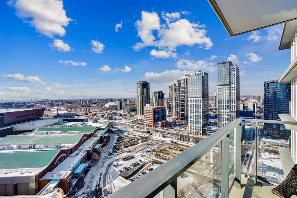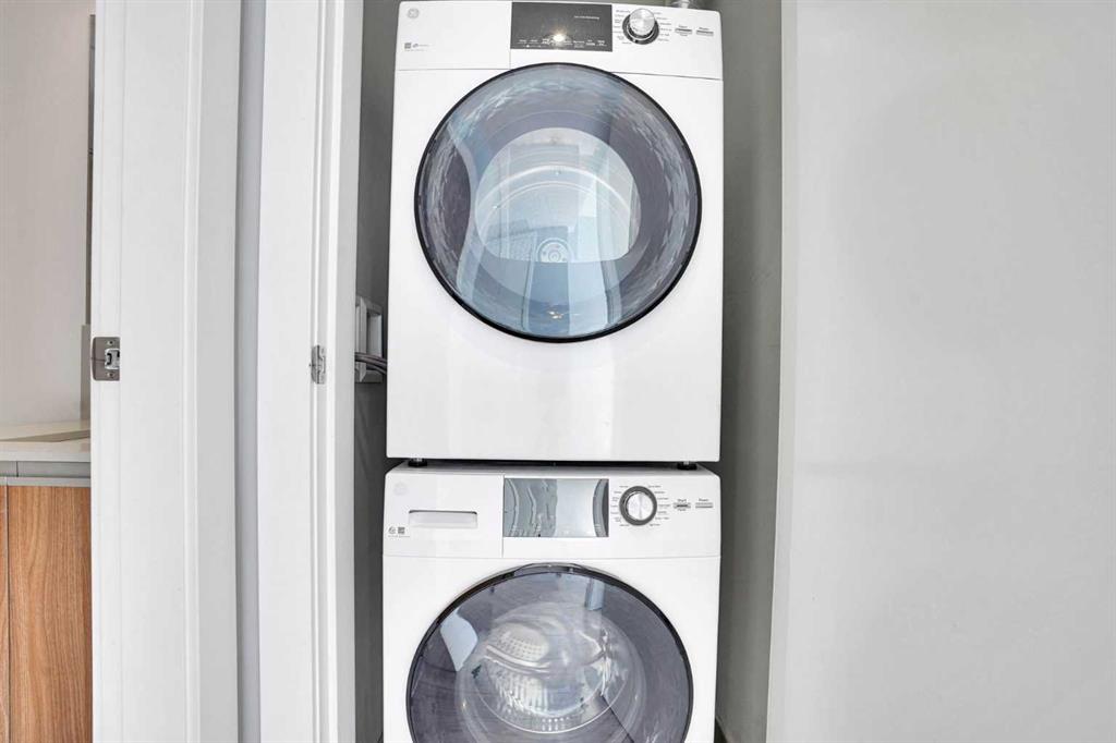 SOUTH-FACING | MOUNTAIN VIEW | TITLED PARKING | 20TH FLOOR Welcome to Unit 2010 at The Guardian — a stylish 20TH FLOOR residence offering breathtaking SOUTH-FACING views of the ROCKY MOUNTAINS and Calgary’s SKYLINE. This thoughtfully designed one-bedroom, one-bathroom home offers 502 sq.ft. of efficient, open-concept living space. FLOOR-TO-CEILING windows fill the interior with natural light throughout the day, while the private south-facing balcony provides the perfect place to enjoy sunshine and mountain views on clear days. The modern kitchen features quartz countertops, sleek cabinetry, and contemporary finishes, flowing seamlessly into the bright living area. The unit has been FRESHLY PAINTED throughout and includes a brand new WASHER AND DRYER (2025), offering true move-in-ready convenience. Additional highlights include one TITLED underground parking stall (#271 on Level 6) and one assigned storage locker — a valuable combination in downtown high-rise living. Residents enjoy access to premium amenities including a fully equipped fitness centre, social lounge, workshop, and professional management. Ideally located in the heart of the BELTLINE, just steps to Stampede Park, LRT access, restaurants, and everyday conveniences, this home is perfect for first-time buyers, professionals, or investors seeking strong rental potential. *Check out the 3D Tour*