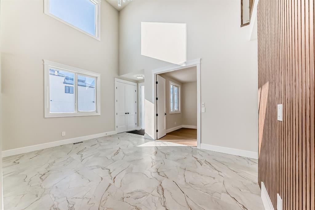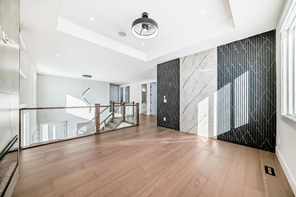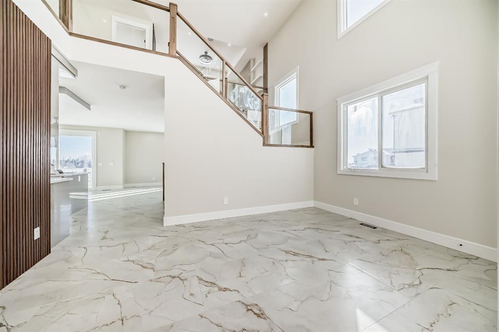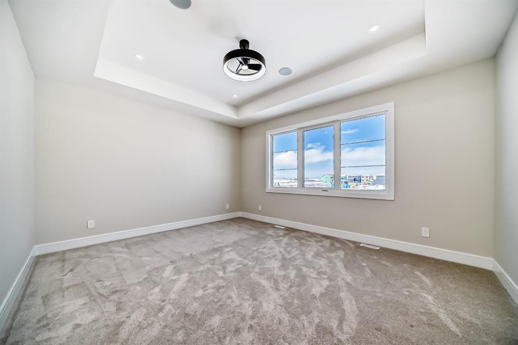 Welcome to 2045 Waterbury Road in the growing community of Waterford Estates, Chestermere. Built by Twenty First Century Homes, this two-storey residence offers 2,579 sq ft of well-designed living space above grade on a 45’ x 113’ lot, plus an undeveloped basement with bathroom rough-in for future development. The main floor features a functional layout with a living room with fireplace, family room, dining area, and a main floor bedroom with access to a full bathroom—ideal for guests or extended family. The kitchen includes a dedicated spice kitchen and convenient access to the mudroom and triple attached garage (approx. 640 sq ft). The upper level offers four bedrooms, including two primary bedrooms with private ensuites. A central loft area, upper-floor laundry, and spacious secondary bedrooms provide practical family living. The exterior elevation incorporates stucco and smart board detailing with stone accents, along with a rear deck for outdoor use. Located close to parks, schools, shopping, and key amenities, this home offers space, flexibility, and quality craftsmanship in a well-connected Chestermere community.
