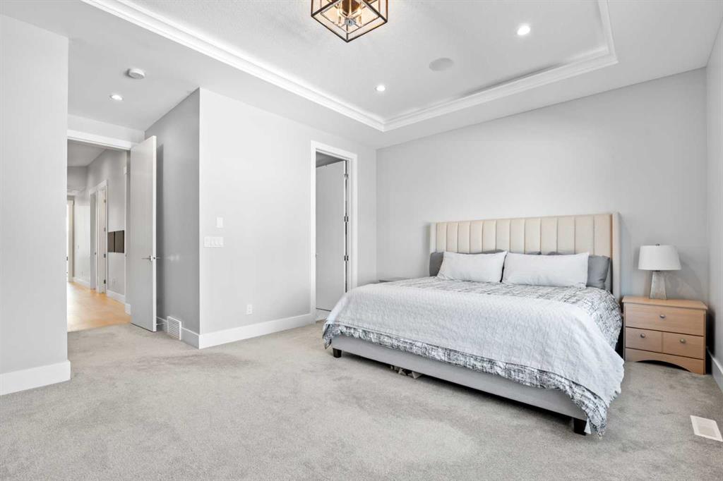 Welcome to 420 14 Avenue NE, an impeccably designed detached infill located on a quiet, tree-lined street in the heart of Renfrew, one of Calgary’s most sought-after inner-city communities. Boasting 3,100 sqft of luxuriously finished living space, this beautifully appointed 4 bedroom, 3.5 bathroom home combines elegant finishes with functional family-friendly design. The main floor features soaring 10’ ceilings, engineered hardwood flooring, custom lighting, and an open-concept layout ideal for entertaining. The chef-inspired kitchen is the centerpiece, complete with quartz countertops, a large island with eating bar, stainless steel appliances, walk-in pantry, and built-in buffet. A spacious living room showcases a floor-to-ceiling tile fireplace flanked by custom built-ins, and a formal dining area and tech center make daily life seamless. As you head upstairs you’ll immediately notice the high vaulted ceilings, 8ft doors, and abundance of natural light. The primary bedroom feels less like a bedroom and more like a retreat. It is a true sanctuary, easily accommodating a king-sized bed and nightstands, plus a separate sitting area, recessed lighted ceiling, large walk-in closet with built-ins, and a spa-style 5-piece ensuite with dual sinks, jetted tub, and oversized 10mm glass shower (roughed-in for steam). Two additional bedrooms, an upper laundry room, plus an additional full bath round out the upper level with thoughtful efficiency. The fully developed basement offers 9’ ceilings, a sprawling media/rec room with custom home theatre set up, wet bar, fourth bedroom, and a stylish 3-piece bathroom. The separate side entrance and wet bar layout create a fantastic opportunity for a future legal suite (subject to City approvals). Additional features include central air conditioning, glass-paneled staircase with wood accents, designer fixtures, built-in storage, and a double detached garage. Outside, the private backyard with deck offers a perfect spot to unwind. Situated just minutes to downtown Calgary and walking distance to Munro Park, Renfrew Athletic Park, top schools and beloved local gems like Boogie’s Burgers and Peter’s Drive-In. This is the perfect blend of upscale inner-city living and family comfort.