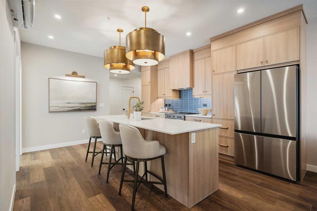 Logel Homes proudly presents the award-winning floor plan, The Atwood 3. Thoughtfully designed with both style and functionality in mind, this professionally curated interior offers premium finishes and modern comfort throughout. Features include air conditioning, 41” upper cabinetry with soft-close doors and drawers, luxury vinyl plank flooring, designer tile accents, stainless steel appliances, and contemporary pot lighting. An expansive 8-foot-wide patio door enhances natural light and indoor-outdoor flow, while a dedicated storage locker and titled parking stall provide everyday convenience. Homeowners will also appreciate Logel Homes’ award-winning Energy Recovery Ventilation (ERV) system and industry-leading sound attenuation technology, delivering exceptional indoor air quality, energy efficiency, and a quieter living environment. For a limited time, buyers can take advantage of an exclusive Pre-Construction Bonus offering $10,000 in complimentary upgrades plus one full year of prepaid condo fees — an exceptional opportunity to enhance both value and lifestyle. Located in the vibrant community of Livingston, residents enjoy access to the Livingston HOA amenities, including The Hub — a dynamic recreational facility featuring a water spray park, playground, tennis courts, skating rinks with change area, amphitheatre, banquet facility, community kitchen, indoor gymnasium, daycare space, meeting rooms, and versatile multi-use spaces. For added peace of mind, this home is backed by the comprehensive Alberta New Home Warranty program. Experience award-winning design, innovative construction, and an exceptional lifestyle with Logel Homes.