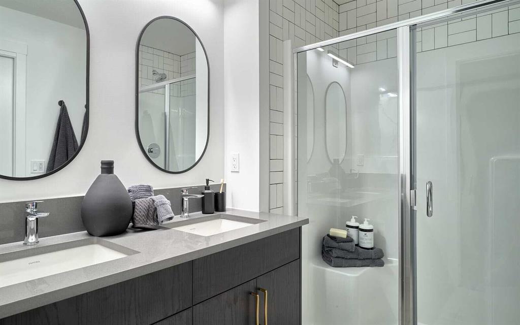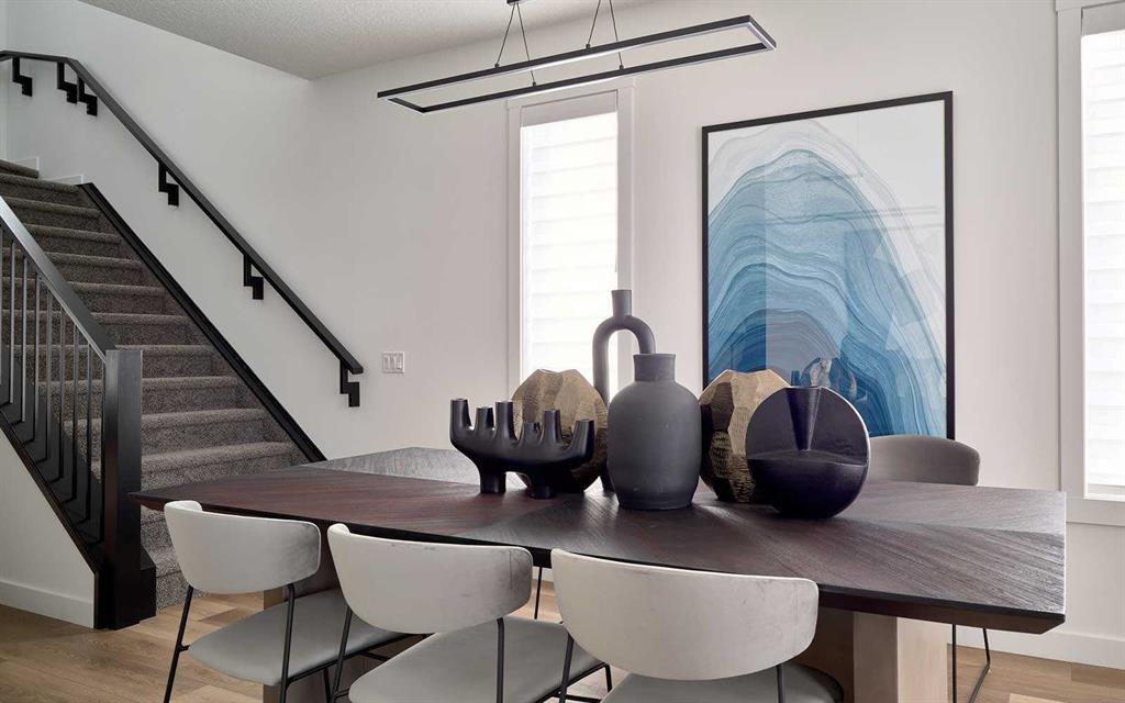 Welcome to the ‘Oak’ by Brookfield Residential, a beautifully crafted semi-detached home located in the desirable community of Chinook Gate in Airdrie. Thoughtfully designed to deliver exceptional functionality and modern style, this home is complete with a double detached garage and nearly 1,700 sq. ft. of above-grade living space. Featuring two spacious living areas, three bedrooms, and 2.5 bathrooms above grade, this home offers a smart and versatile layout ideal for today’s lifestyle. Nine-foot ceilings enhance the sense of openness throughout the main floor, while the central kitchen serves as the true heart of the home. The kitchen is both stylish and functional, showcasing a large island, spacious pantry, and a full suite of stainless-steel appliances, perfect for cooking, entertaining, and everyday living. The bright dining area overlooks the front yard through large windows that bring in abundant natural light year-round. At the rear of the home, the great room features a wall of southwest-facing windows overlooking the private backyard, creating a warm and inviting space to relax. A convenient 2-piece powder room completes the main level. Upstairs, a central bonus room provides separation and privacy between the primary retreat and the secondary bedrooms. The spacious primary suite includes a walk-in closet and a beautifully finished 4-piece ensuite with dual sinks and a walk-in shower. Two additional bedrooms, a full bathroom, and an upper-level laundry room complete this family-friendly second floor. The basement offers excellent future development potential, with ample space for a fourth bedroom, a full bathroom, and recreation room. It also features a private entrance, ideal for those considering a future basement suite (subject to permits and approvals). Outside, the sunny backyard provides the perfect setting for relaxing or entertaining during the warmer months. A rear double detached garage offers secure parking and additional storage year-round. Located in the heart of Chinook Gate, residents enjoy access to parks, playgrounds, green spaces, and convenient connections to major roadways — everything you need just minutes from your doorstep. Built with quality craftsmanship and backed by both a full builder warranty and the Alberta New Home Warranty program, this home offers style, comfort, and peace of mind in one exceptional package.
