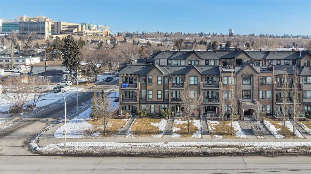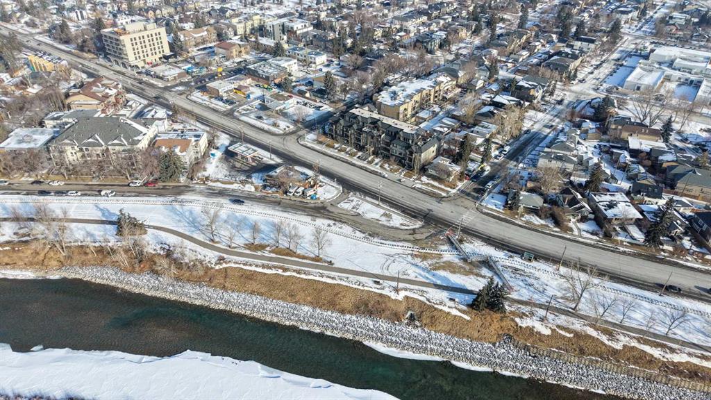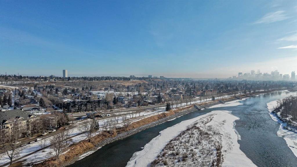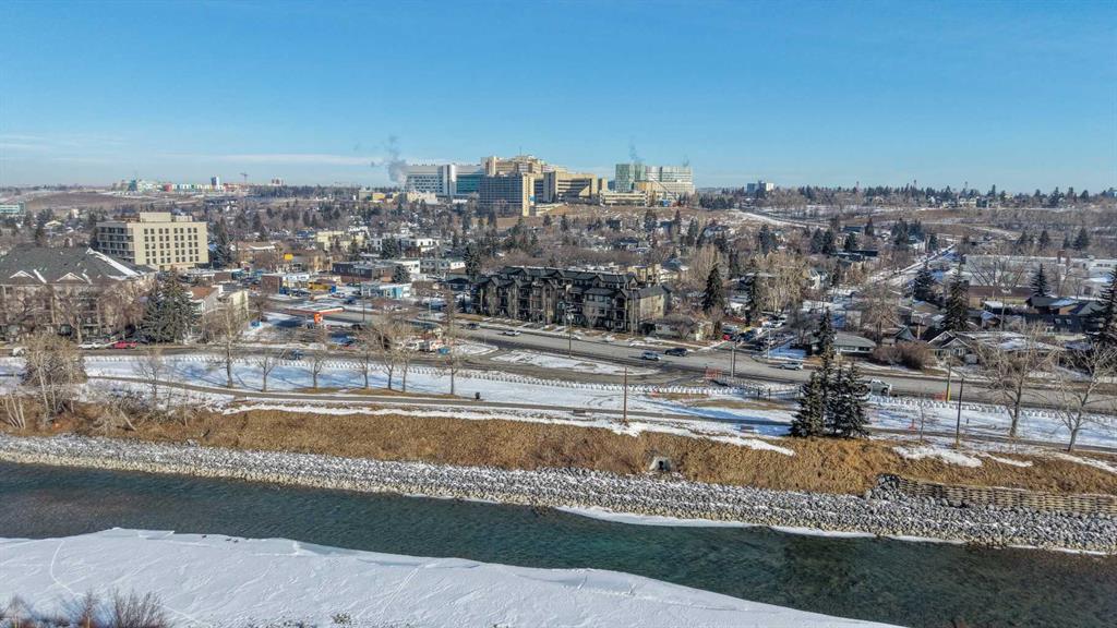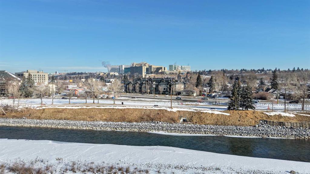 Welcome to The Riviera in Parkdale, offering refined inner-city living in one of Calgary’s most desirable riverfront communities. Ideally located directly across from the Bow River and its extensive pathway system, this location provides easy access to Kensington, Downtown, Foothills Hospital, and Alberta Children’s Hospital. This south-facing main floor 1 bedroom + den unit offers over 665 sq ft of thoughtfully designed living space with 9’ ceilings and large windows that fill the home with natural light. The modern kitchen features quartz countertops, quality appliances, a pull-out pantry, and a large island, opening seamlessly to the bright living area. Additional features include laminate flooring, in-suite laundry, central A/C, in-floor heating, central water softener, and extensive soundproofing. Enjoy the spacious south-facing patio with pleasant river valley views. The primary bedroom is bright and comfortable with convenient access to the 4-piece bath complete with a soaker tub. The Georgian-inspired Riviera building showcases a stunning lobby with 20’ coffered ceilings and elegant chandeliers, and the unit includes titled underground parking and an assigned storage locker. An excellent opportunity for professionals and investors seeking a premium location close to hospitals, downtown, shops, restaurants, and Calgary’s beautiful river pathways. Contact your favourite realtor today to book a showing!