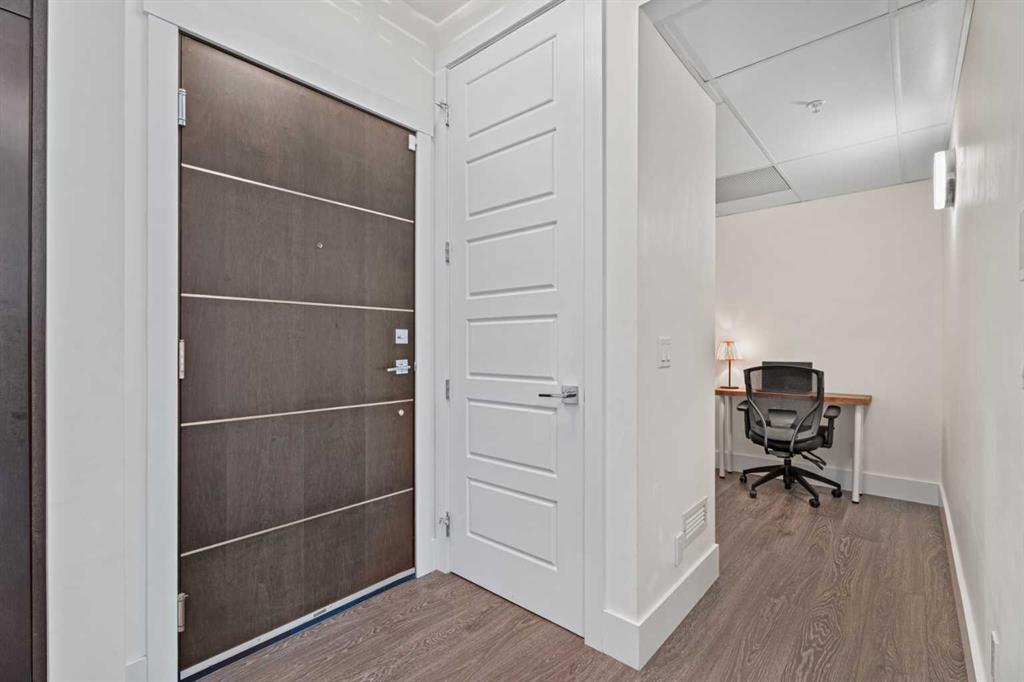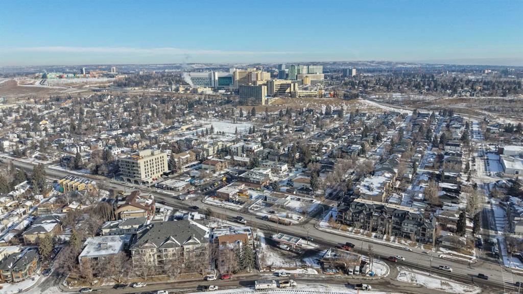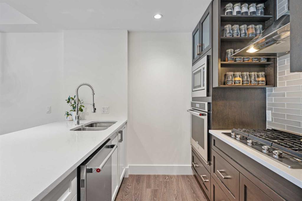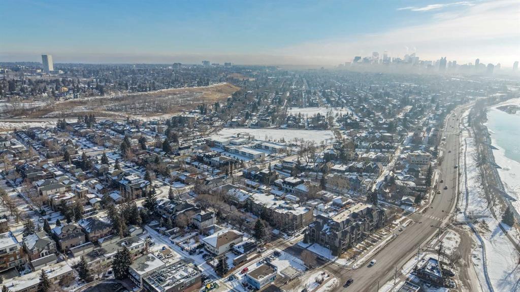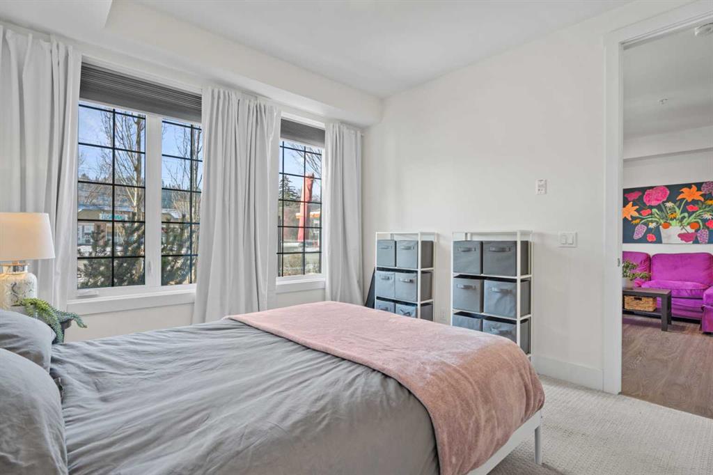Welcome to The Riviera in Parkdale, offering refined inner-city living in one of Calgary’s most desirable riverfront communities. Ideally located directly across from the Bow River and its extensive pathway system, this location provides easy access to Kensington, Downtown, Foothills Hospital, and Alberta Children’s Hospital. This south-facing main floor 1 bedroom + den unit offers over 665 sq ft of thoughtfully designed living space with 9’ ceilings and large windows that fill the home with natural light. The modern kitchen features quartz countertops, quality appliances, a pull-out pantry, and a large island, opening seamlessly to the bright living area. Additional features include laminate flooring, in-suite laundry, central A/C, in-floor heating, central water softener, and extensive soundproofing. Enjoy the spacious south-facing patio with pleasant river valley views. The primary bedroom is bright and comfortable with convenient access to the 4-piece bath complete with a soaker tub. The Georgian-inspired Riviera building showcases a stunning lobby with 20’ coffered ceilings and elegant chandeliers, and the unit includes titled underground parking and an assigned storage locker. An excellent opportunity for professionals and investors seeking a premium location close to hospitals, downtown, shops, restaurants, and Calgary’s beautiful river pathways. Contact your favourite realtor today to book a showing!